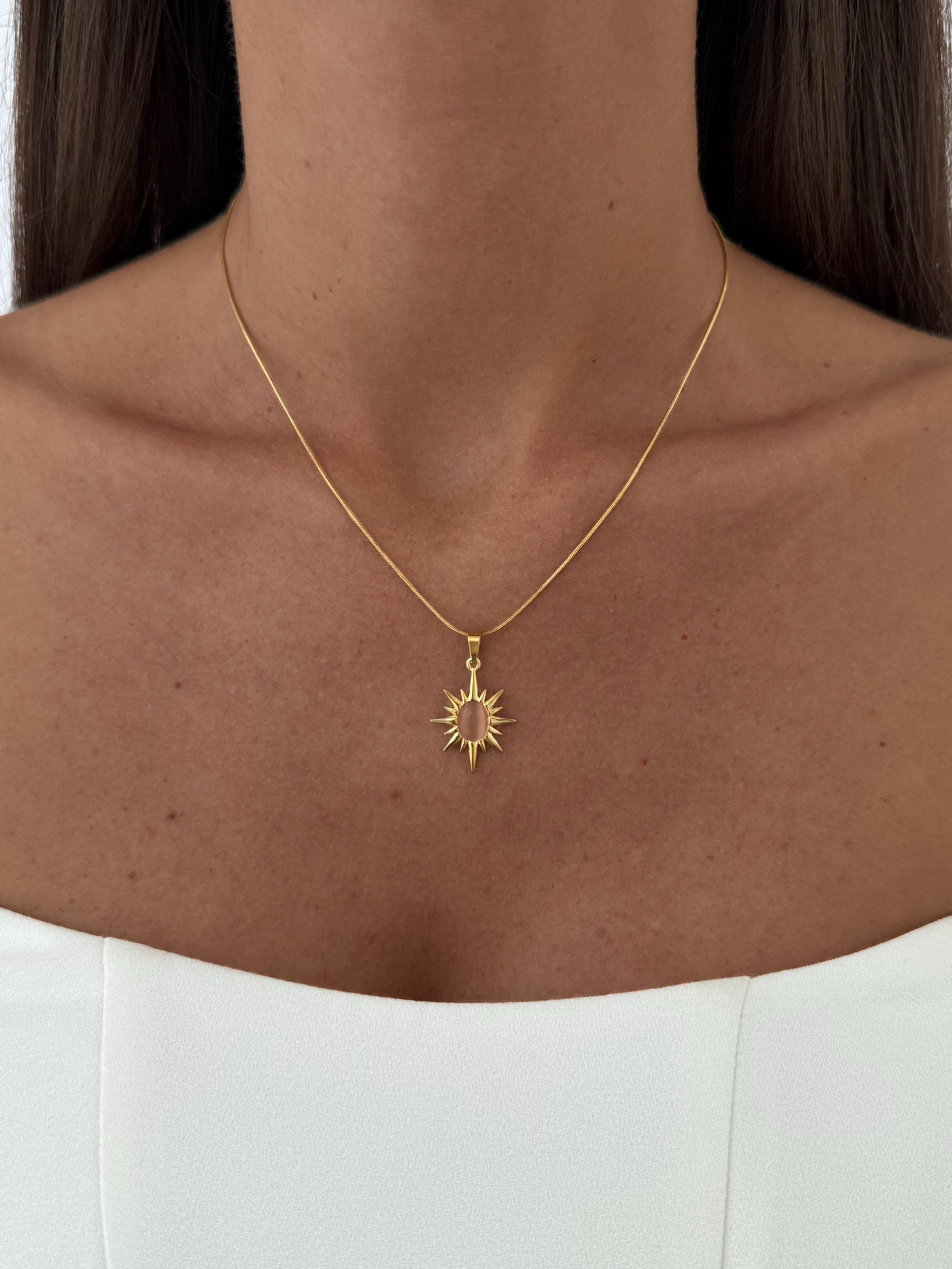 “Çelik Pembe Kaplan Gözü Güneş Tasarım Gold Kolye” için yorum yapan ilk kişi siz olun