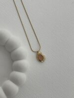 Çelik Pembe Kaplan Gözü Soyut Tasarım Gold Kolye