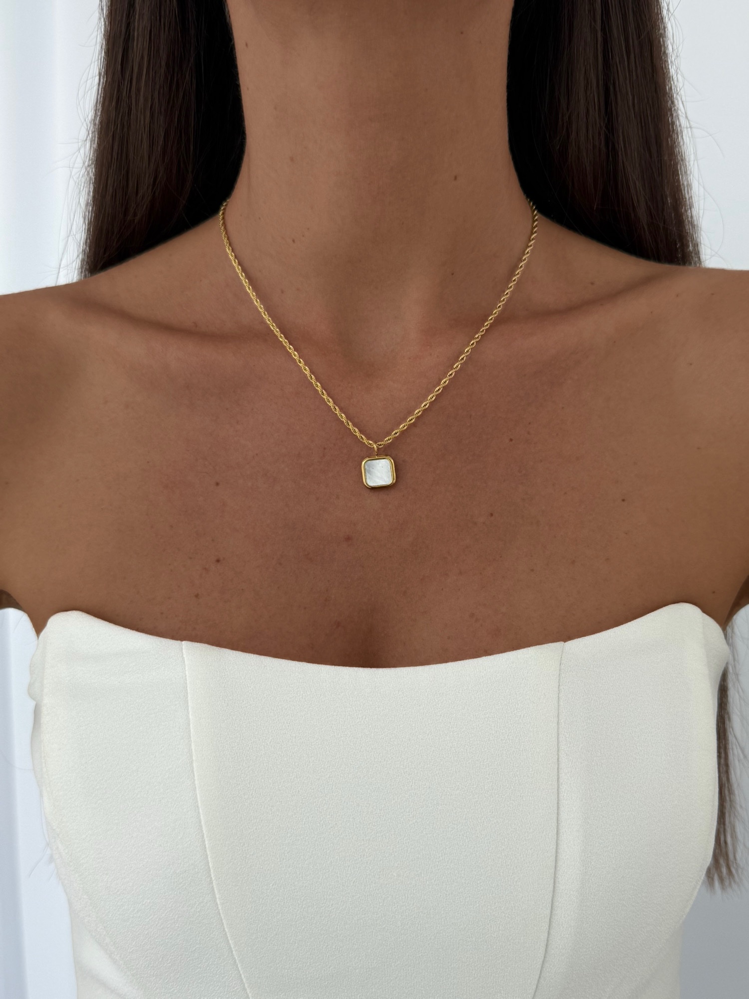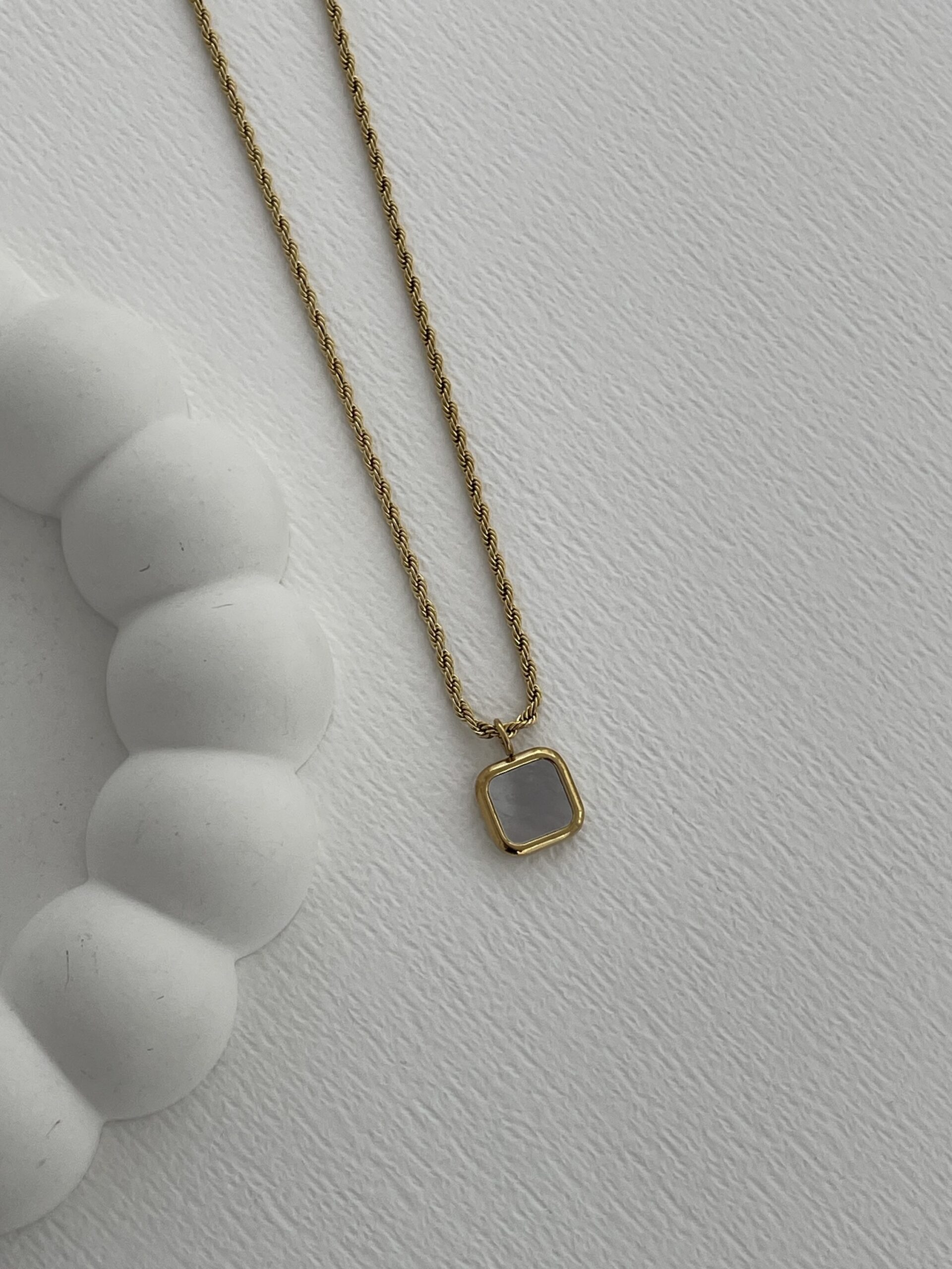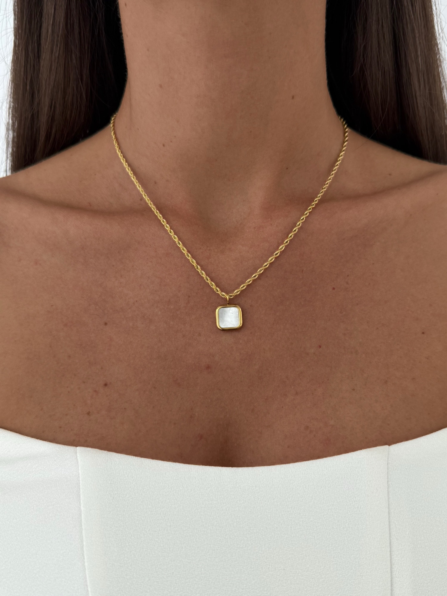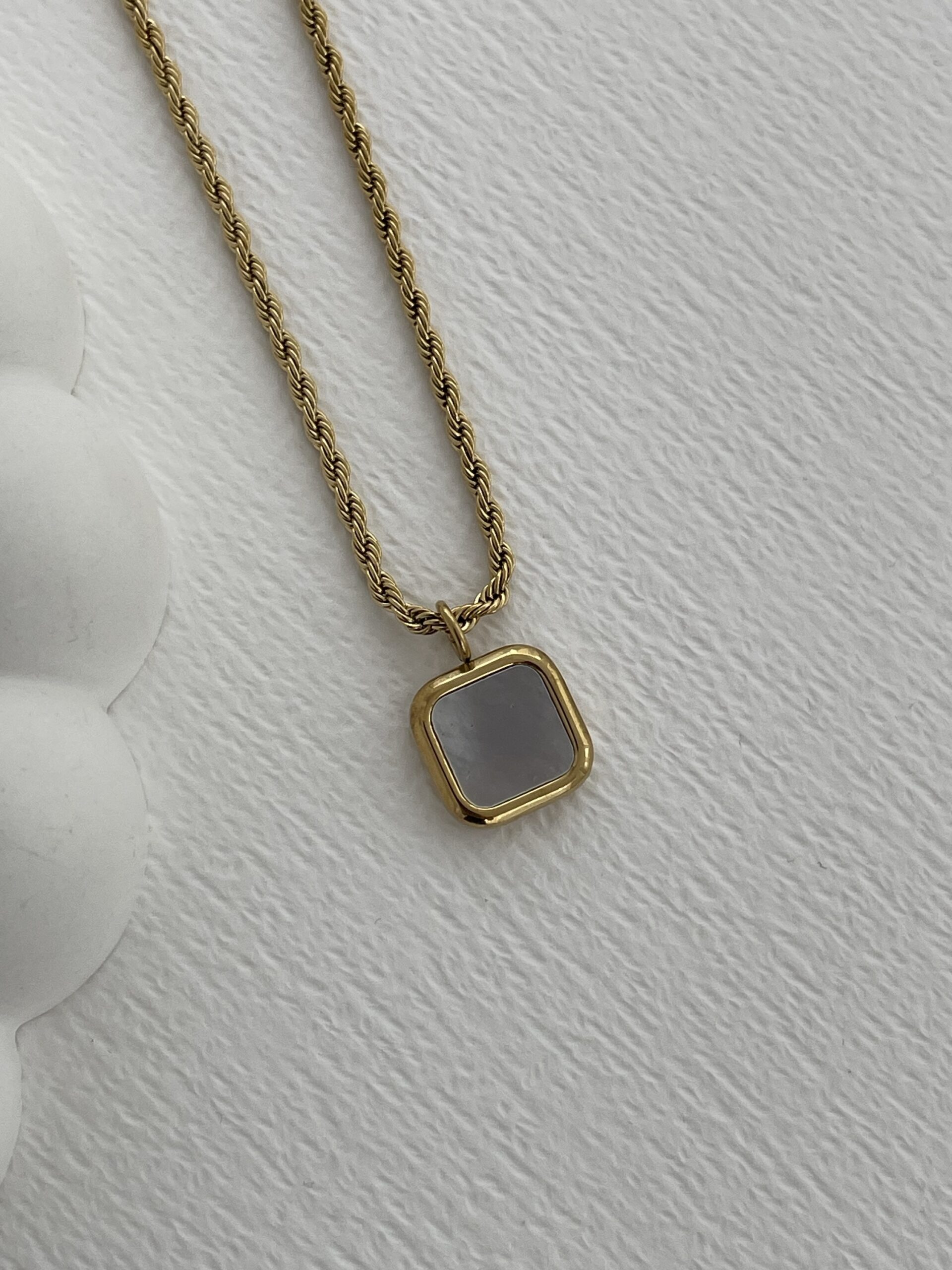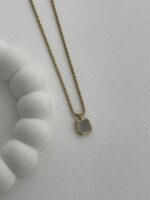 Çelik Sedef Detay Kare Burgu Zincir Gold Kolye