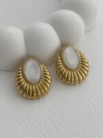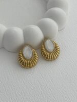Çelik Sedef Detay Tırtık Oval Tasarım Gold Küpe