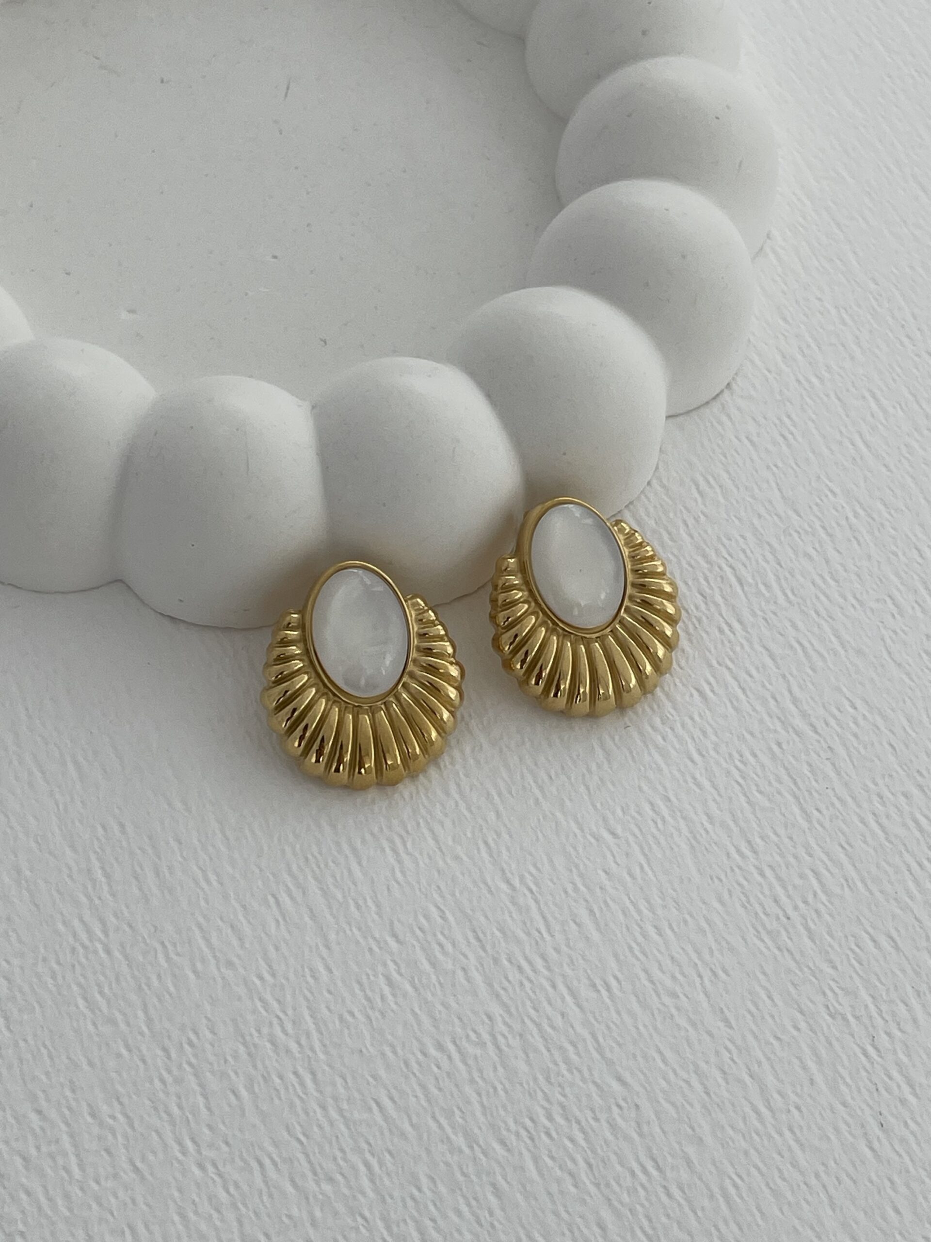 Çelik Sedef Detay Tırtık Oval Tasarım Gold Küpe