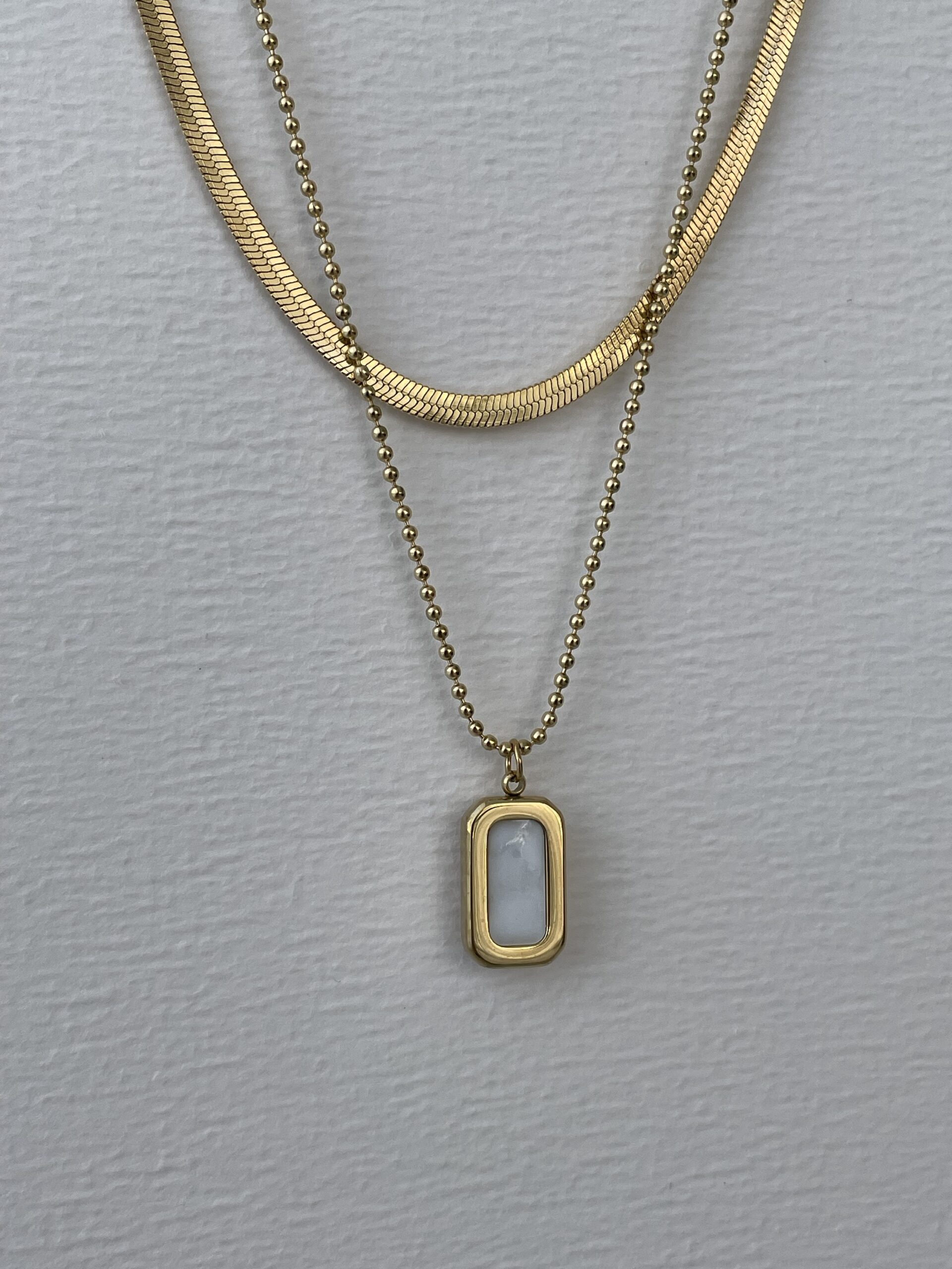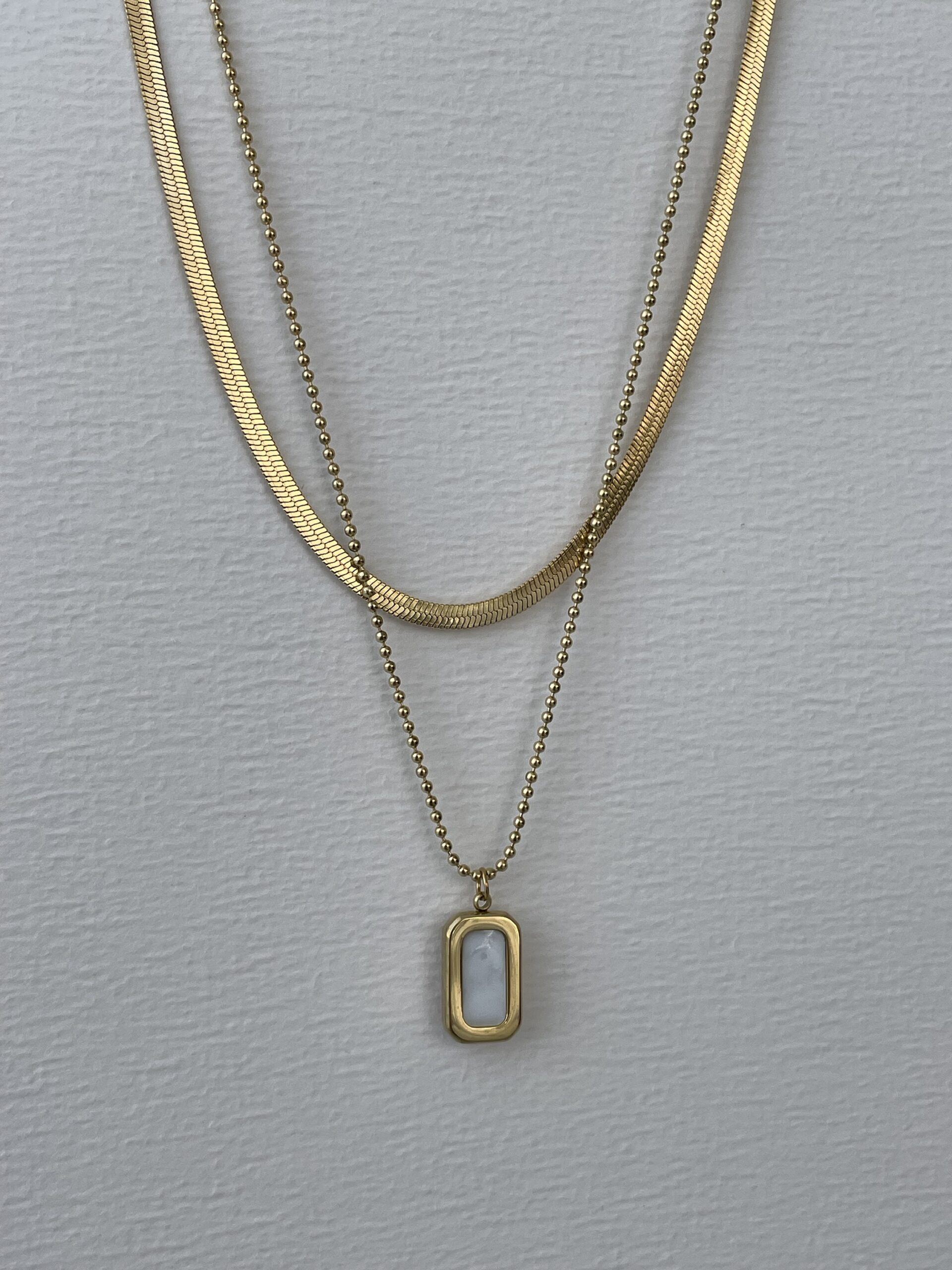 Çelik Sedef Detaylı Arkası Yazılı İkili Gold İtalyan Kolye