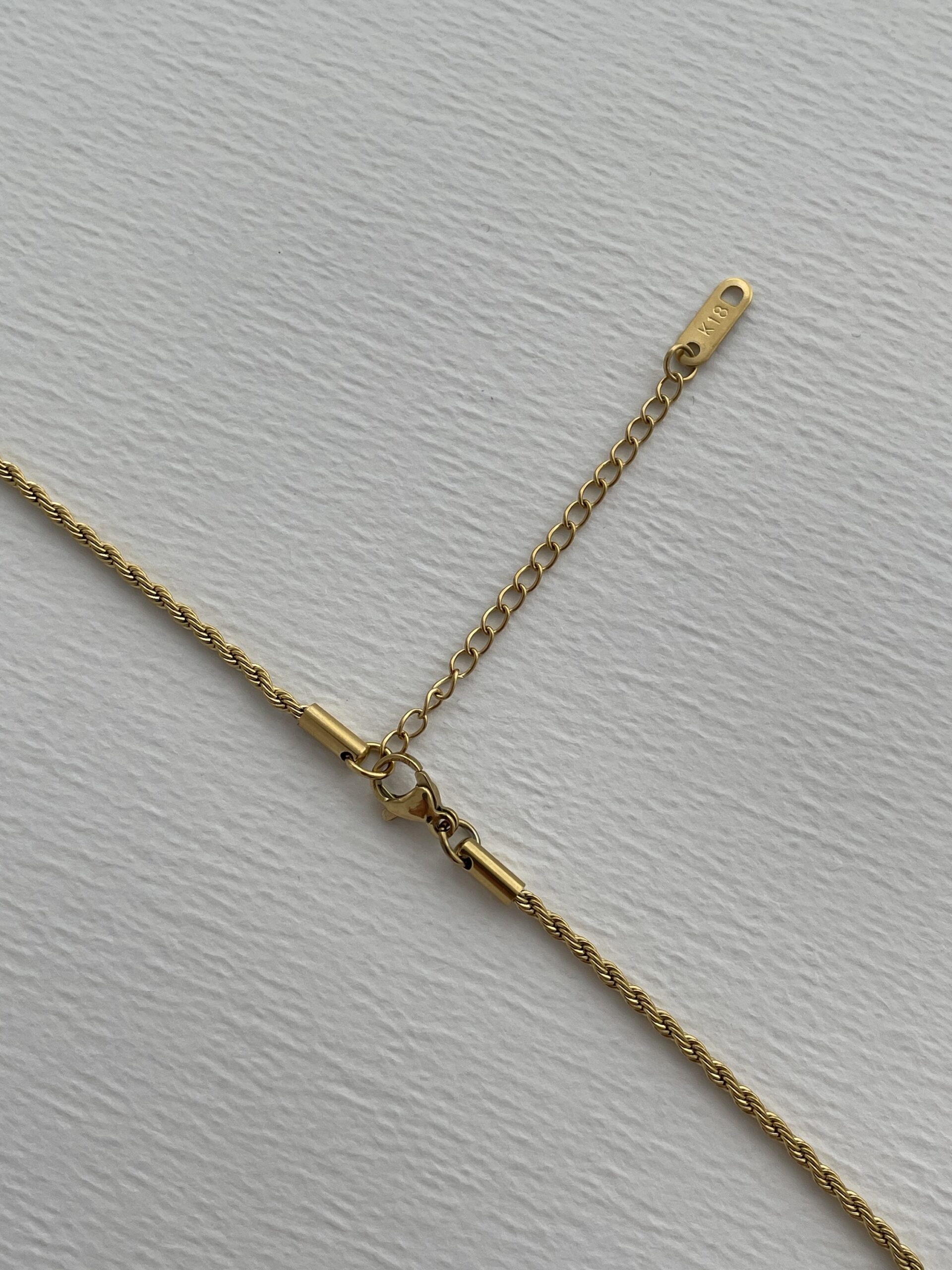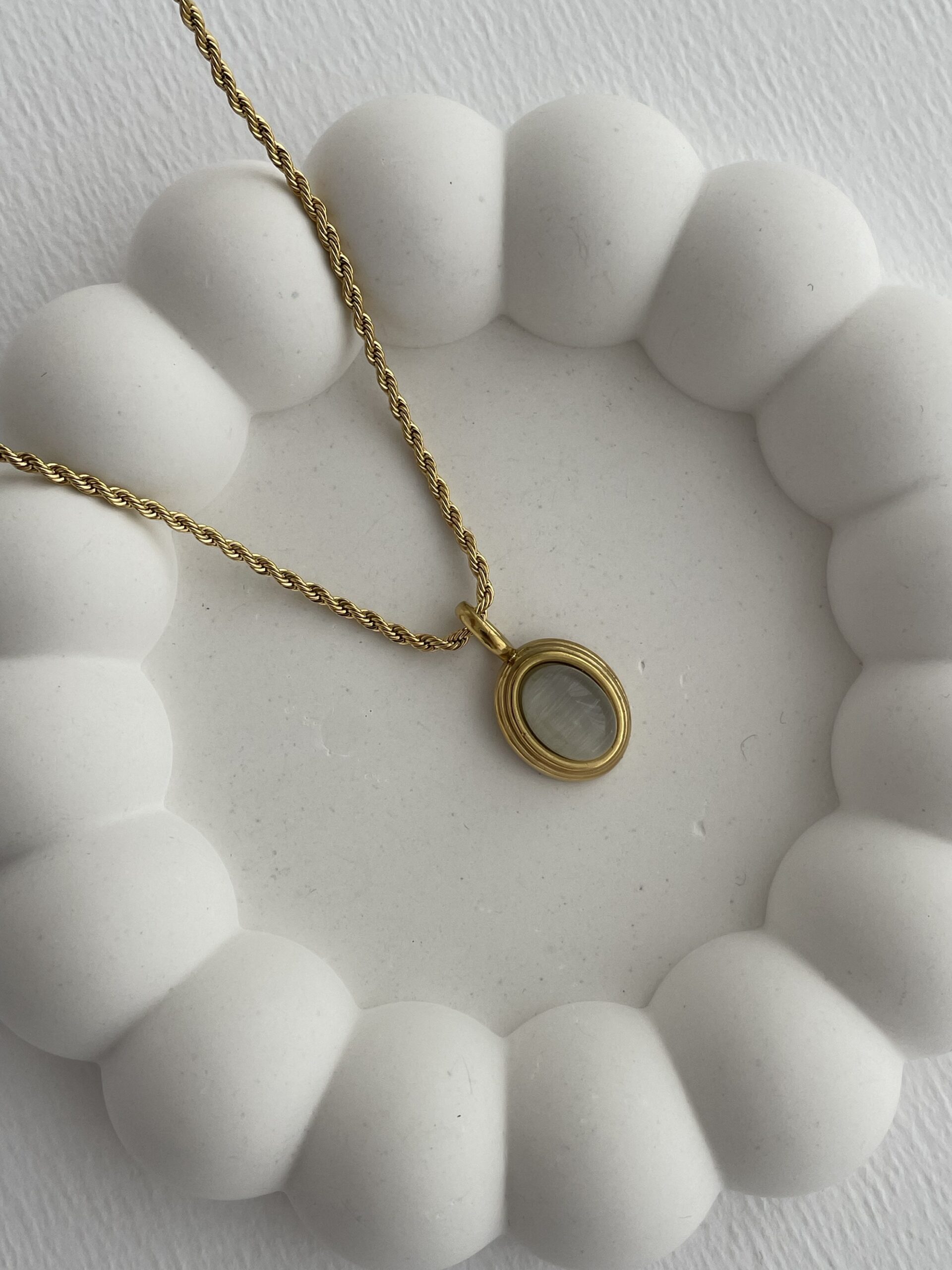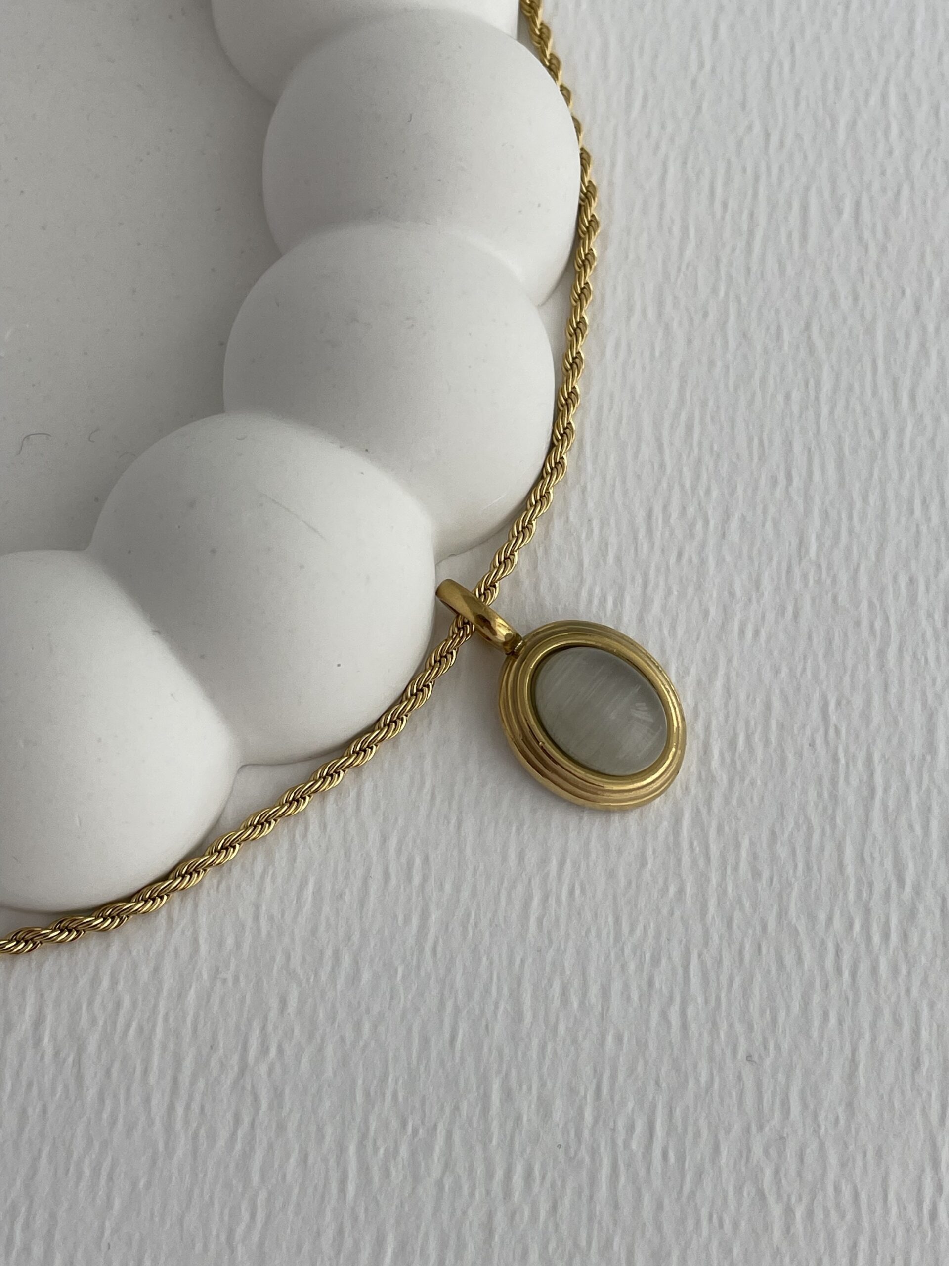 Çelik Sedefli Oval Desen Burgu Zincir Gold Kolye