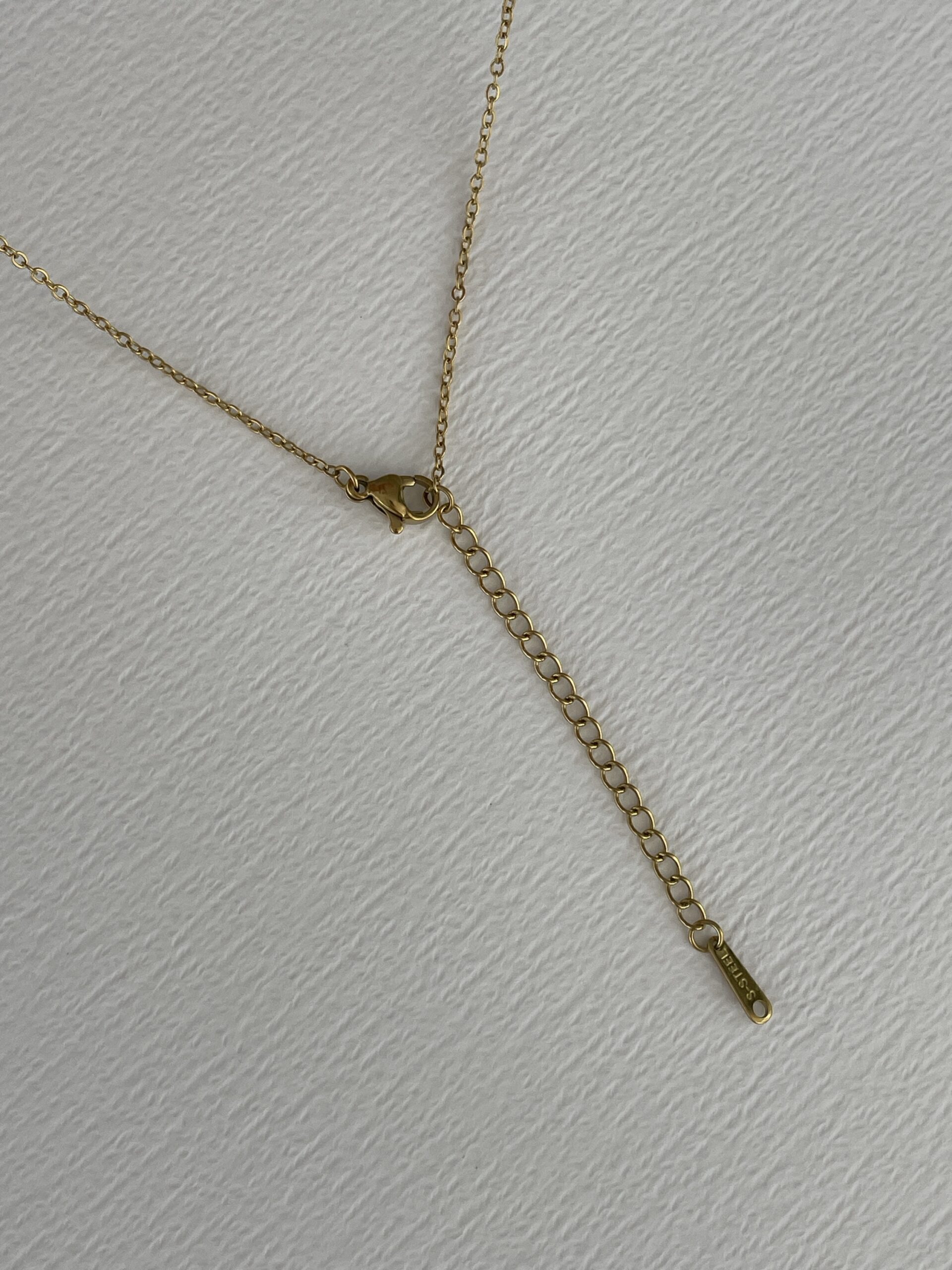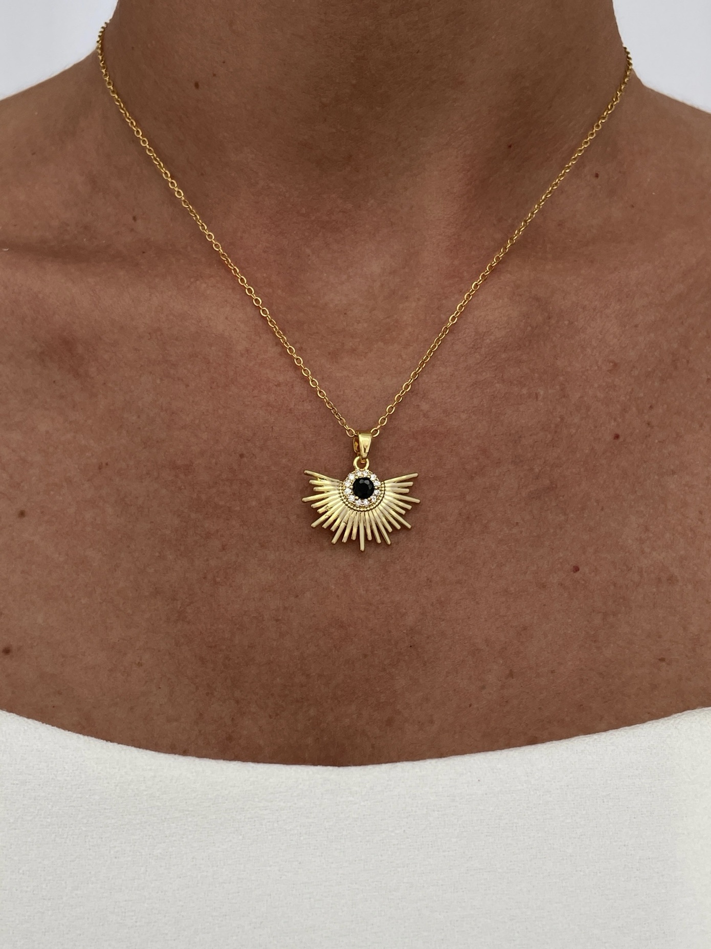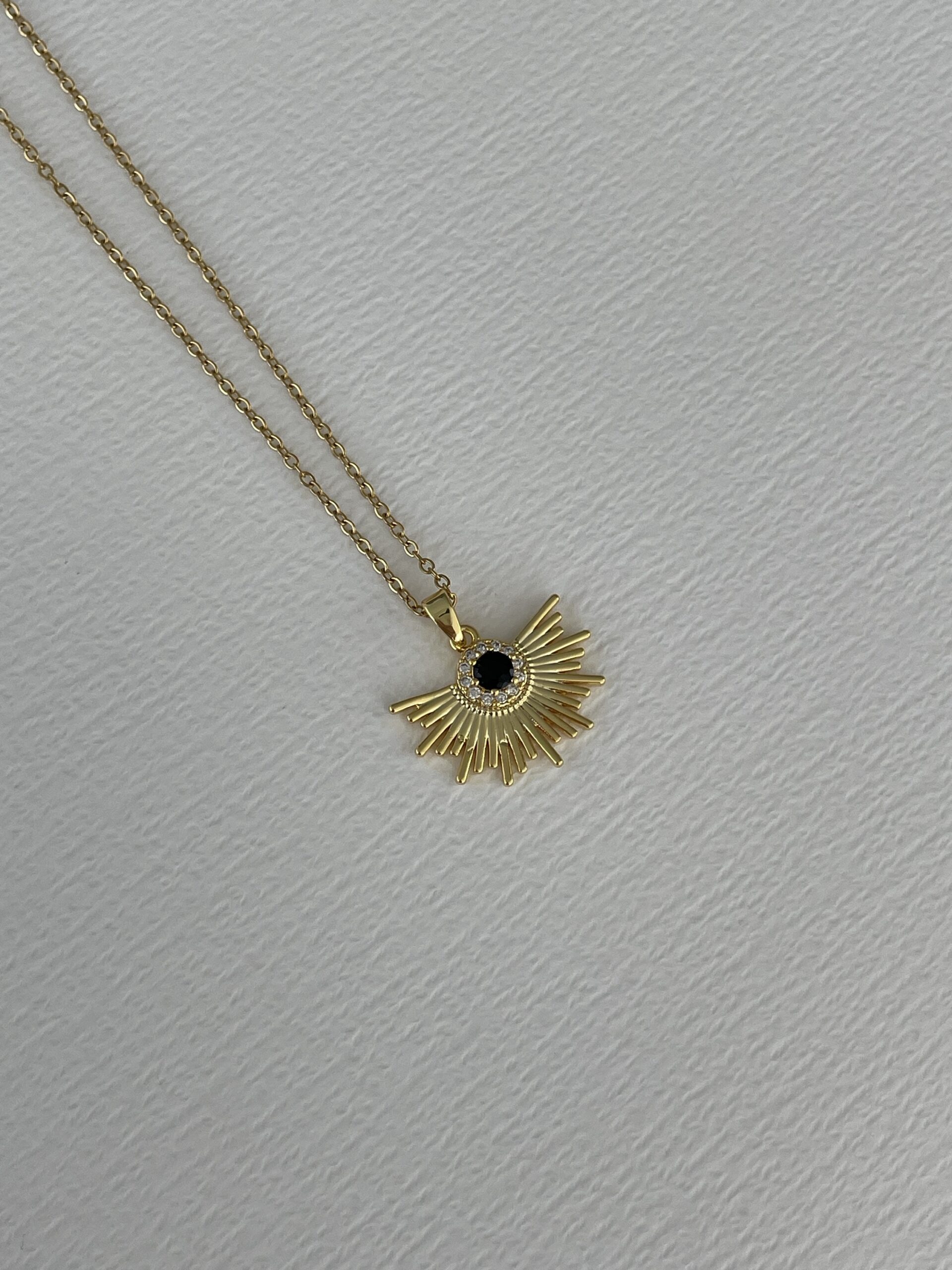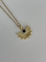 Çelik Siyah Mineli Yelpaze Tasarım Gold Kolye 45+5cm