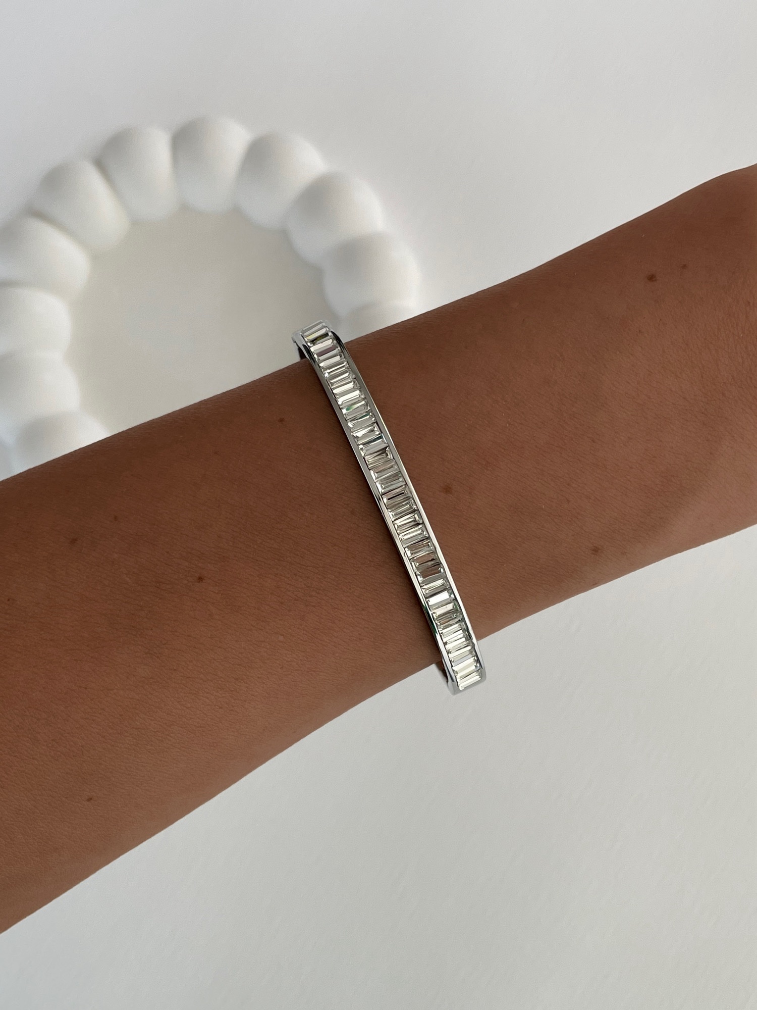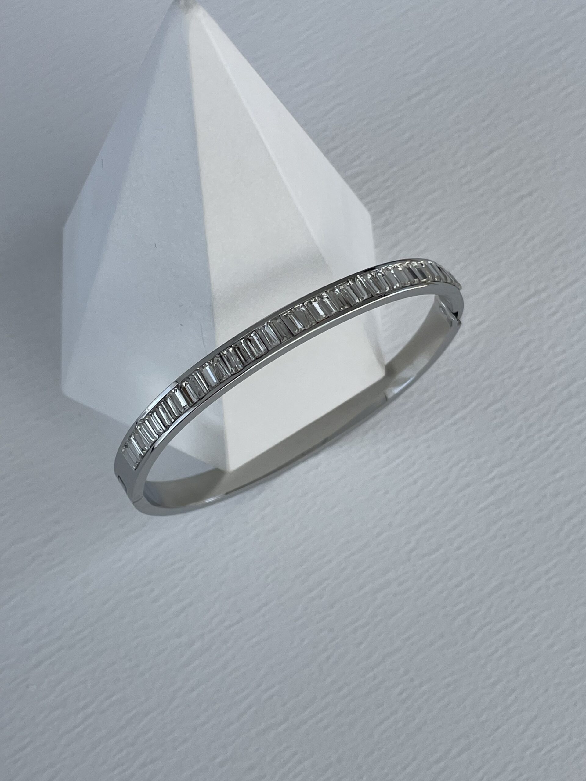 Çelik Tek Sıra Baget Taşlı Gümüş Kelepçe Bileklik