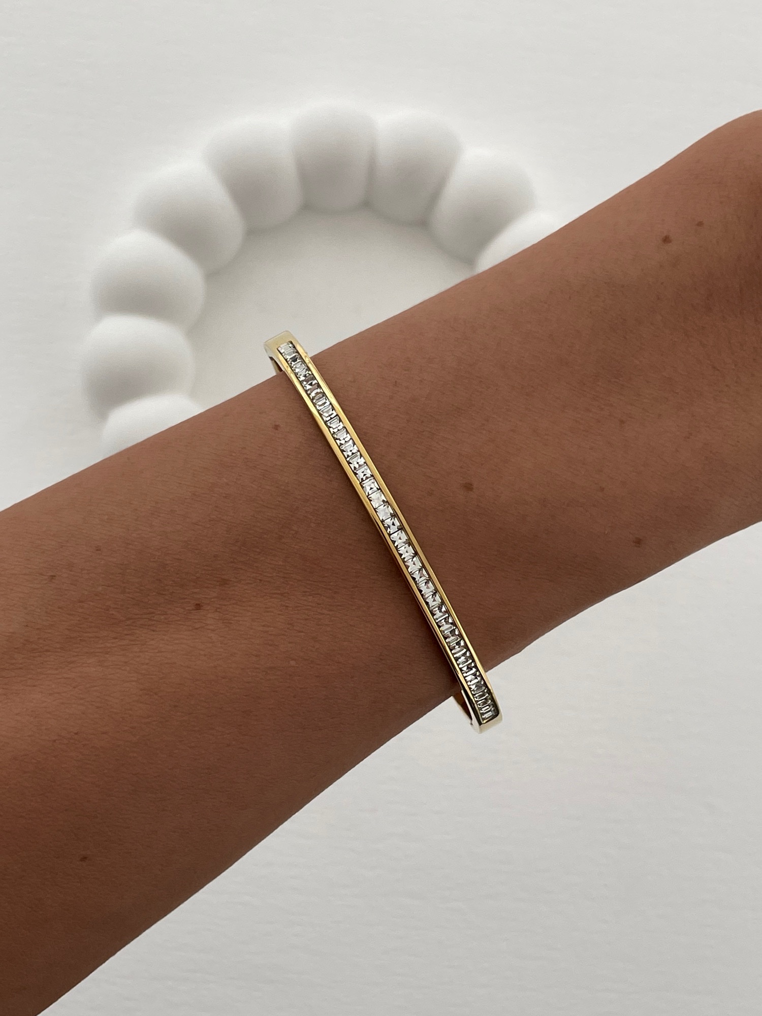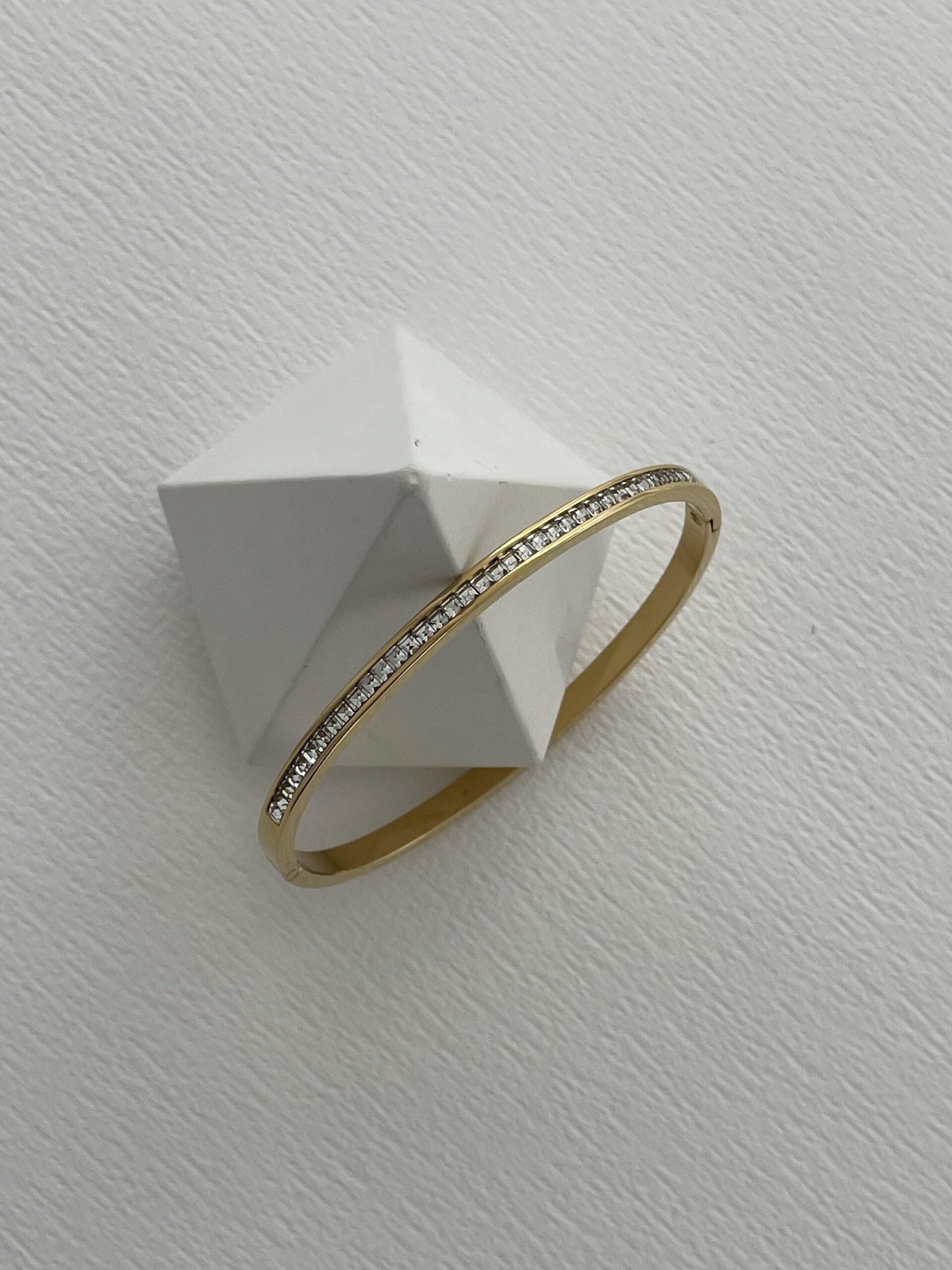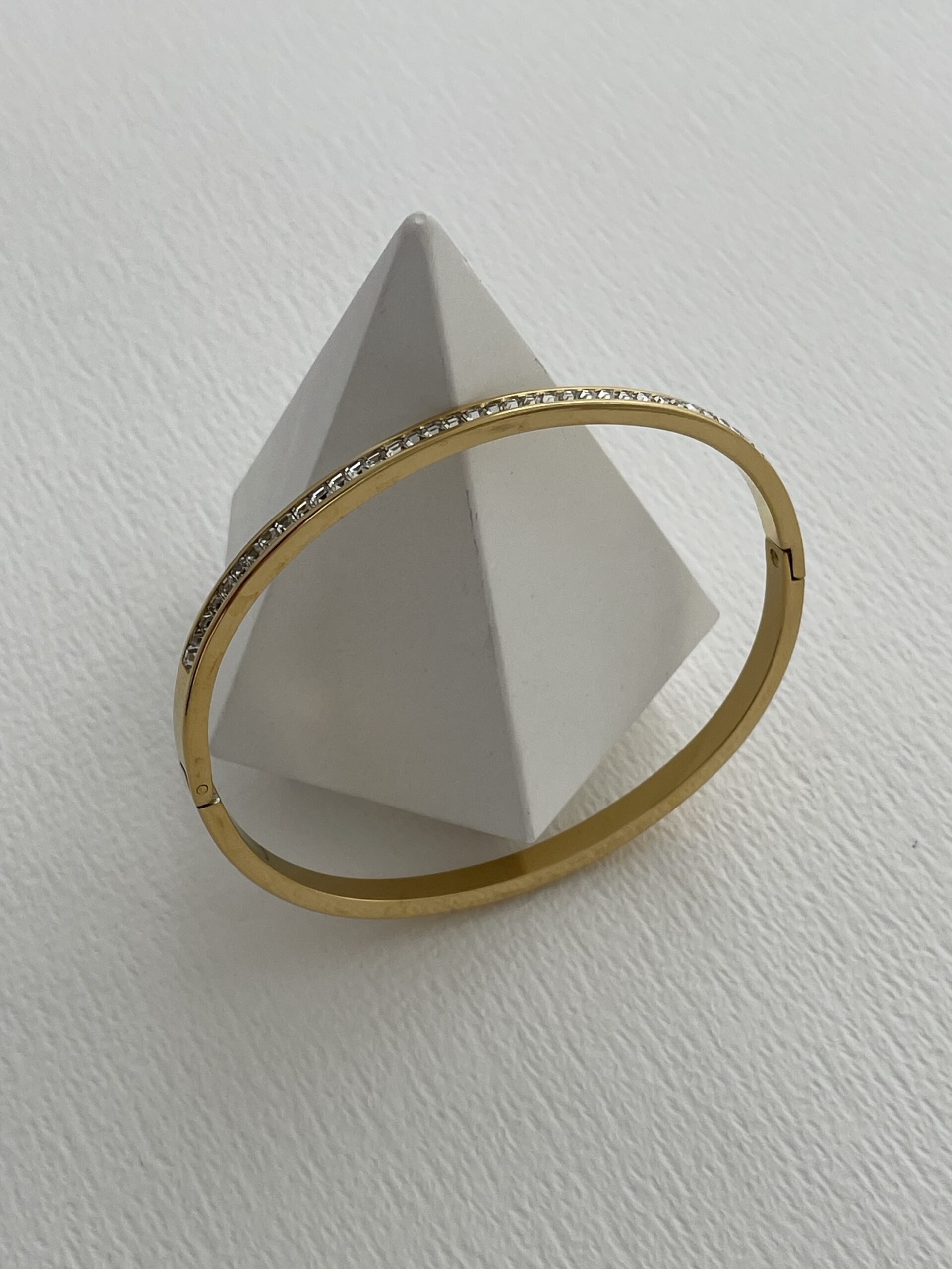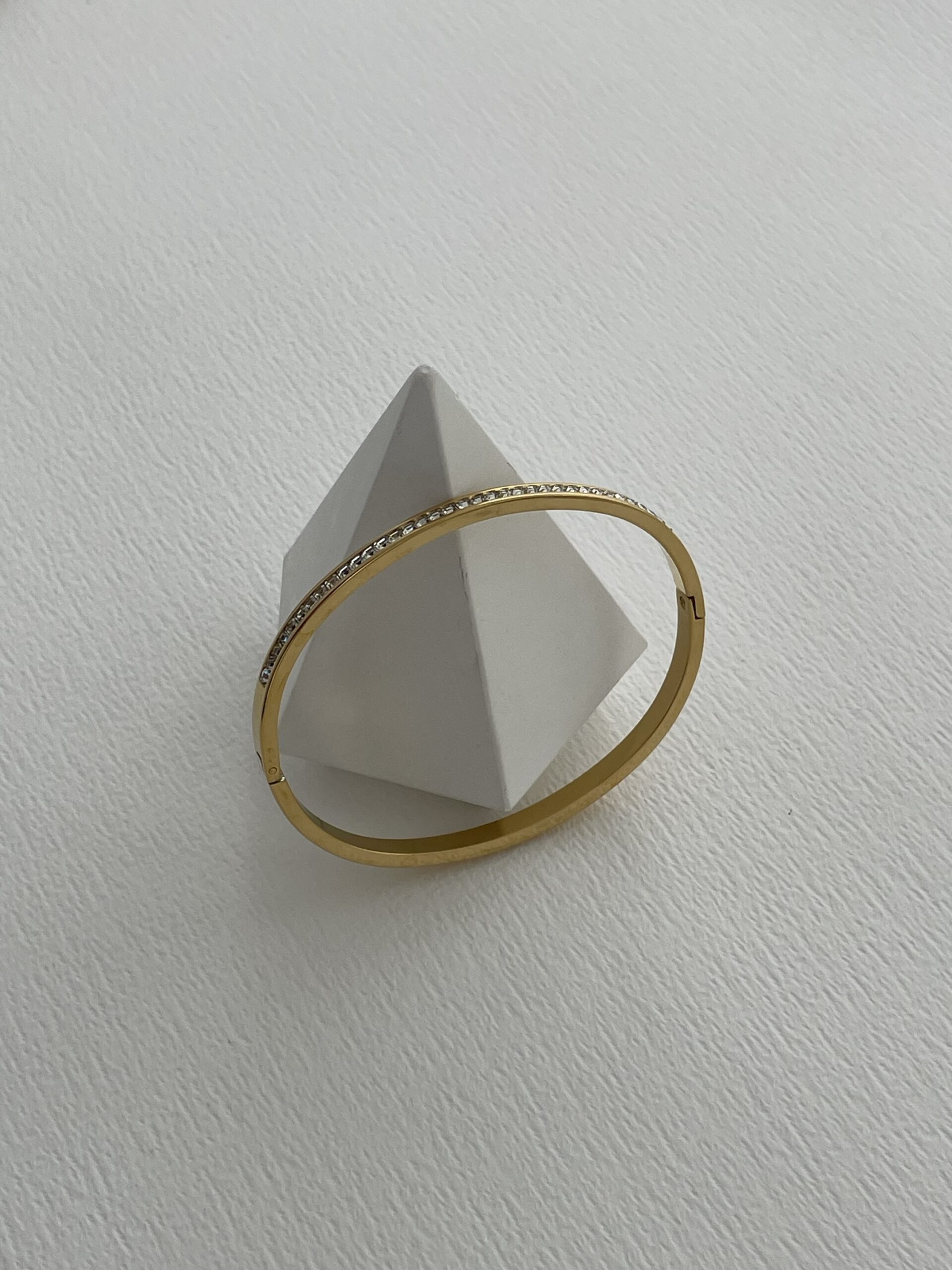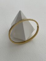Çelik Tek Sıra Zirkon Taşlı Gold Kelepçe Bileklik