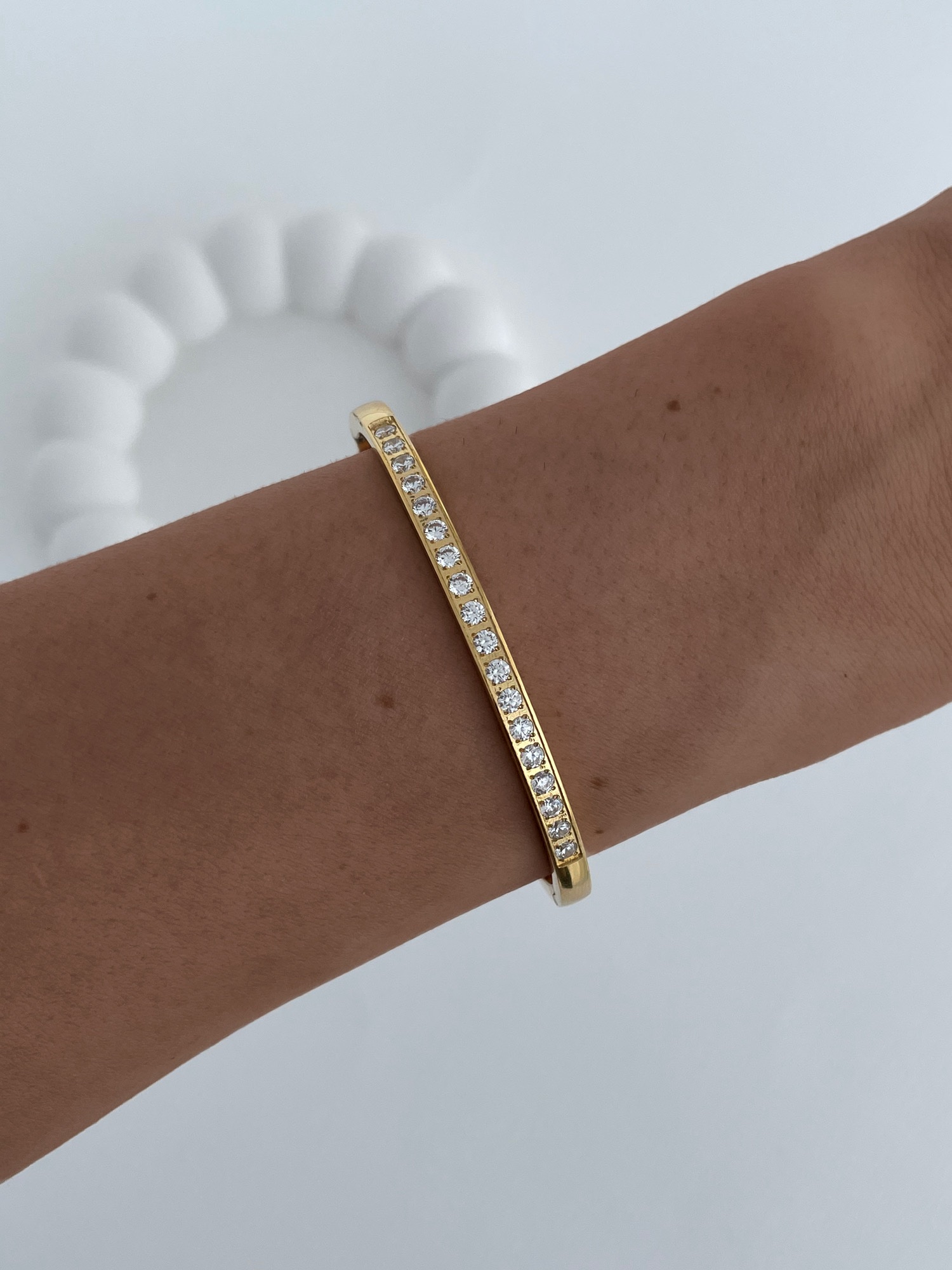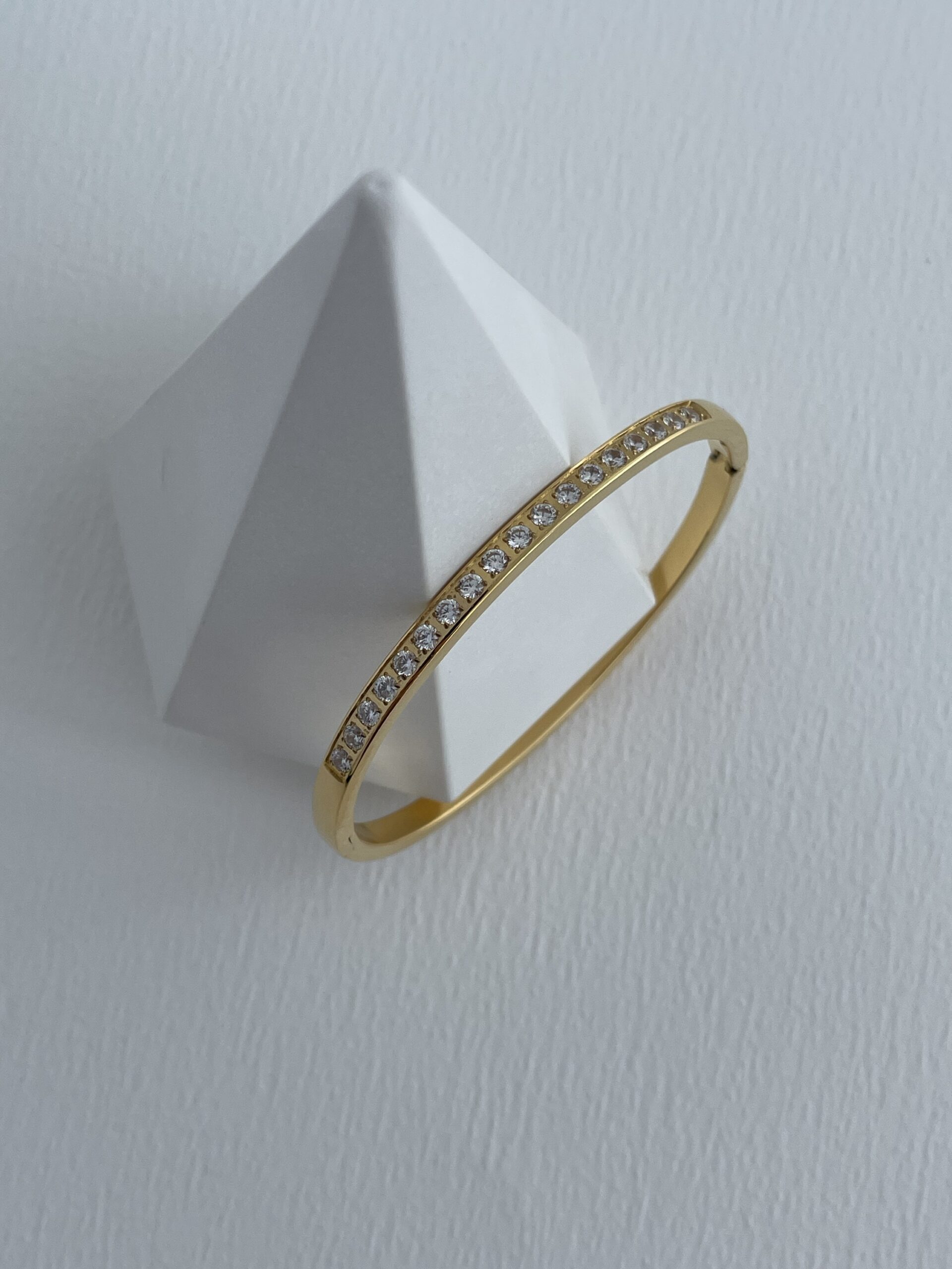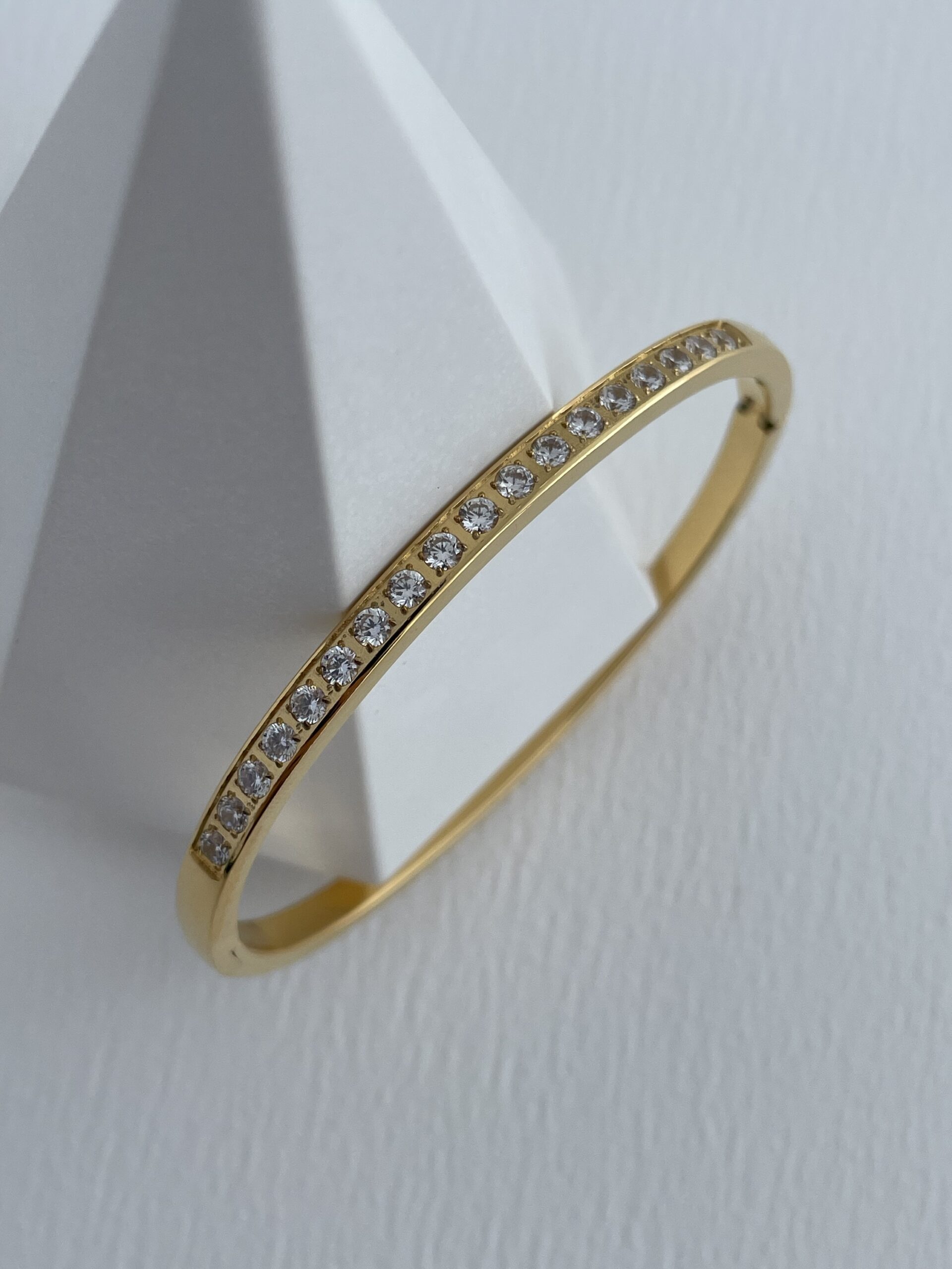 Çelik Tek Sıra Zirkon Taşlı Gold Kelepçe Bileklik