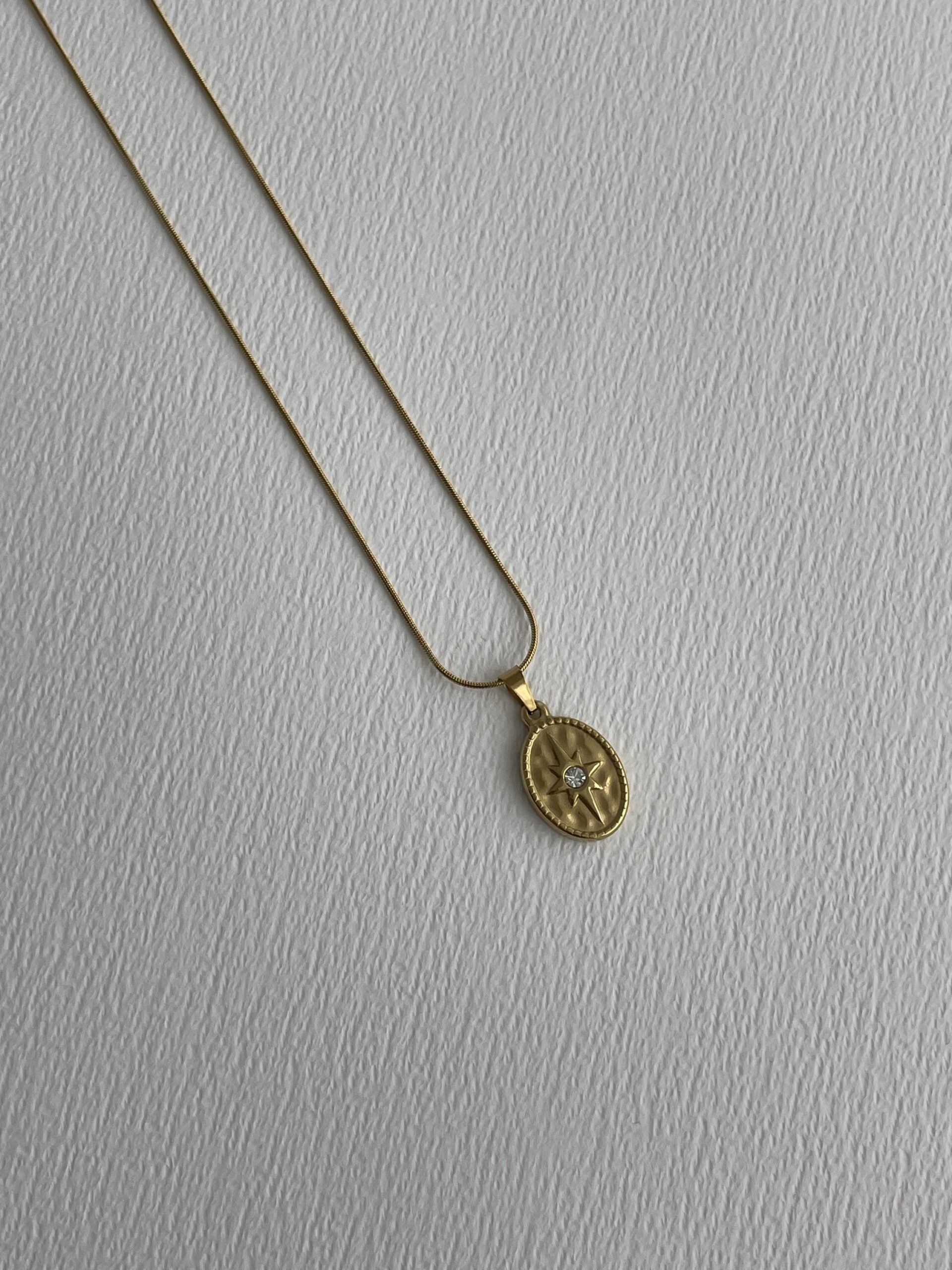 Çelik Tek Taş Yıldız Tasarım Gold Kolye 45+5cm
