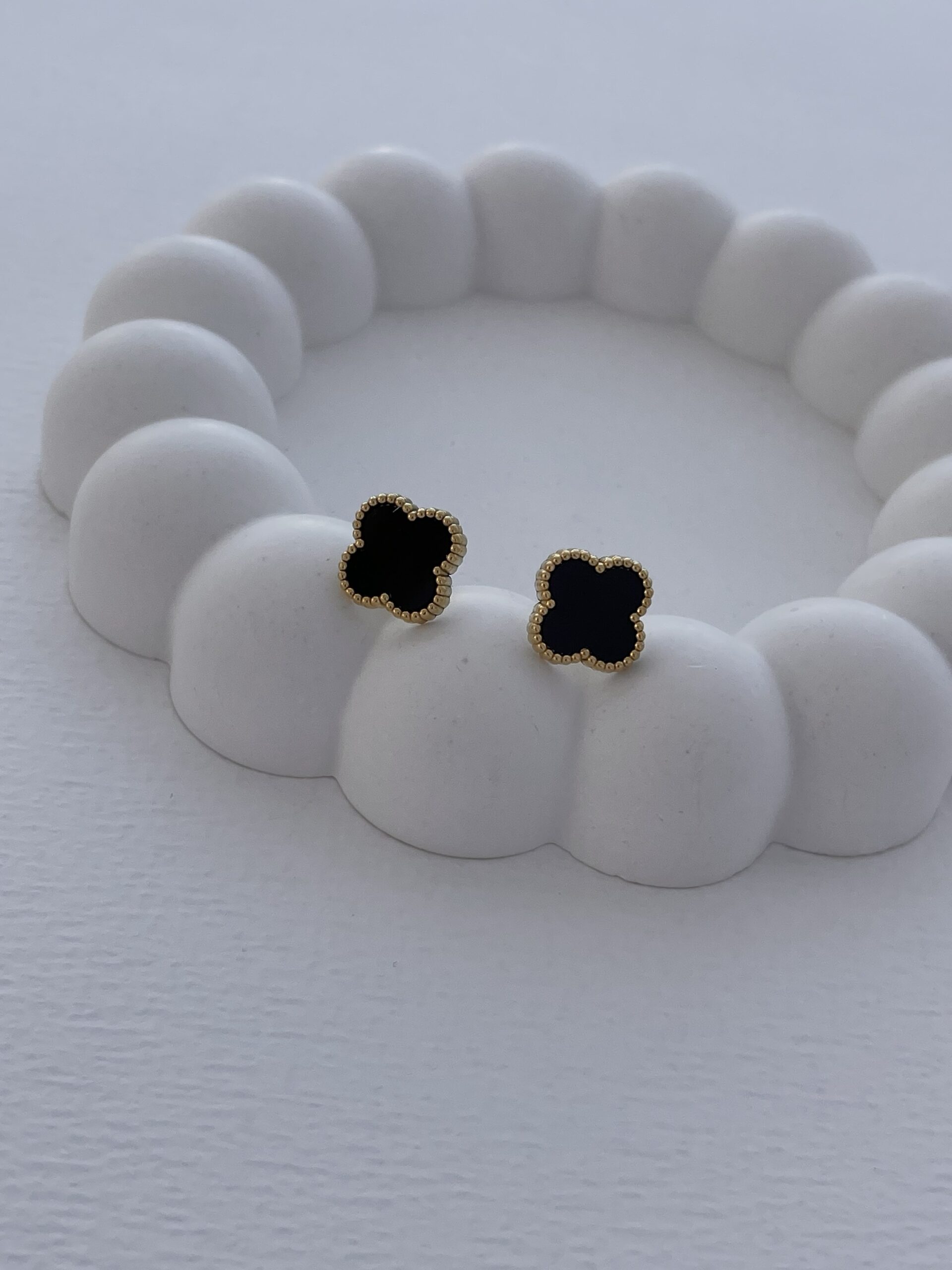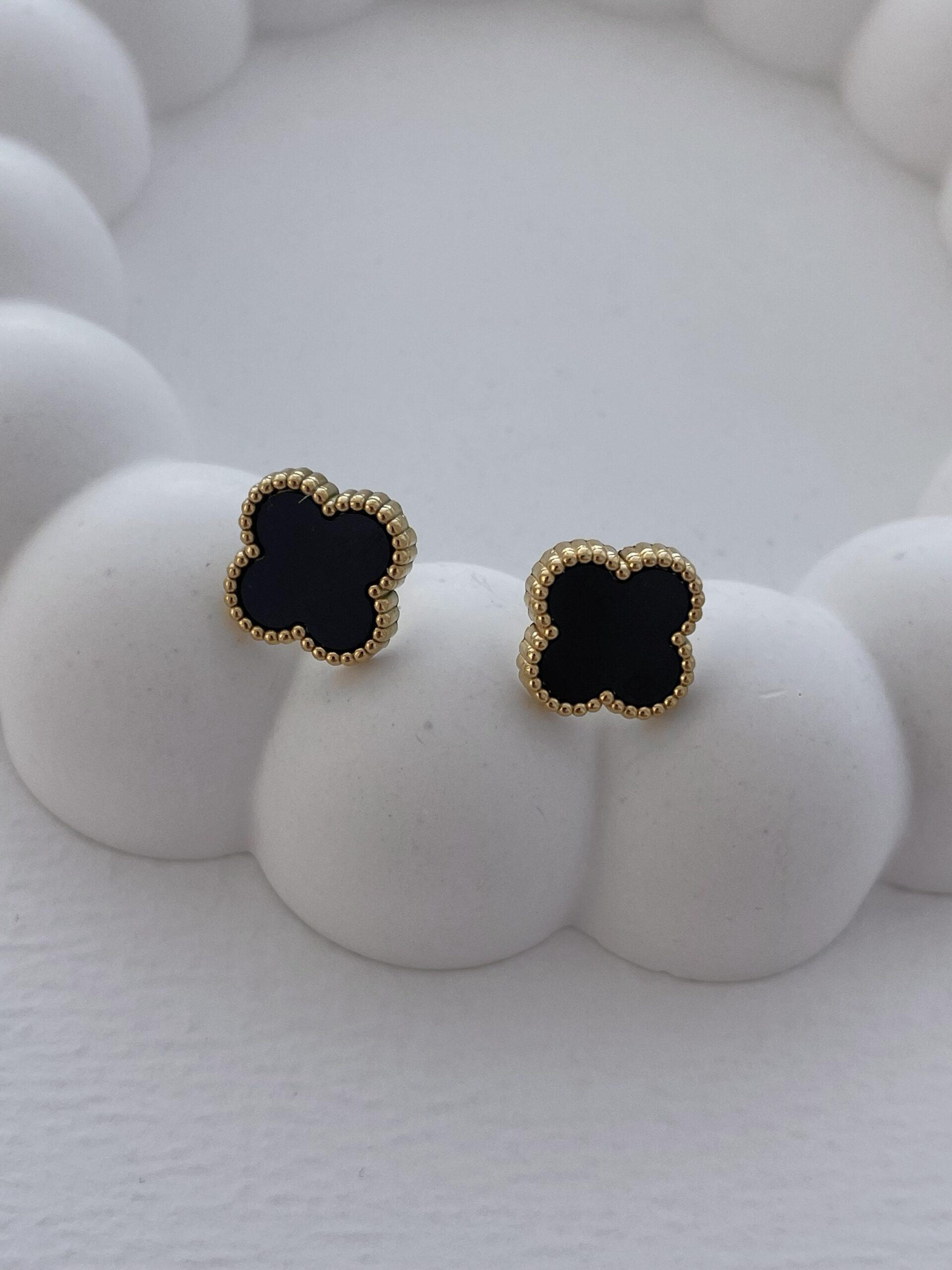 Çelik Tekli Yonca Tasarım Siyah Küpe