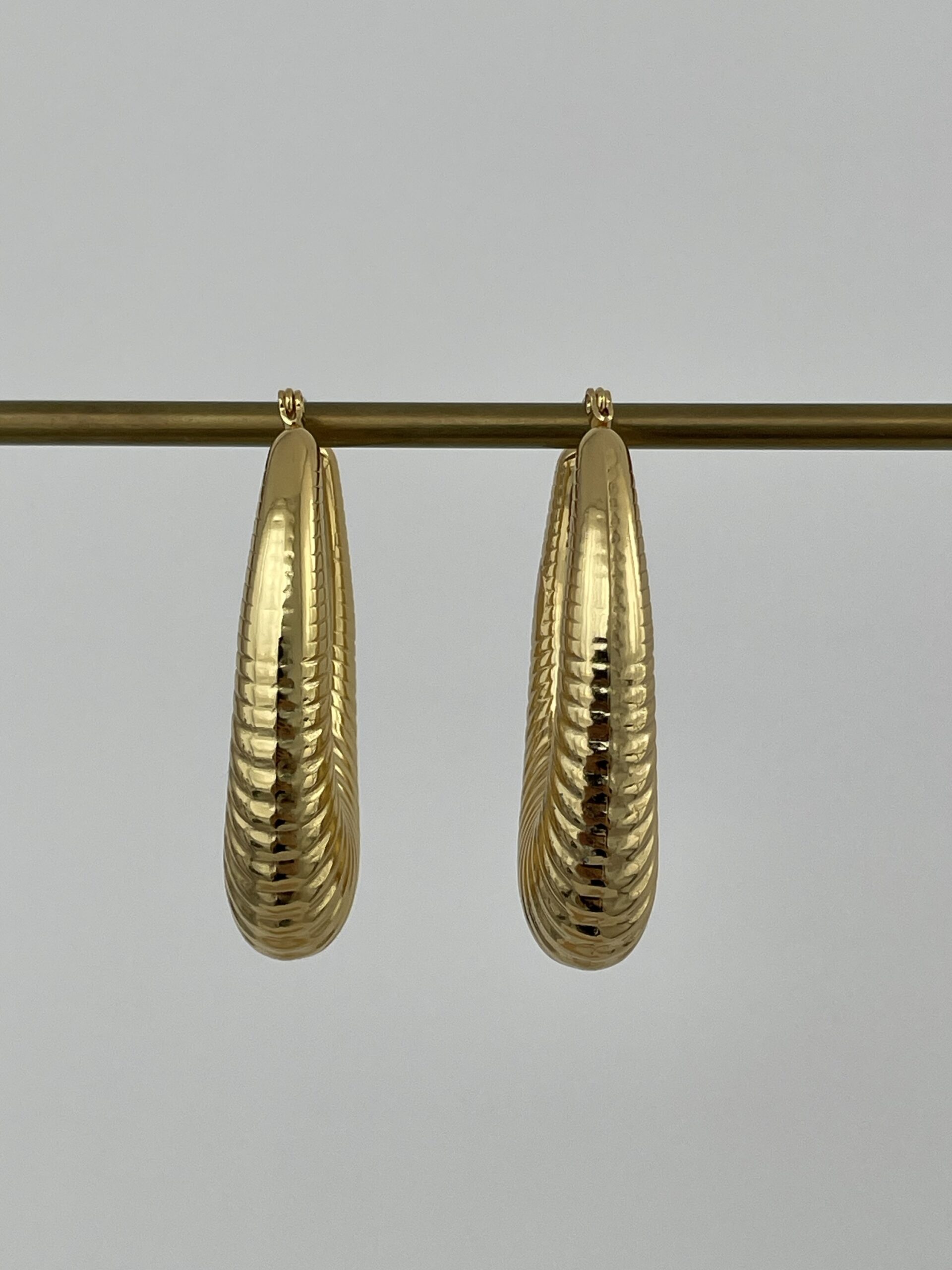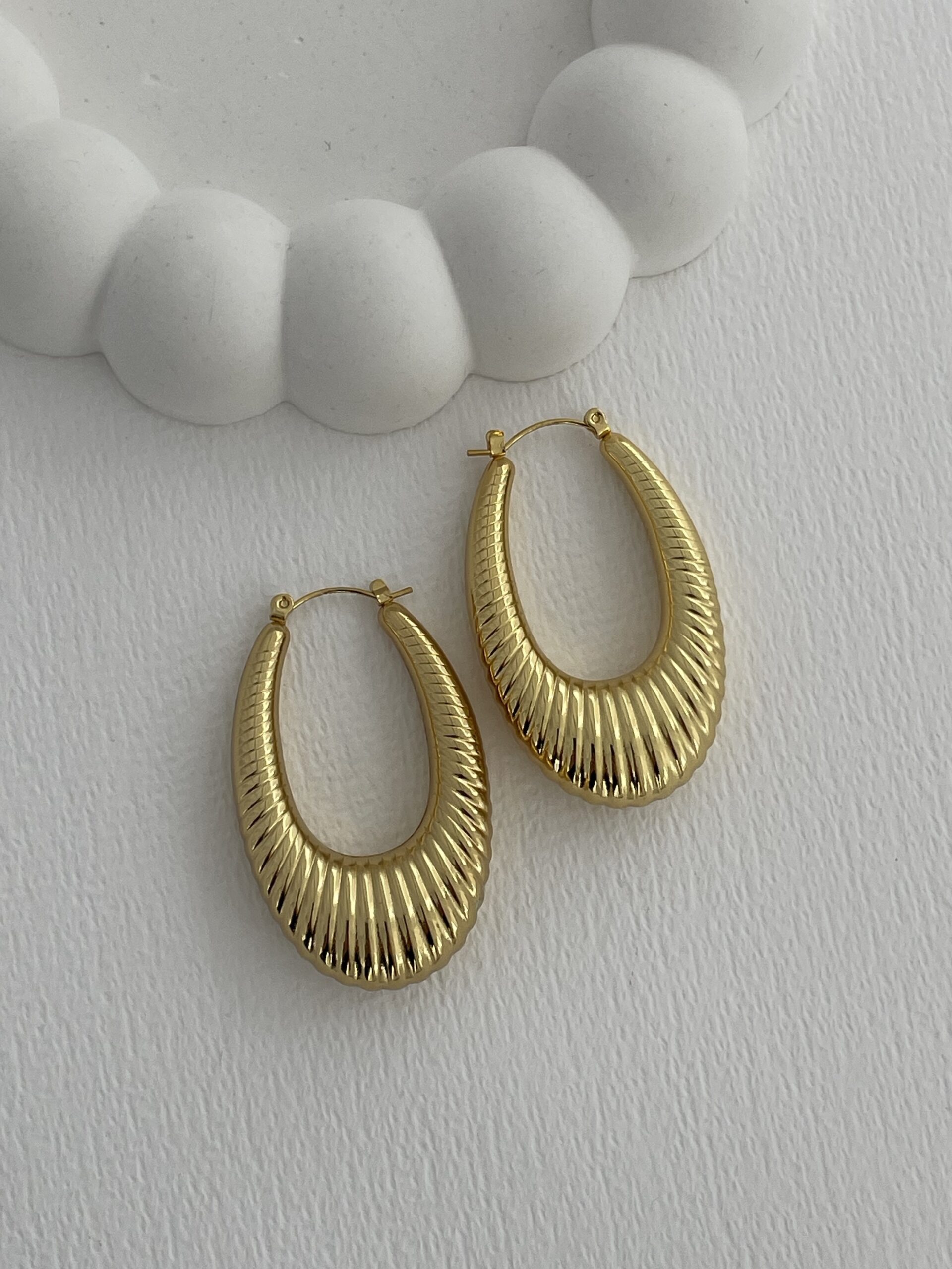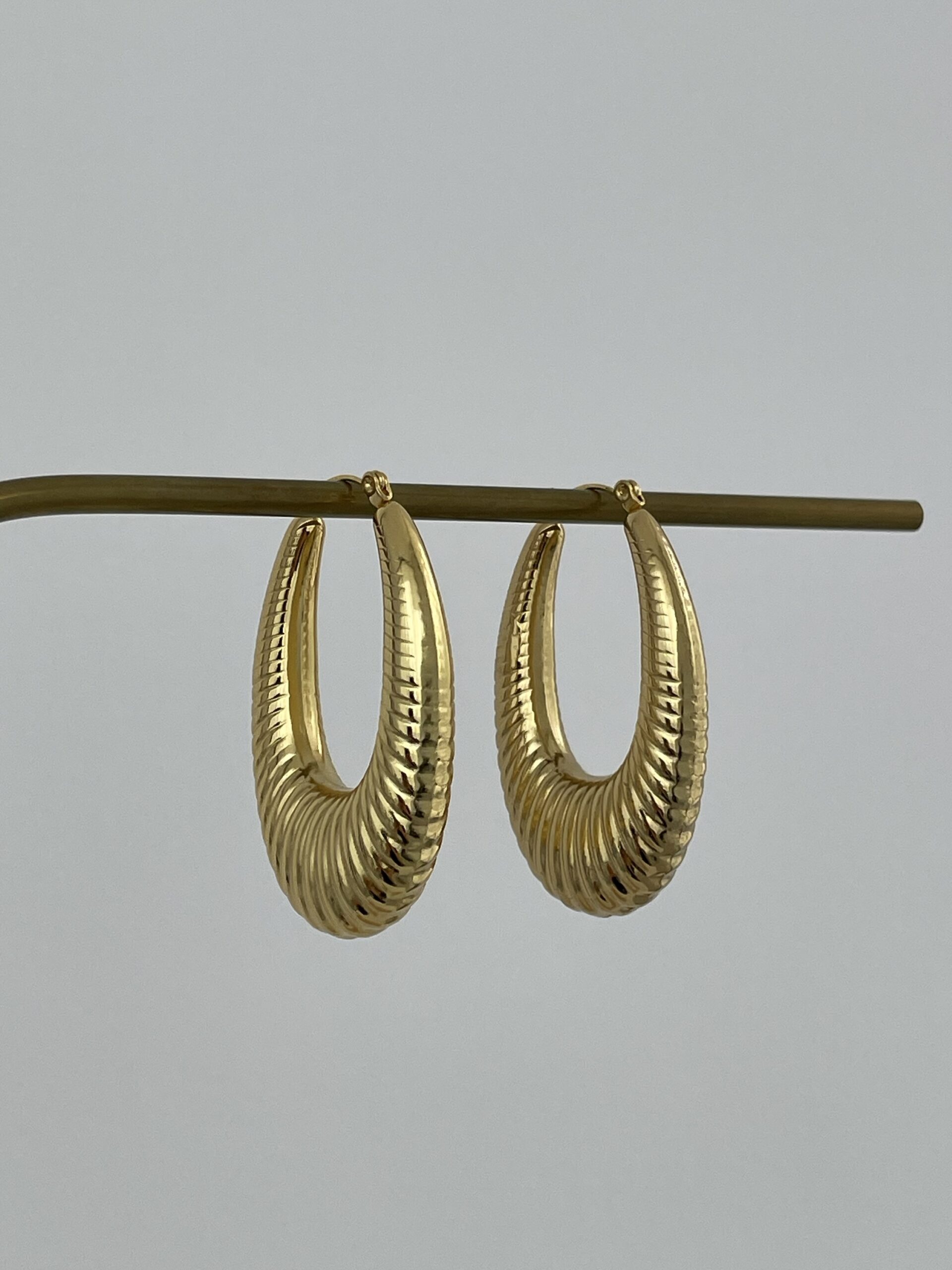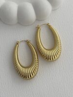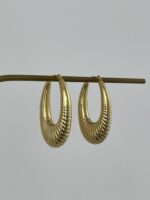 Çelik Tırtık Desen Oval Kalın Gold Halka Küpe