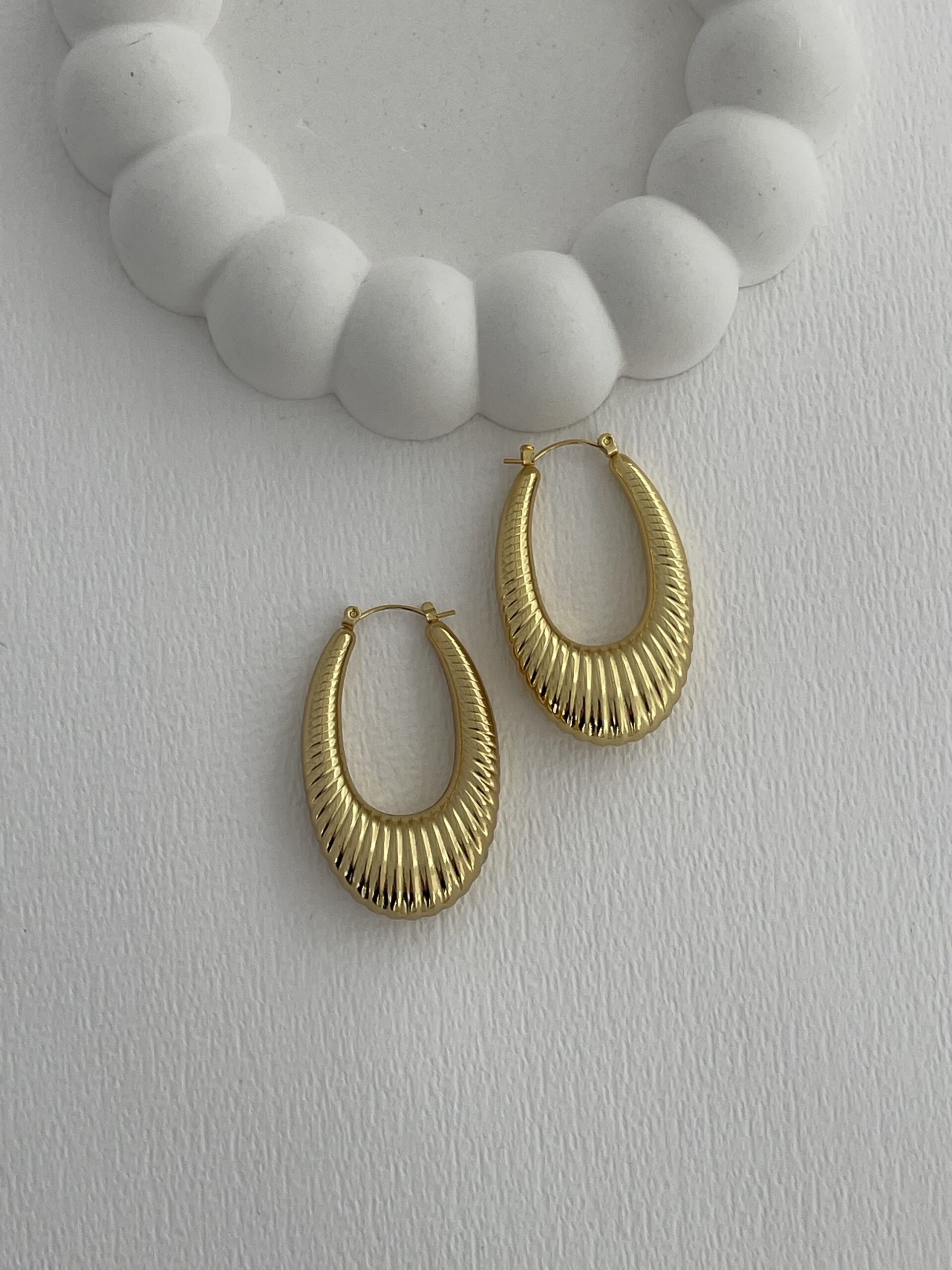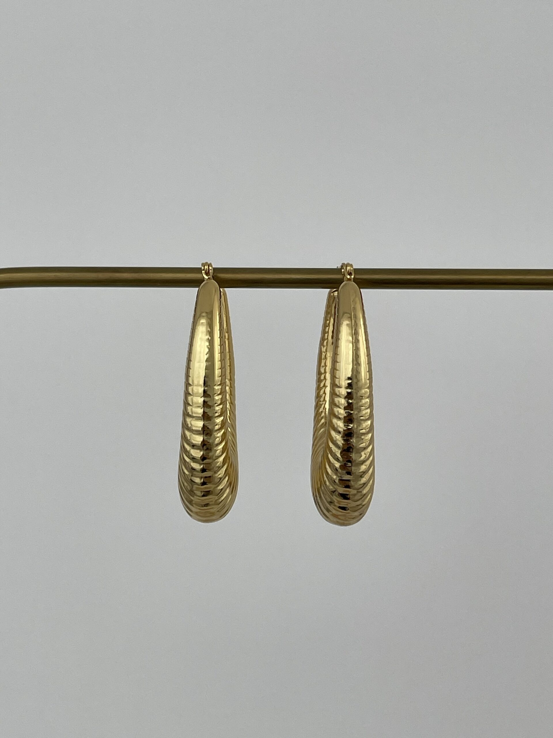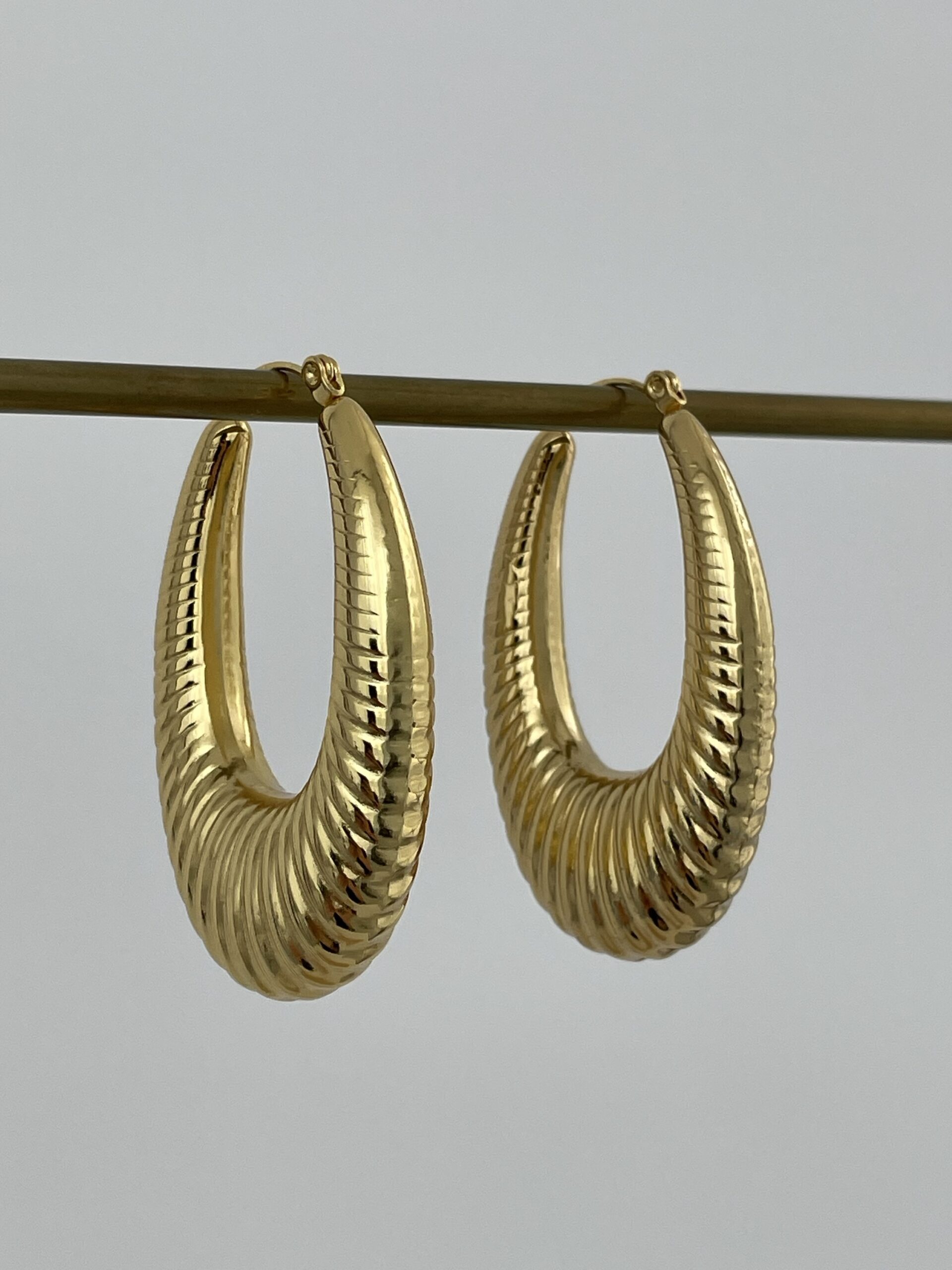 Çelik Tırtık Desen Oval Kalın Gold Halka Küpe