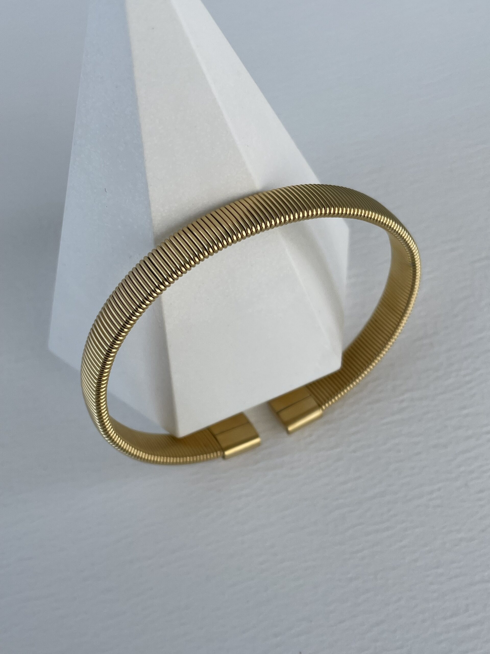 Çelik Tırtık Model İnce Gold Kelepçe Bileklik
