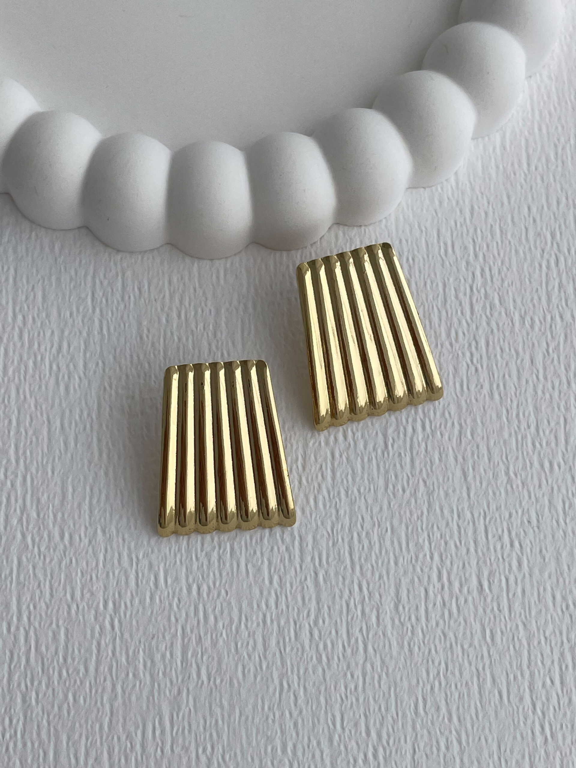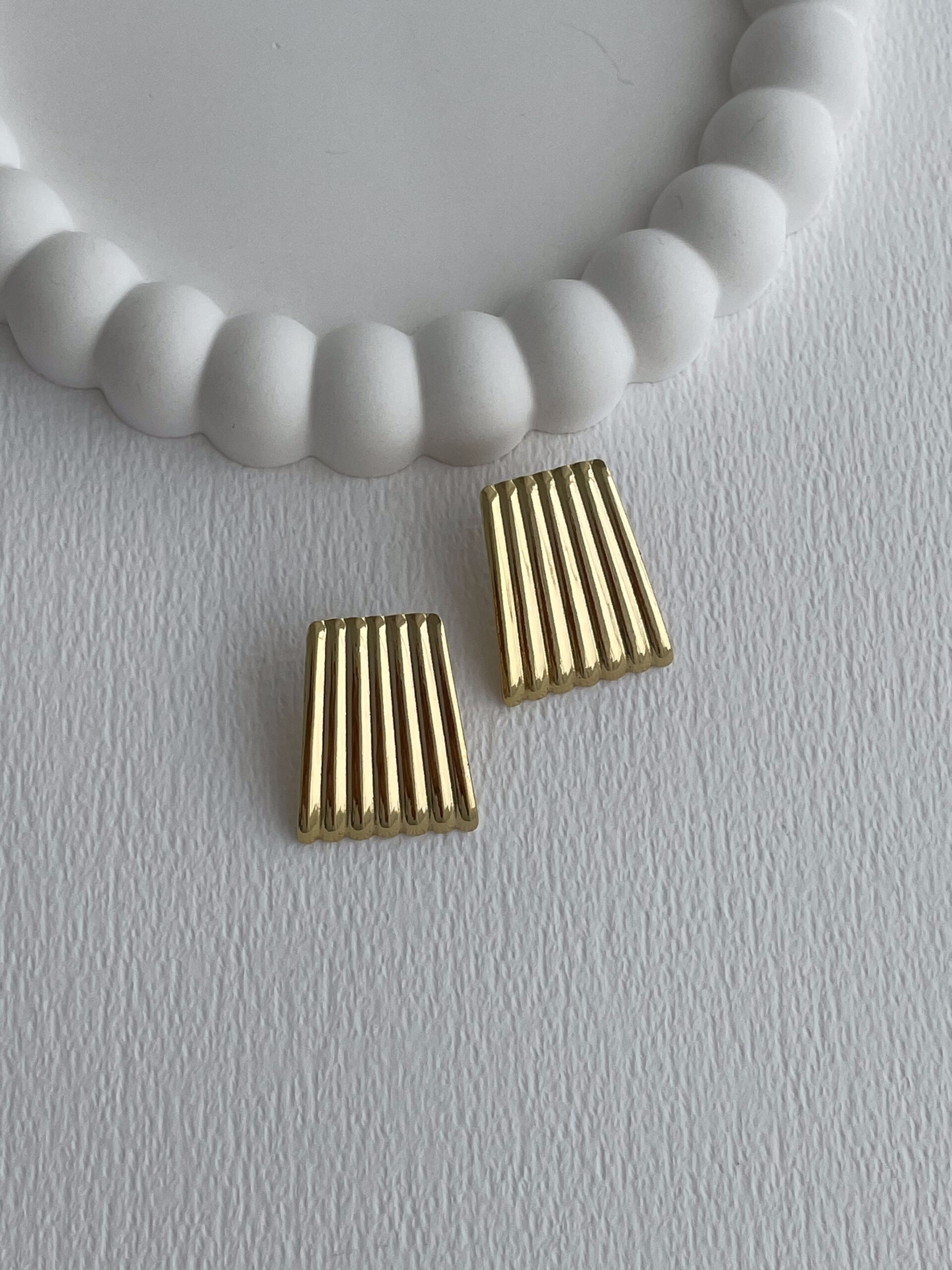 Çelik Tırtıklı Dikdörtgen Tasarım Gold Küpe