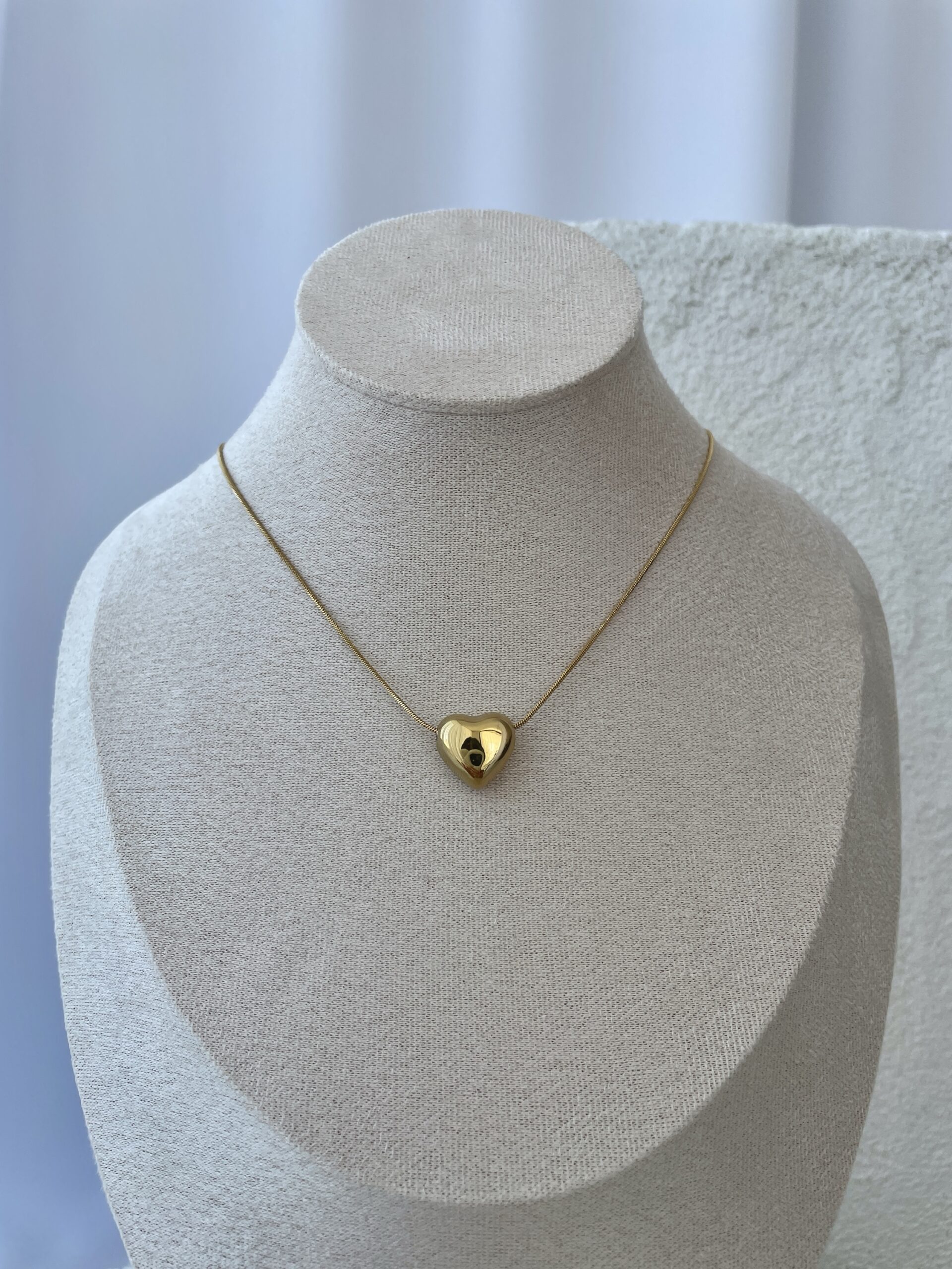 Çelik Tombul Kalp Tasarım Gold Kolye