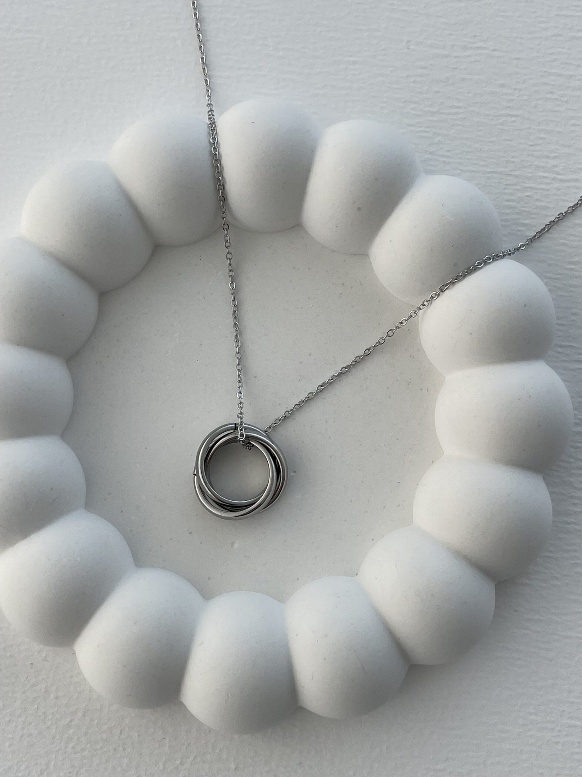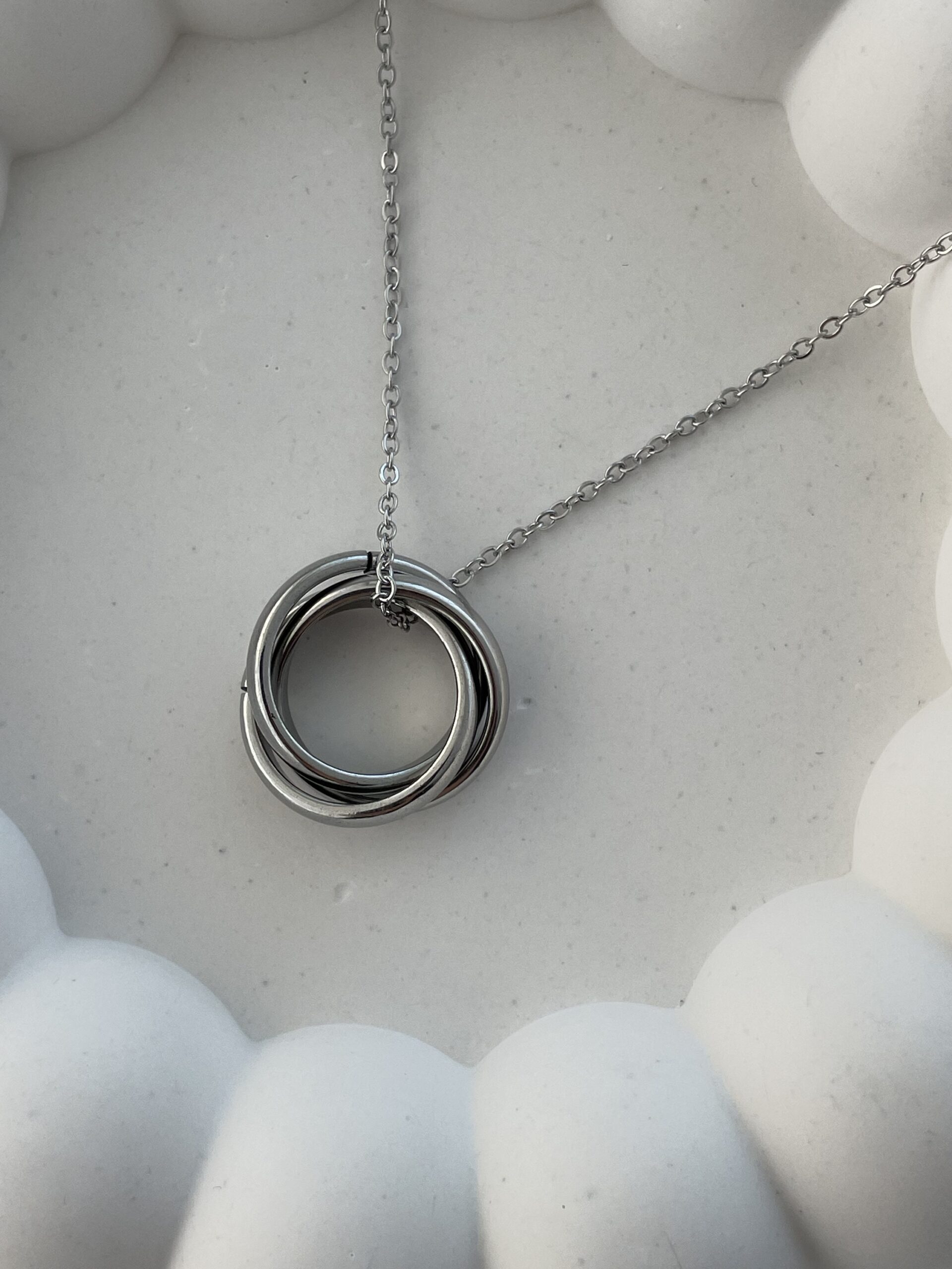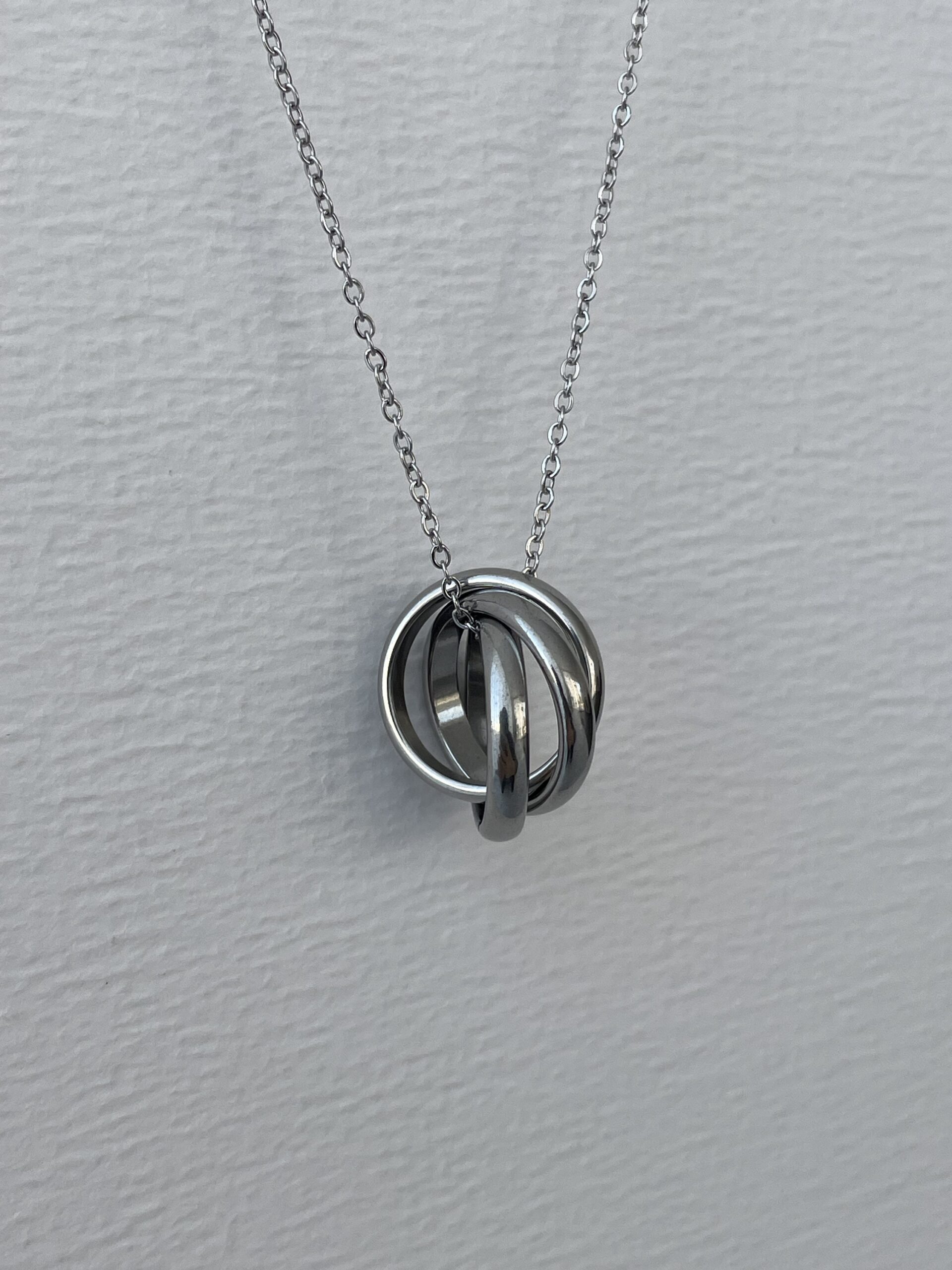 Çelik Üç Halka Gümüş Zincir Kolye