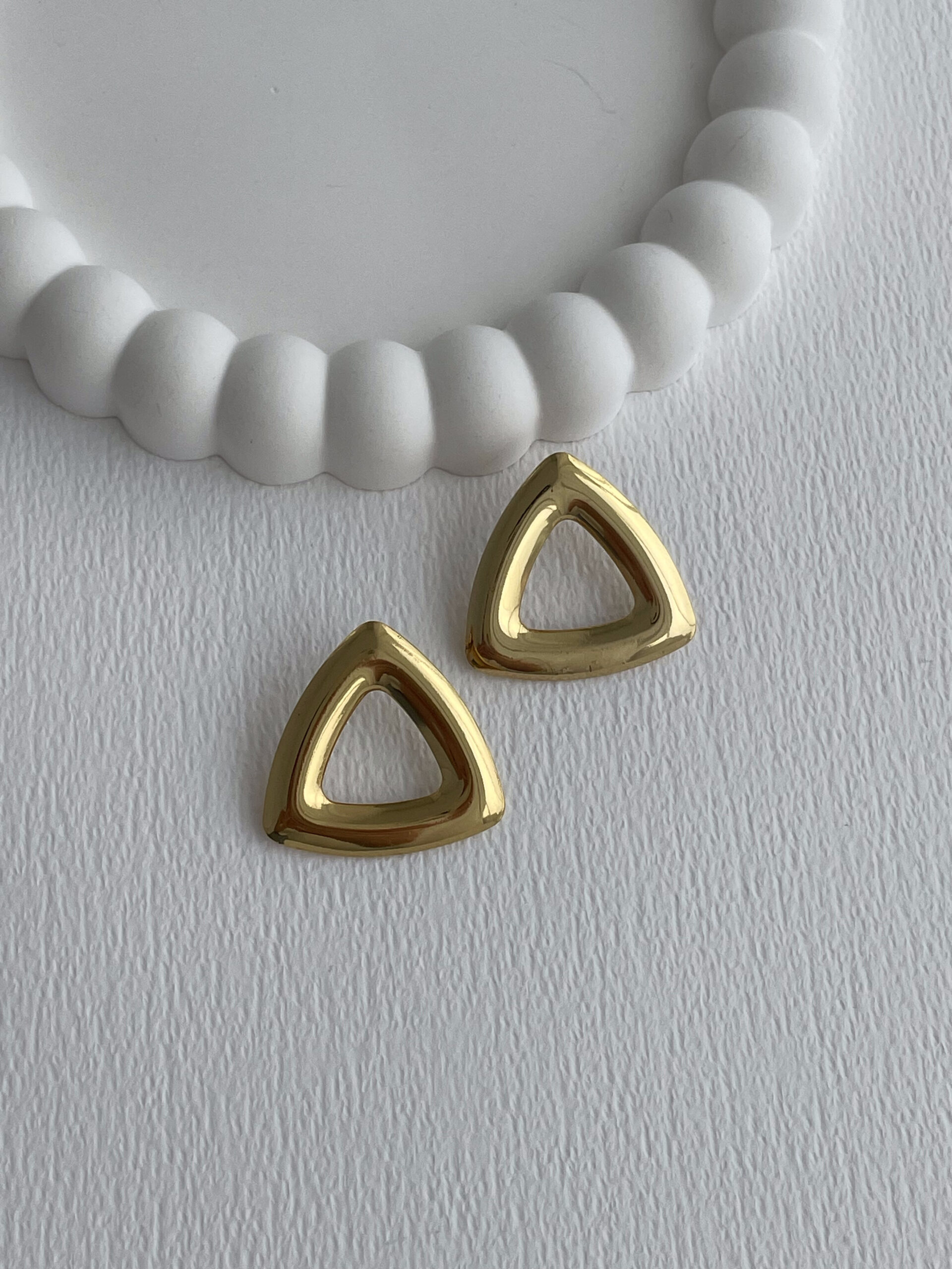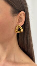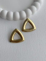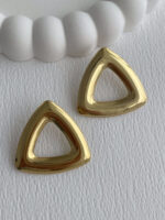 Çelik Üçgen Tasarım Ortası Boş Gold Küpe