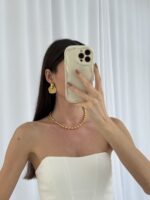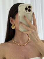 Çelik Yaprak Tasarım Gold Küpe