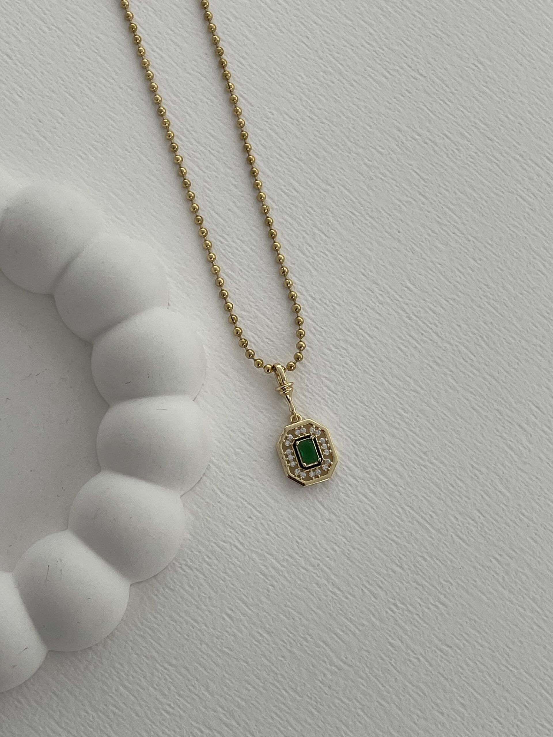 Çelik Yeşil Baget Taşlı Kare Tasarım Golda Kolye