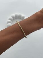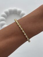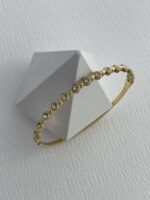 Çelik Yuvarlak Çerçeveli Zirkon Taş Gold Kelepçe Bileklik