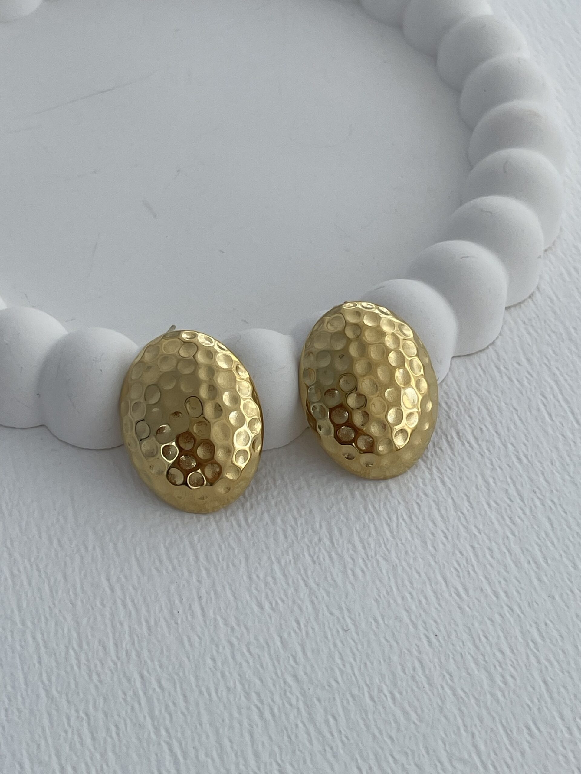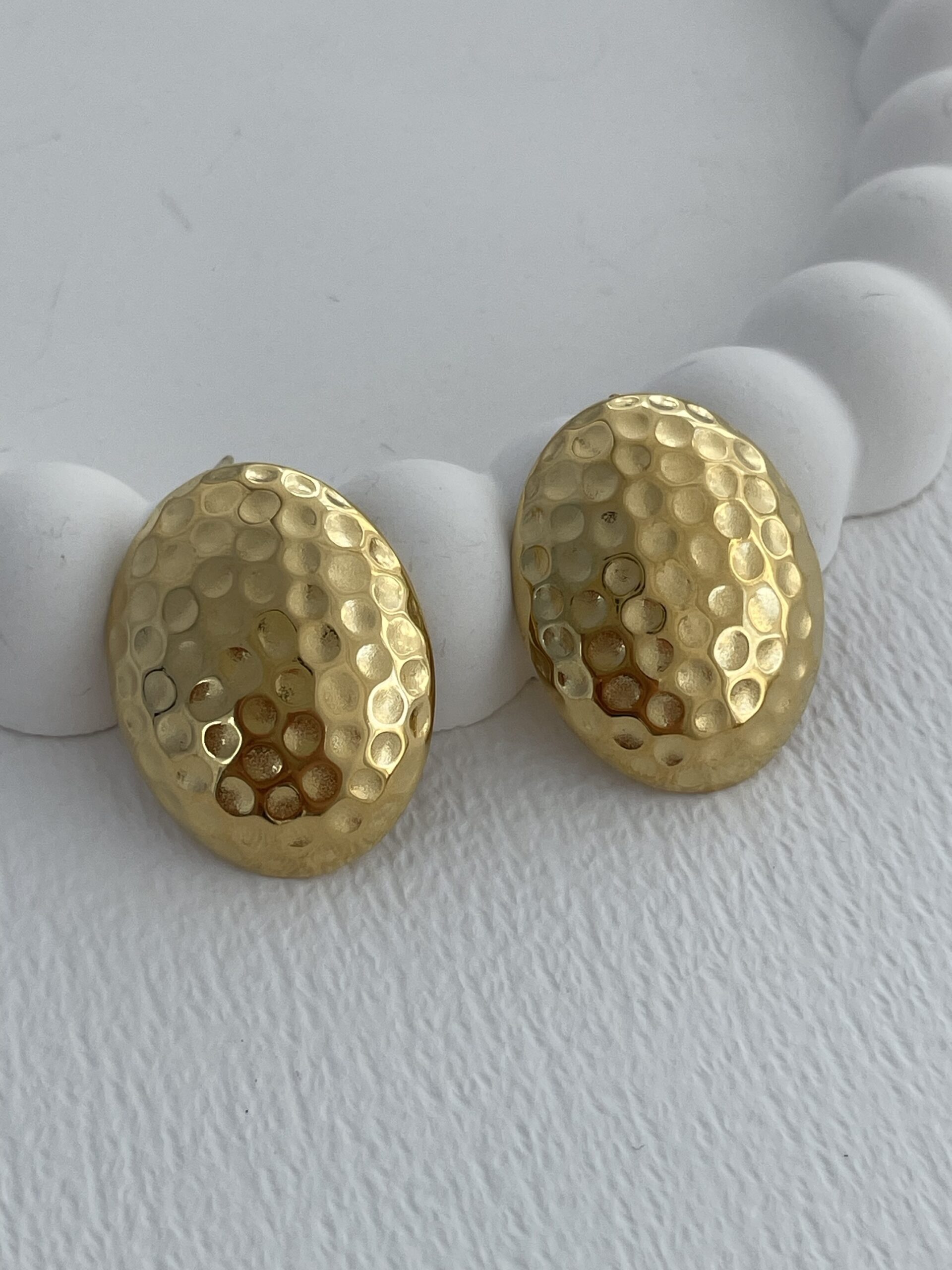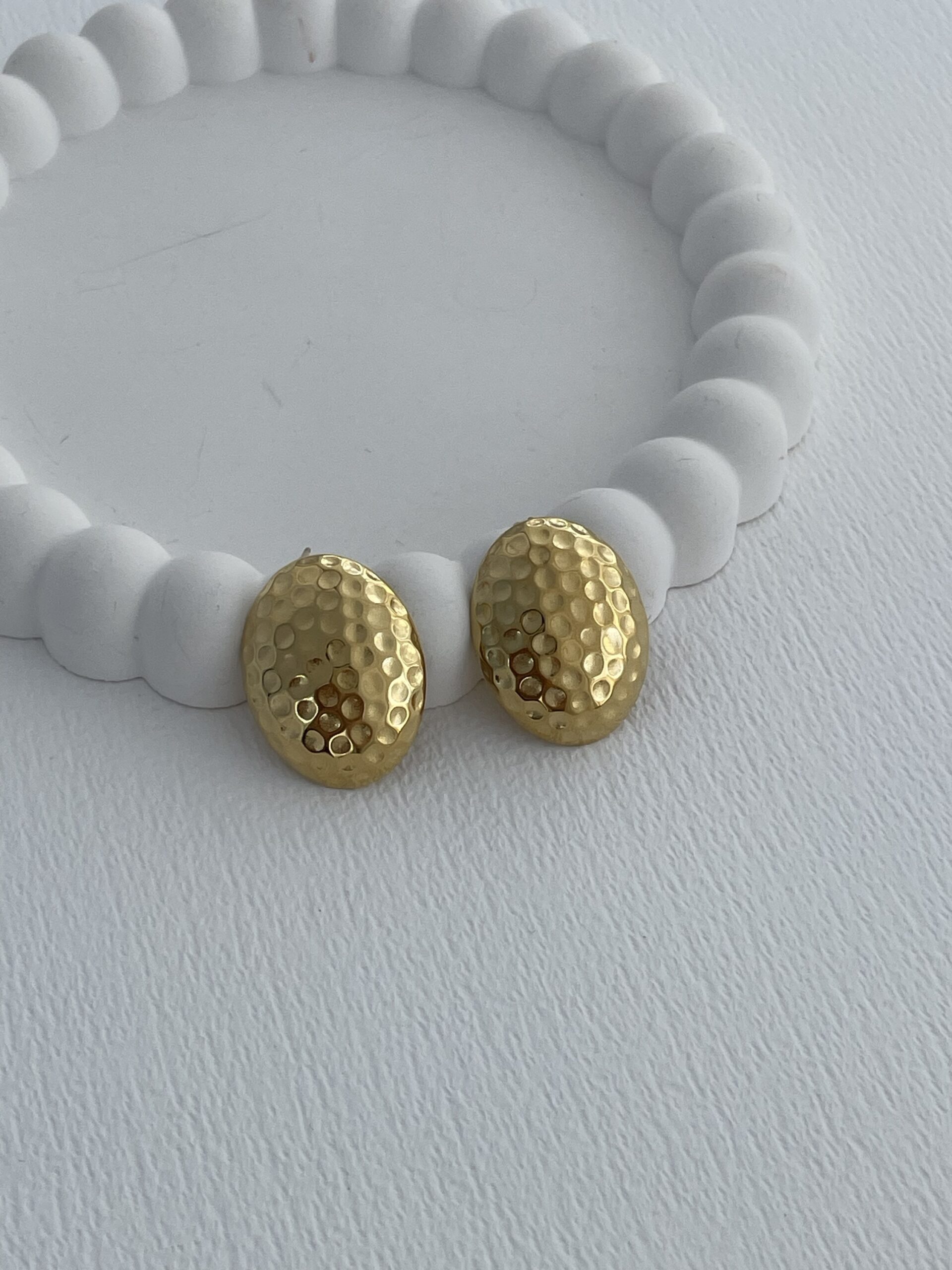 Çelik Yuvarlak Desenli Oval Tasarım Gold Küpe