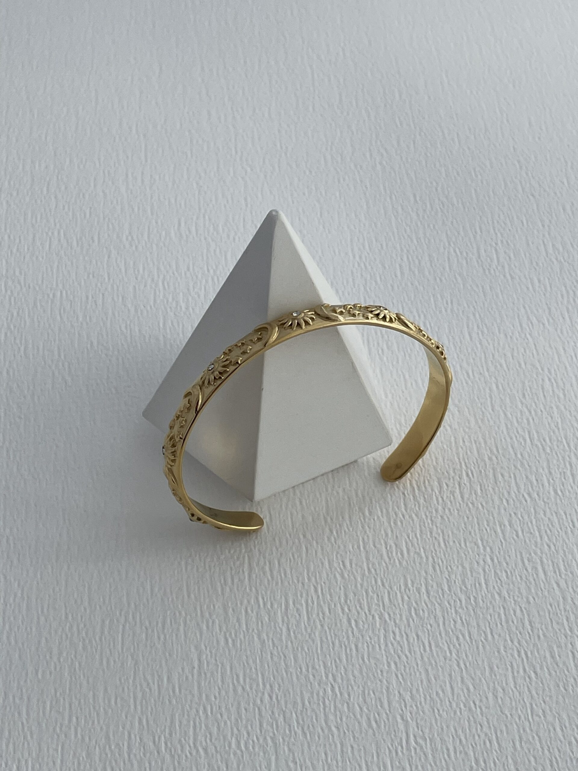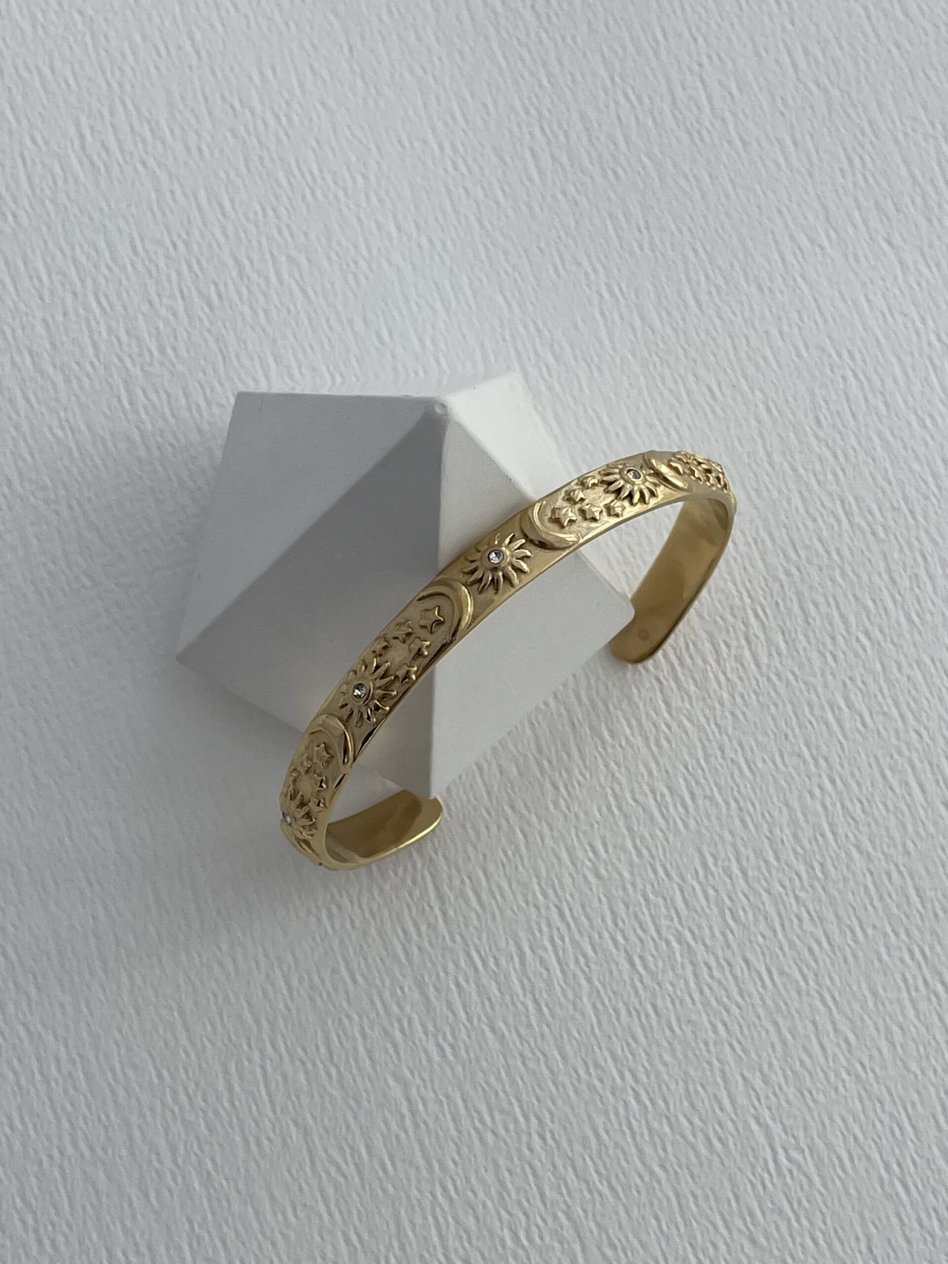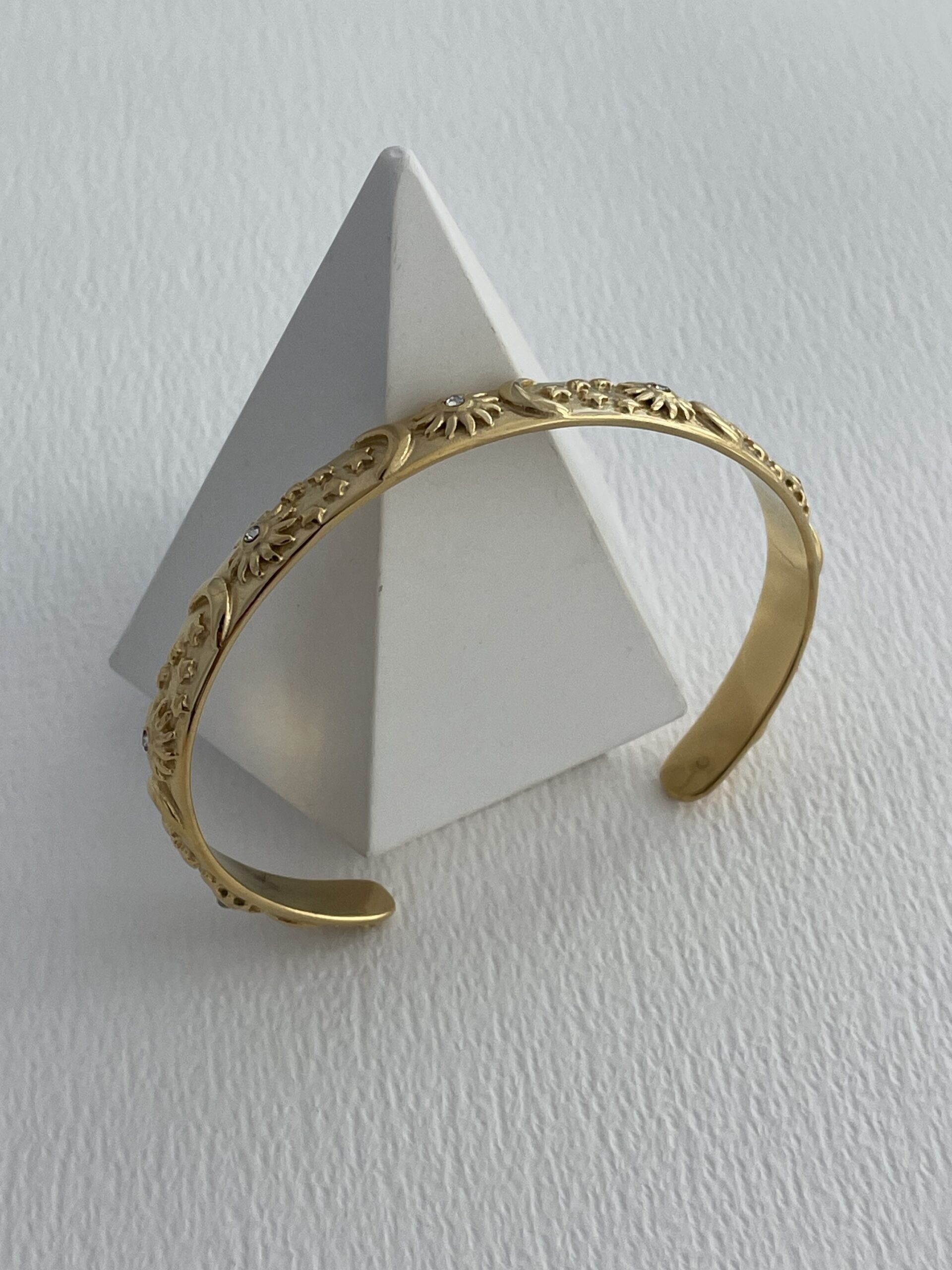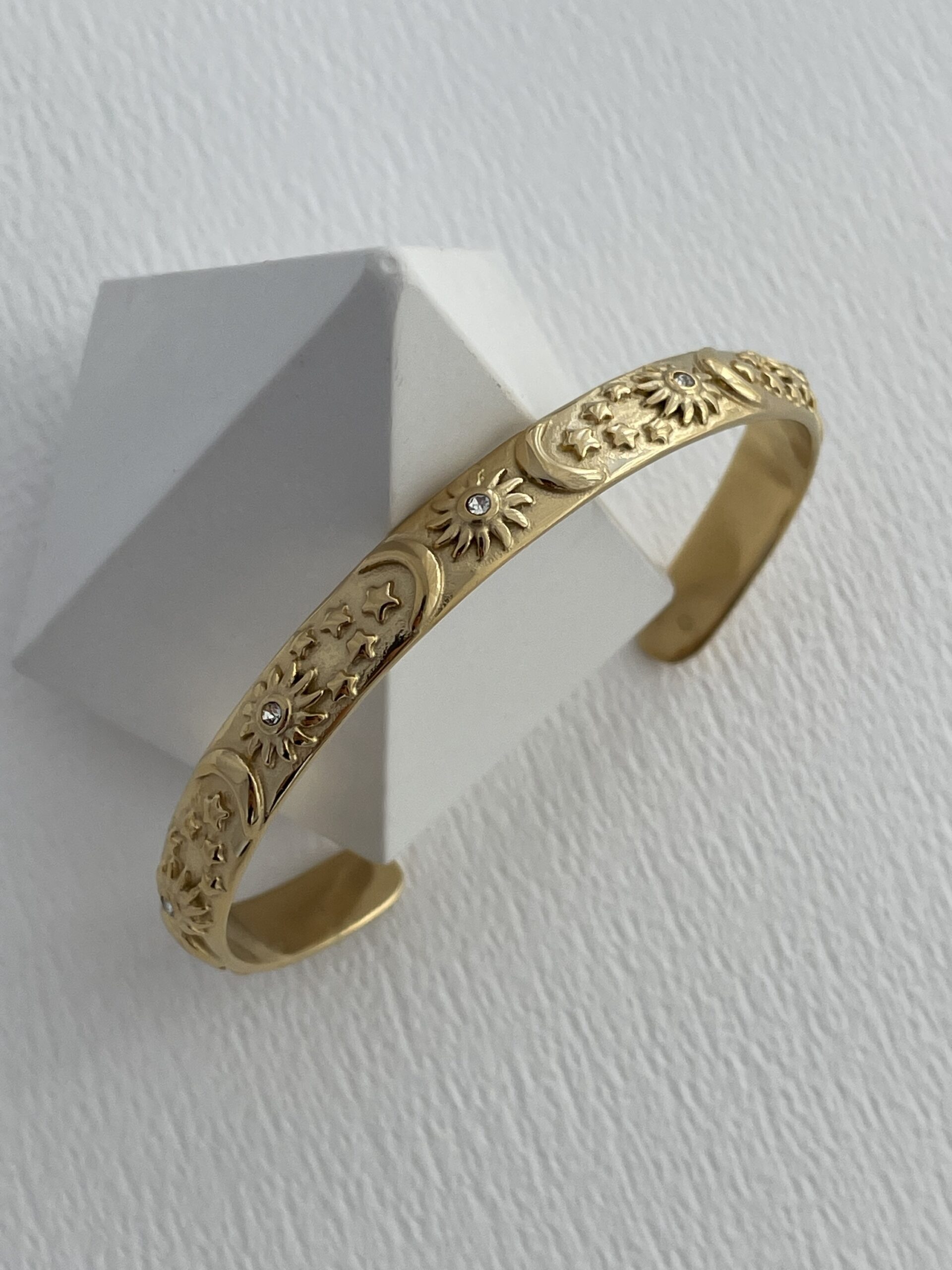 Çelik Zirkon Taşlı Ay & Güneş Tasarım Sıkıştırılabilir Gold Bileklik