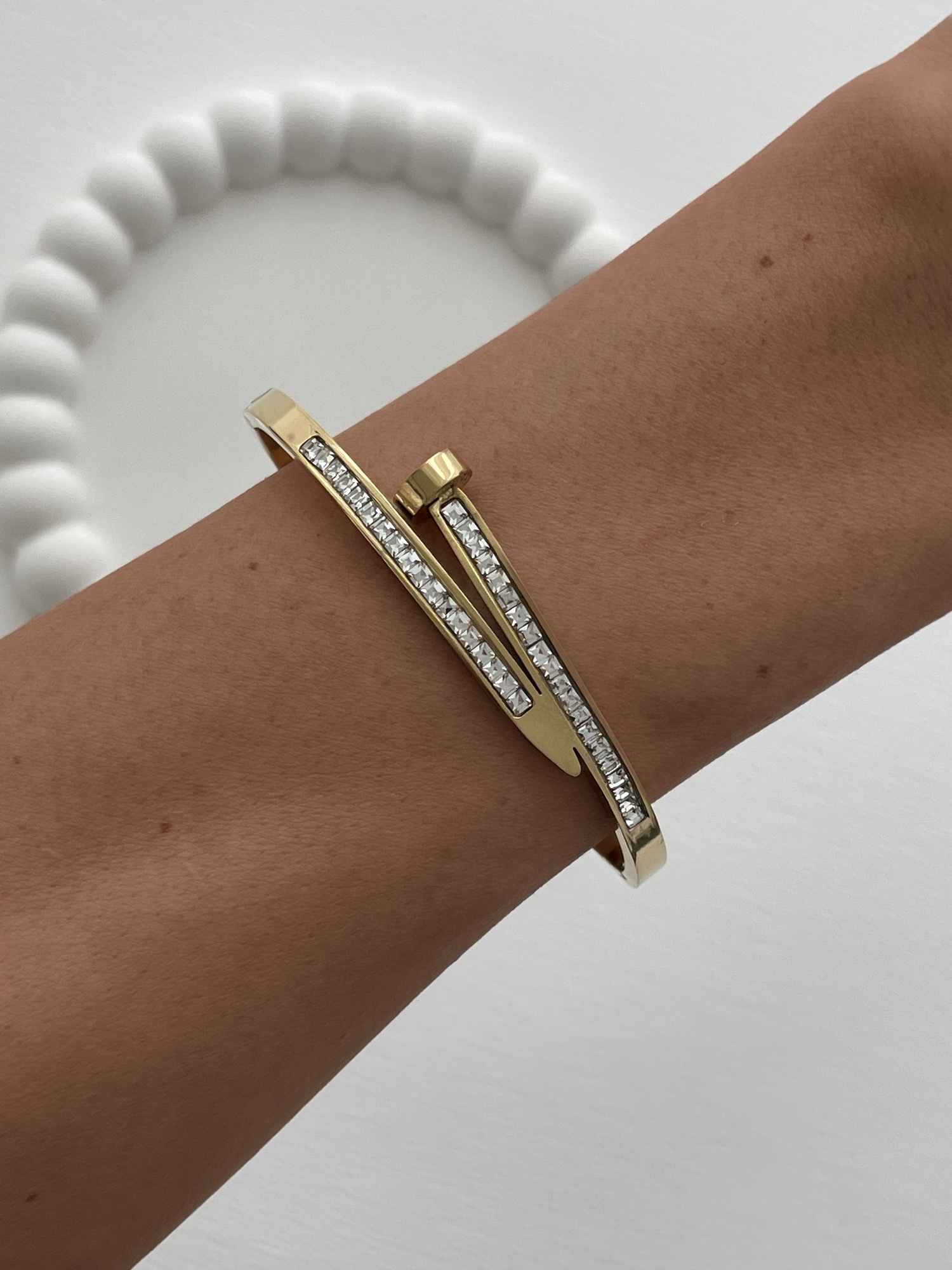 Çelik Zirkon Taşlı Çivi Tasarım Gold Bileklik