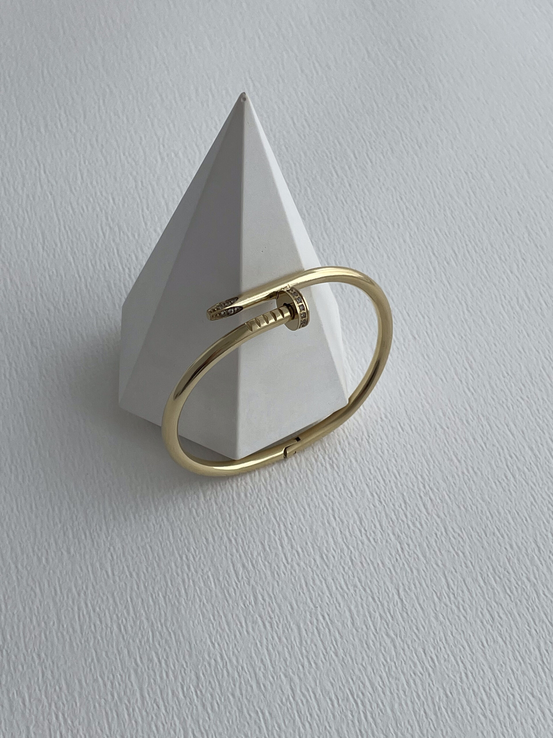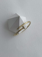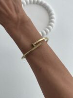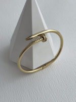 Çelik Zirkon Taşlı Çivi Tasarım Gold Kelepçe Bileklik