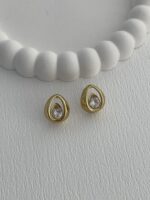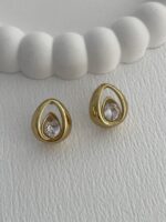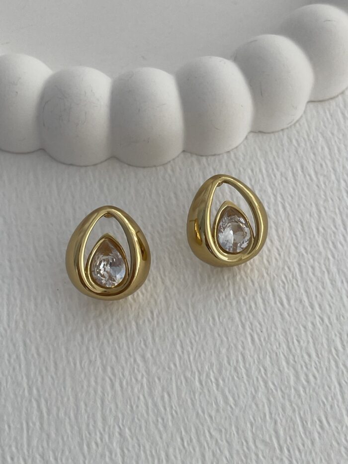 Çelik Zirkon Taşlı Damla Tasarım Gold Küpe