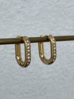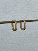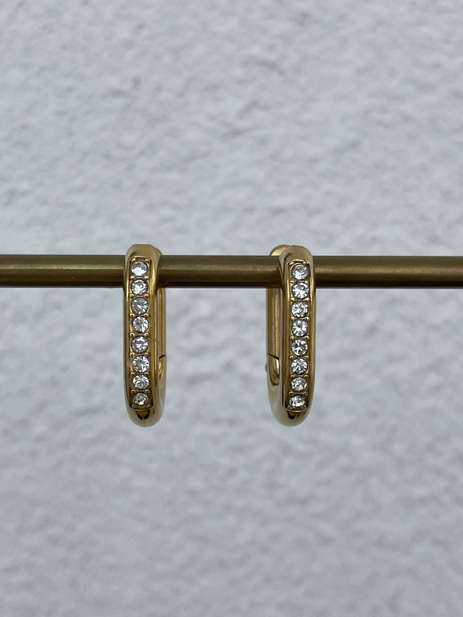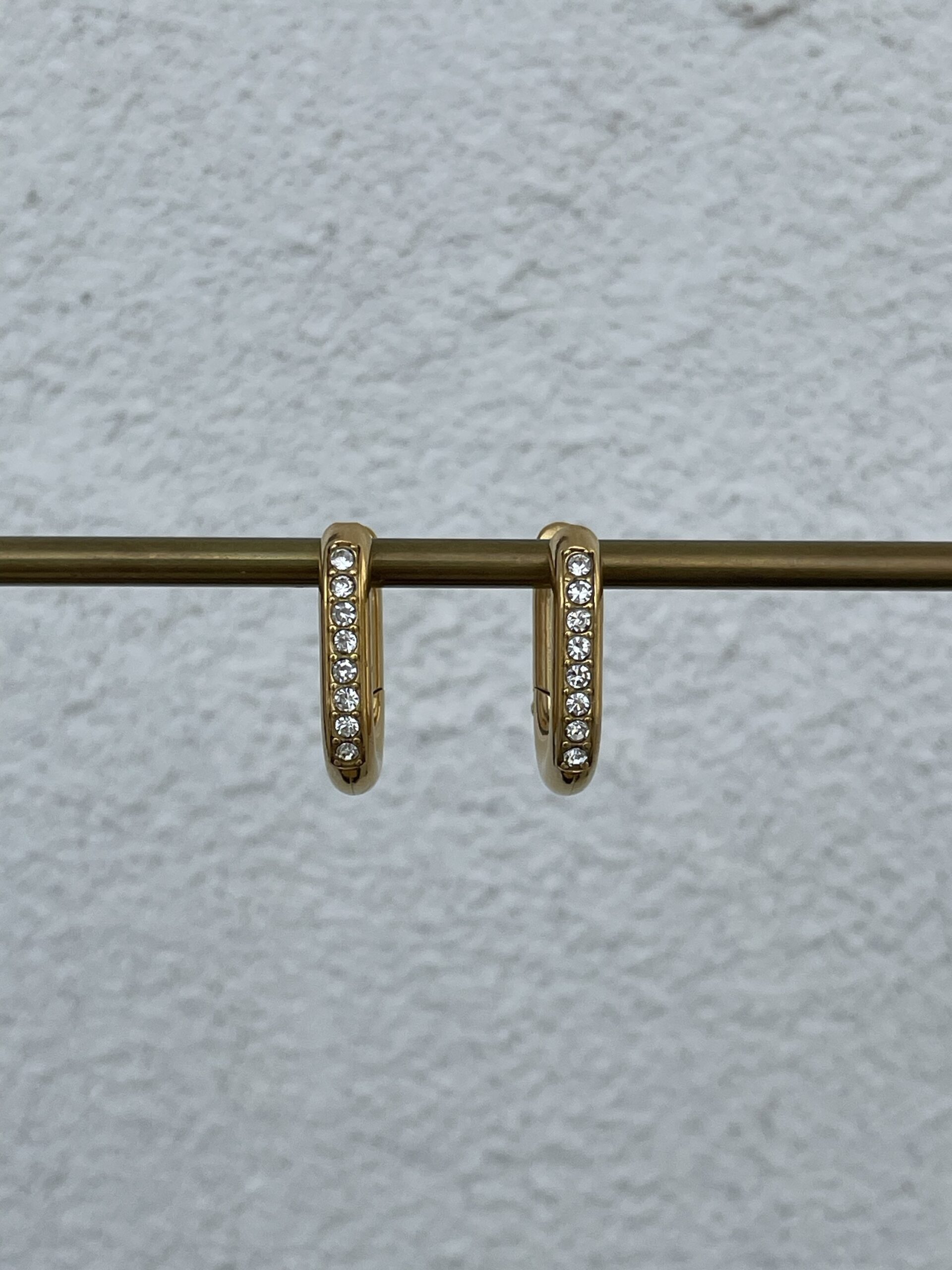 Çelik Zirkon Taşlı Dikdörtgen Tasarım Gold Küpe