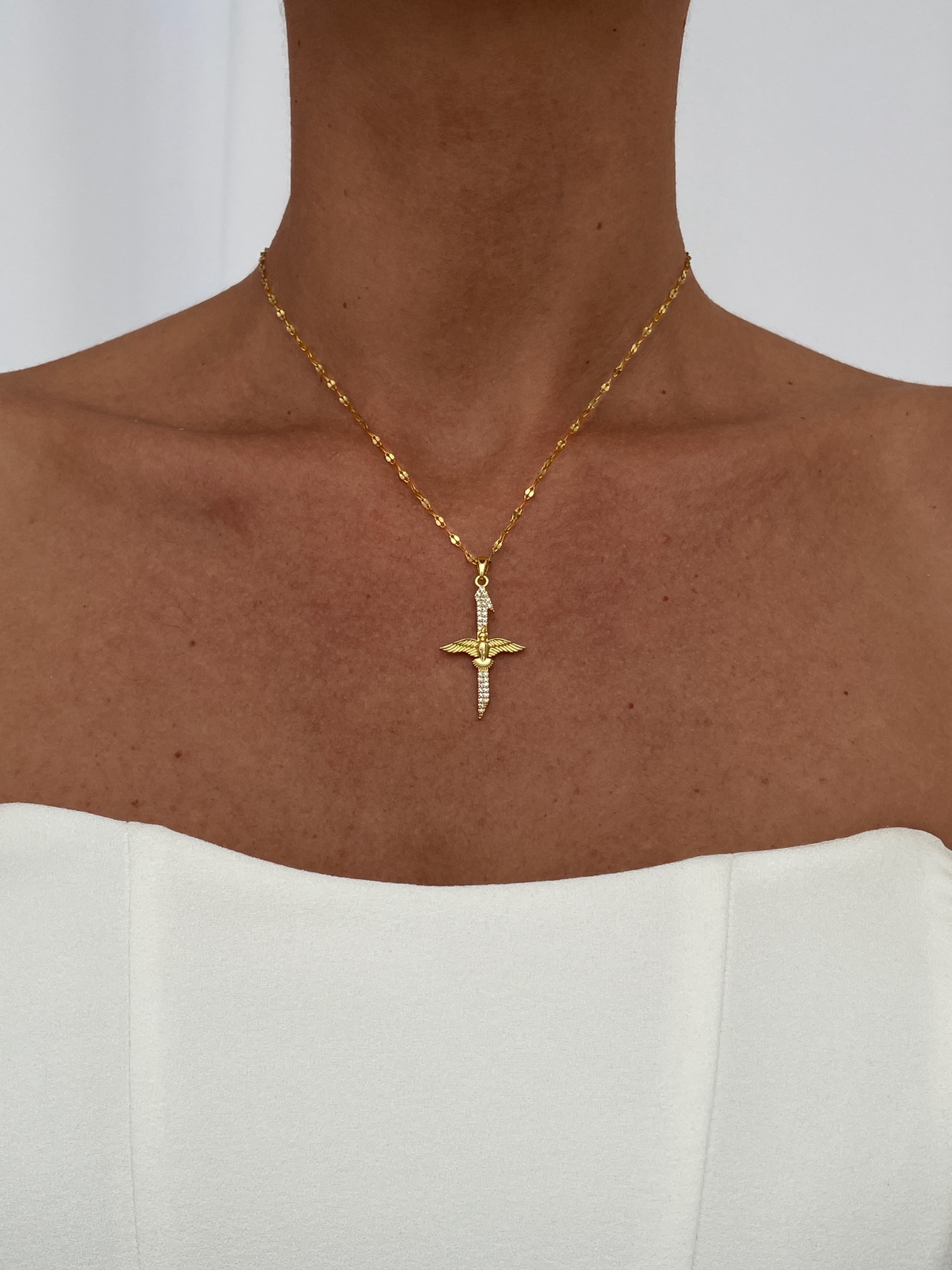 Çelik Zirkon Taşlı Elif & Anka Kuşu Gold Kolye 45+5cm