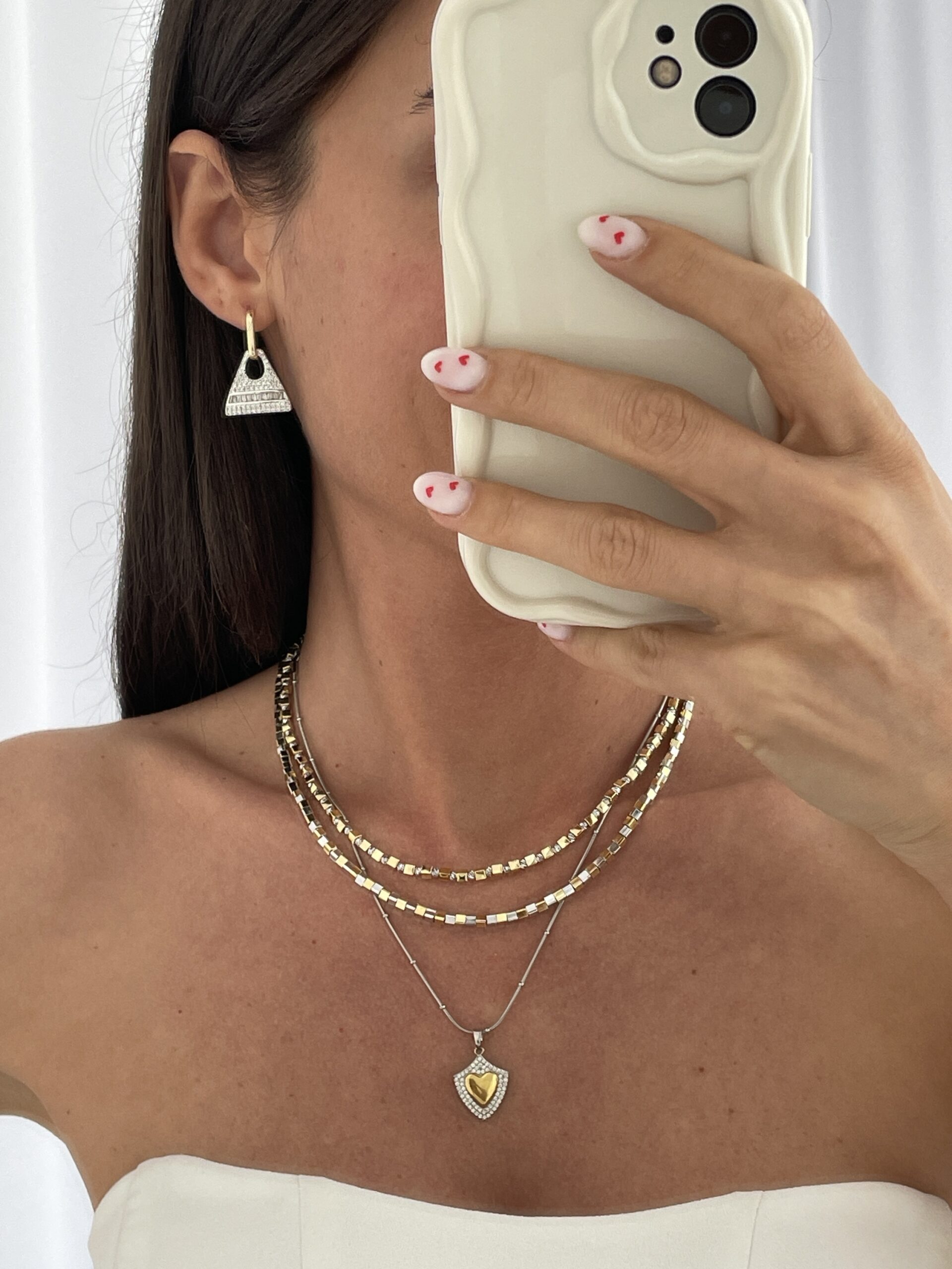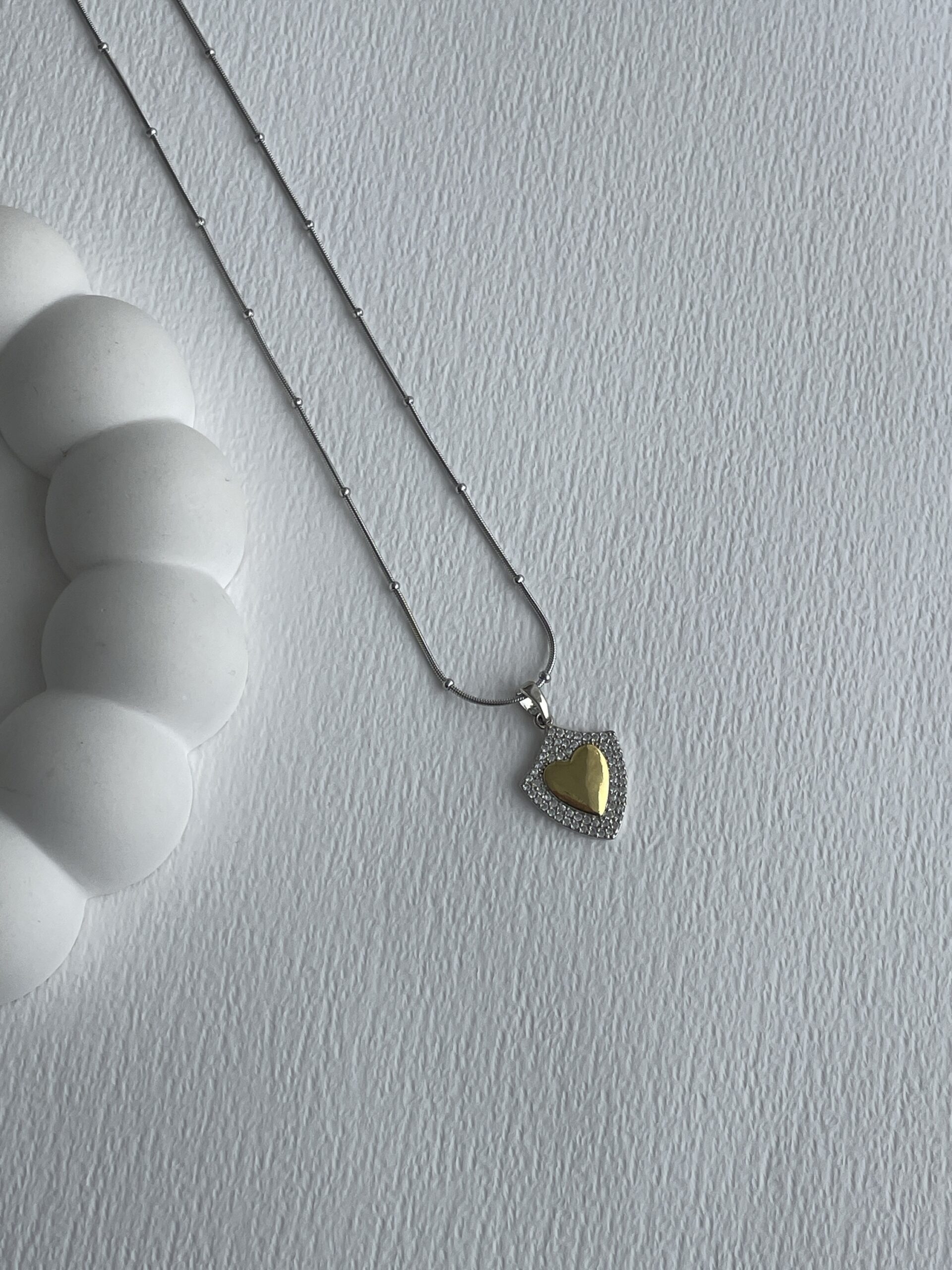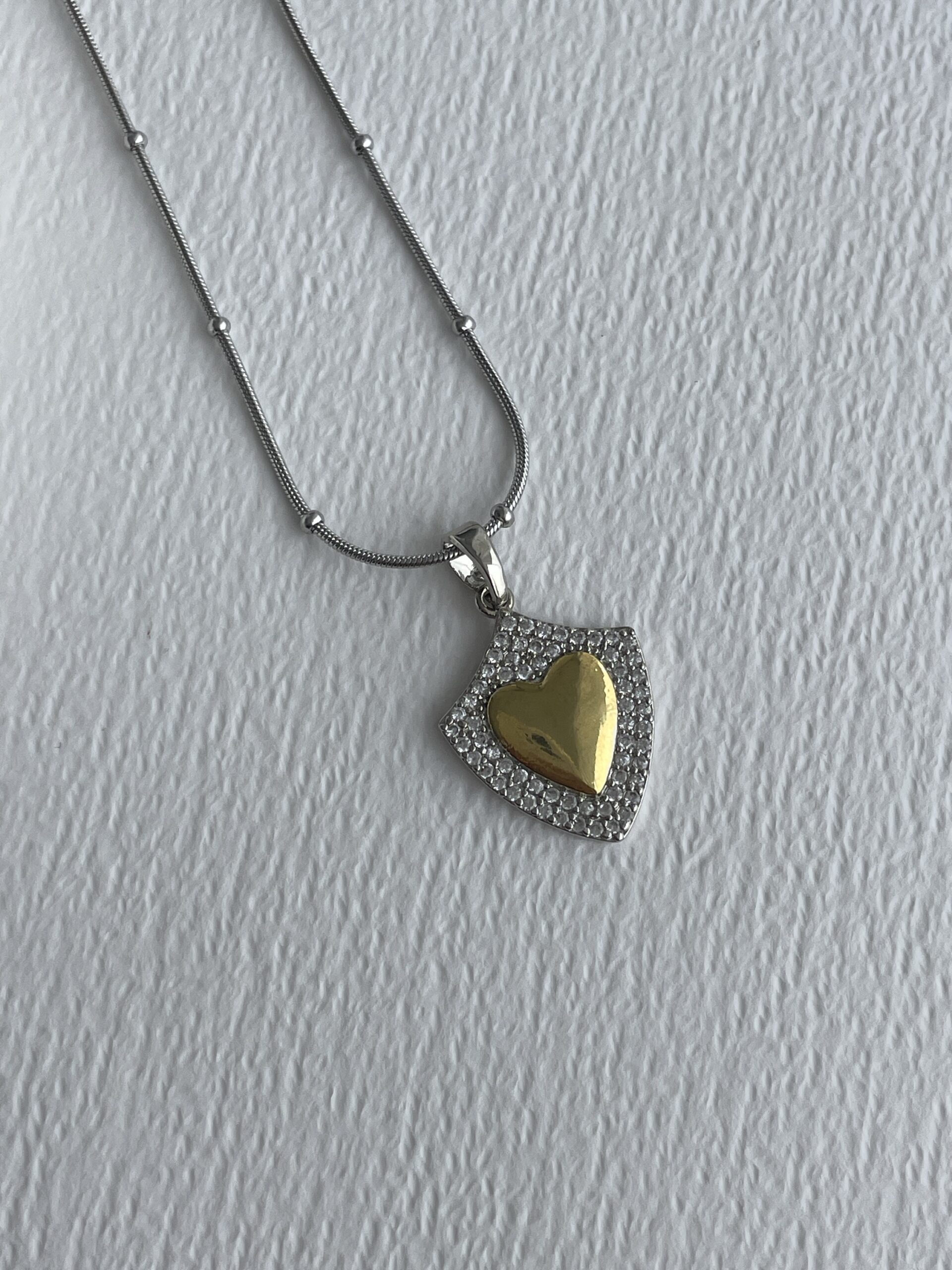 Çelik Zirkon Taşlı Gold & Gümüş Kalp Tasarım Kolye
