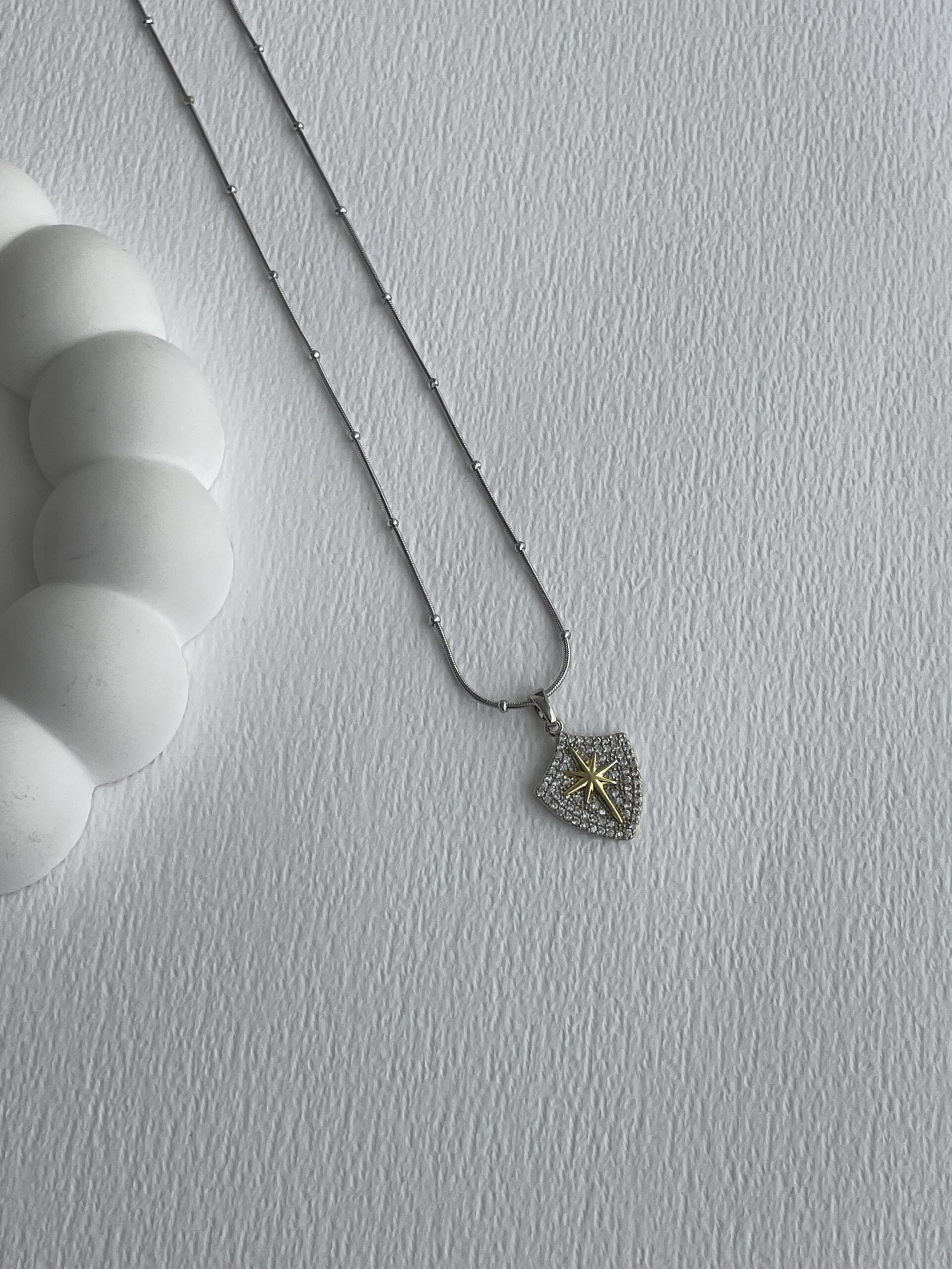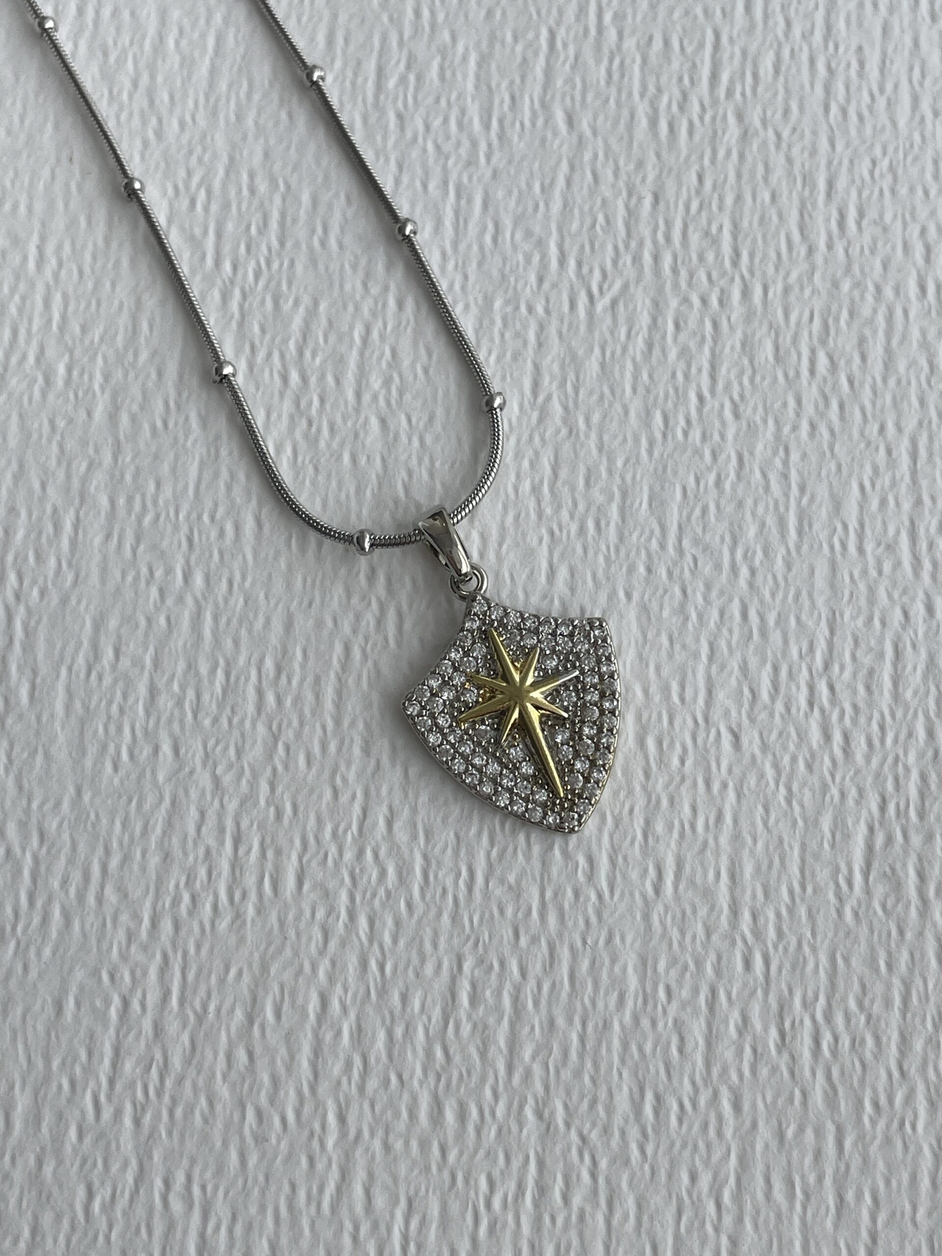 Çelik Zirkon Taşlı Gold & Gümüş Kuzey Yıldızı Tasarım Kolye