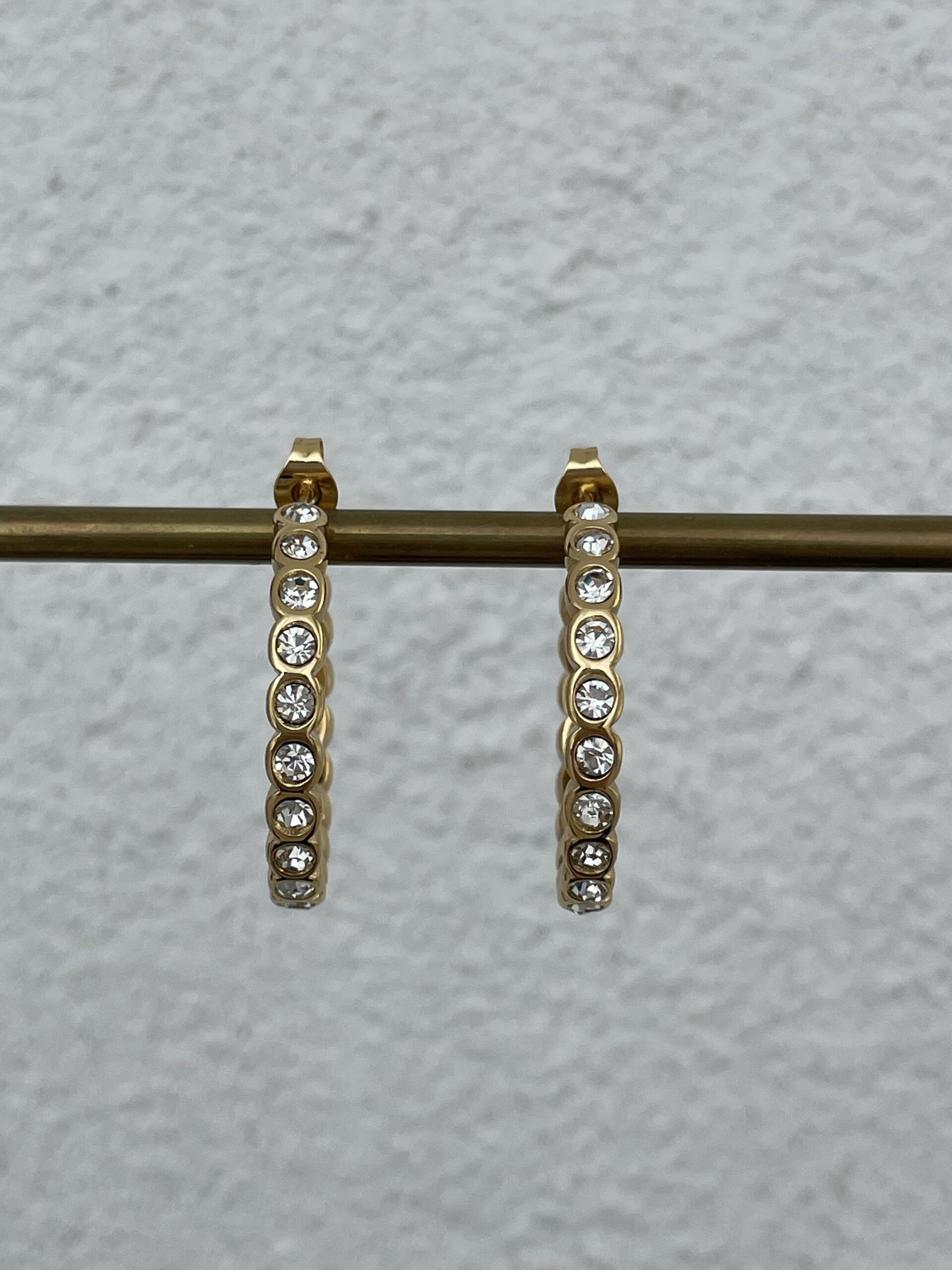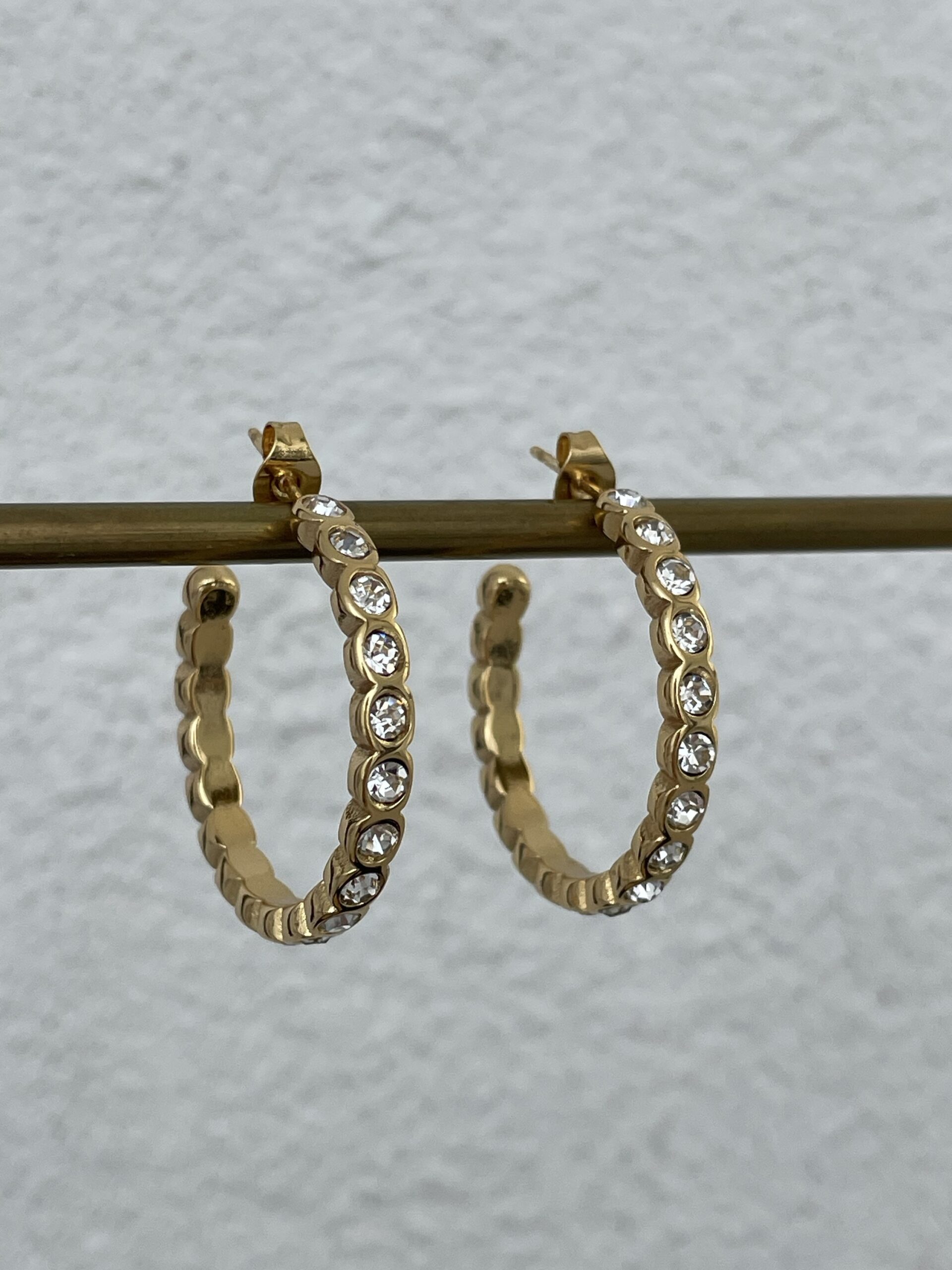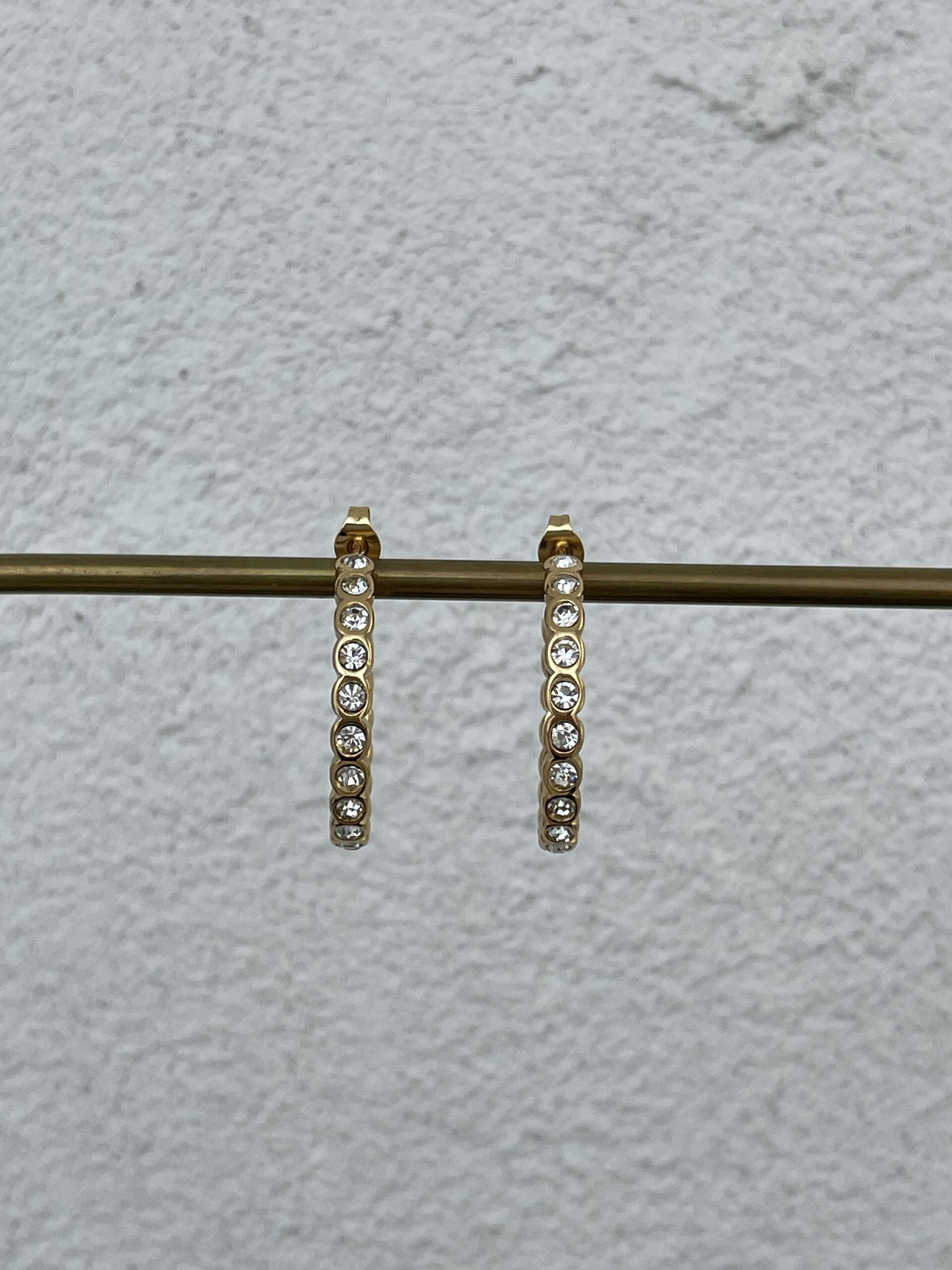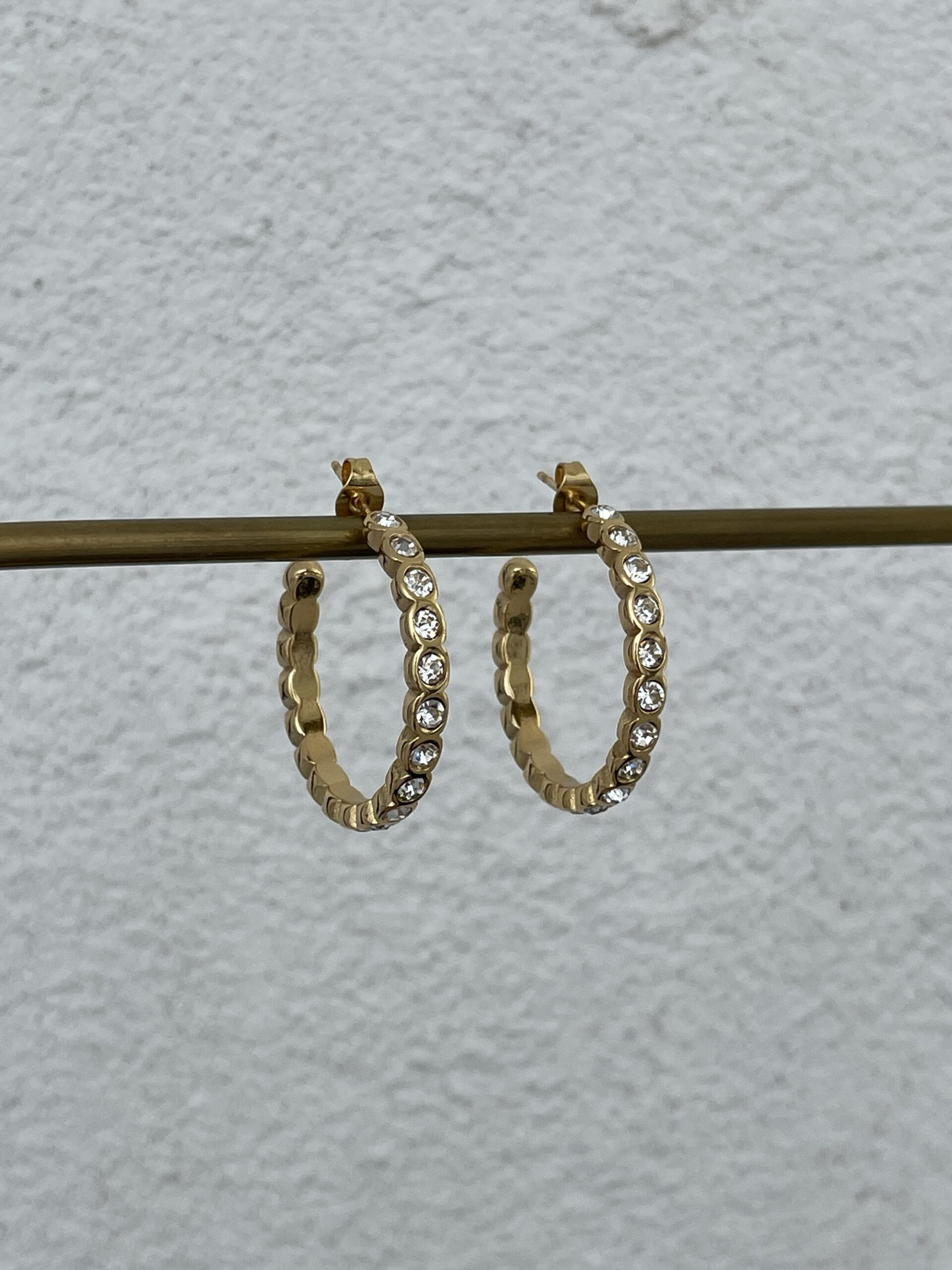Çelik Zirkon Taşlı Gold Halka Küpe
