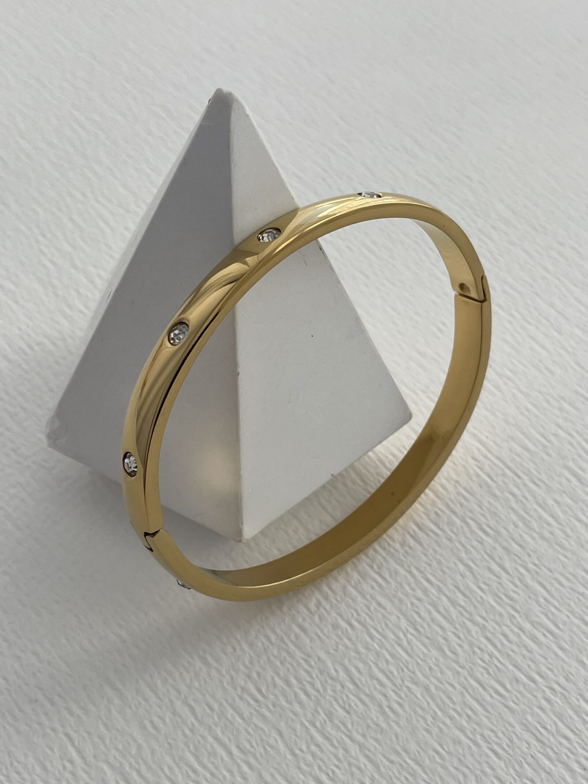 Çelik Zirkon Taşlı Gold Kelepçe Bileklik
