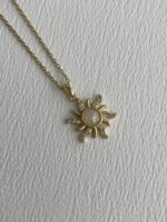 Çelik Zirkon Taşlı Güneş Tasarım Gold Kolye 45+5cm