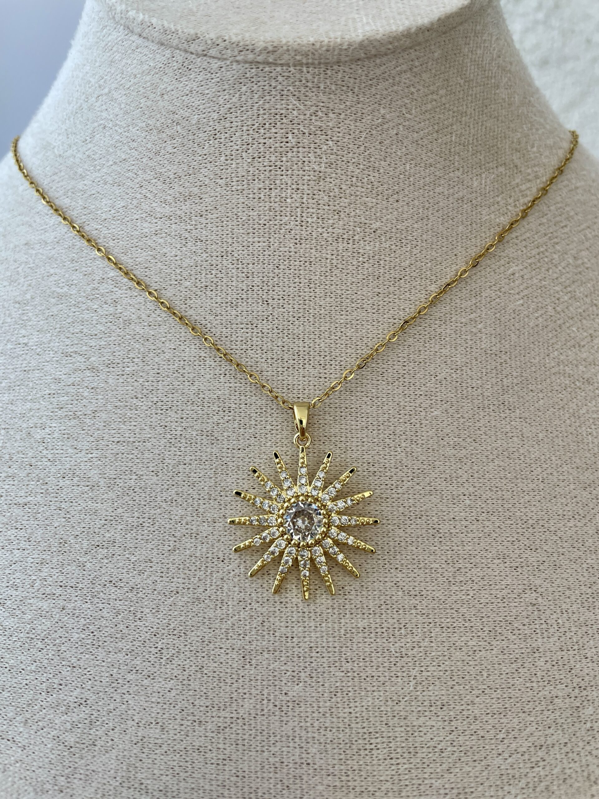 Çelik Zirkon Taşlı Güneş Tasarım Gold Kolye
