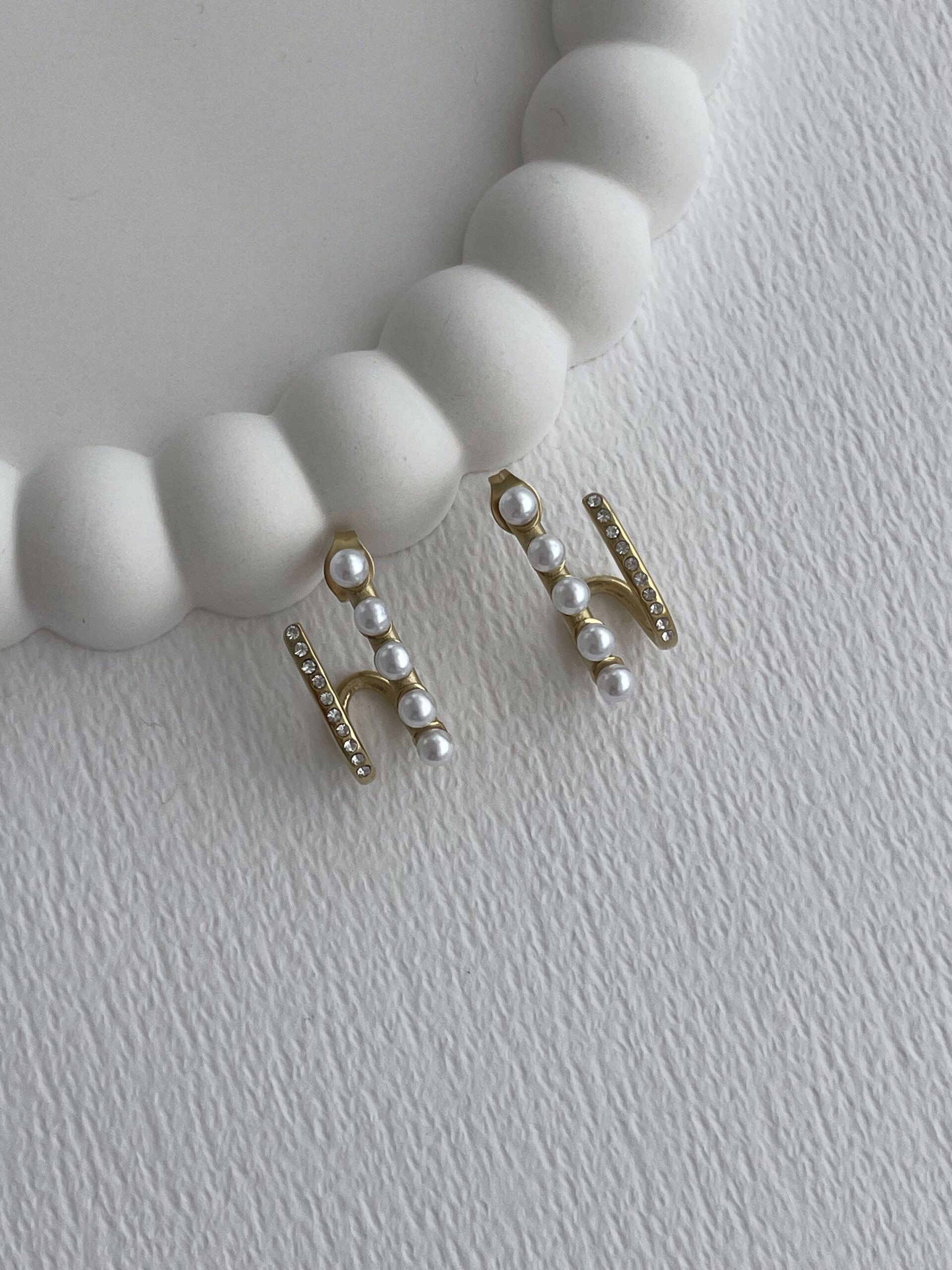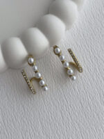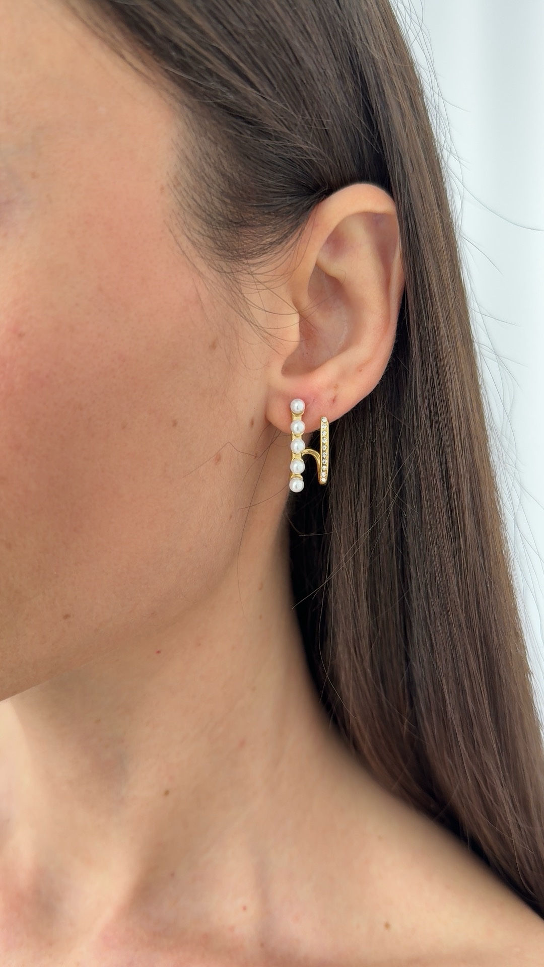 Çelik Zirkon Taşlı İnci Detay İkili Gold Küpe