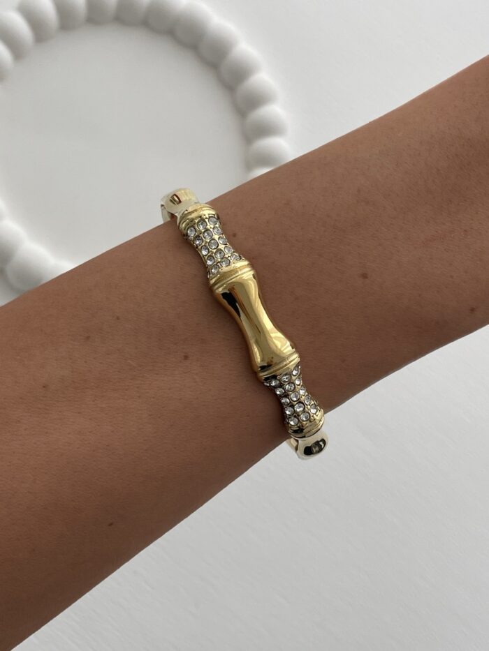 Çelik Zirkon Taşlı Kemik Model Gold Bileklik