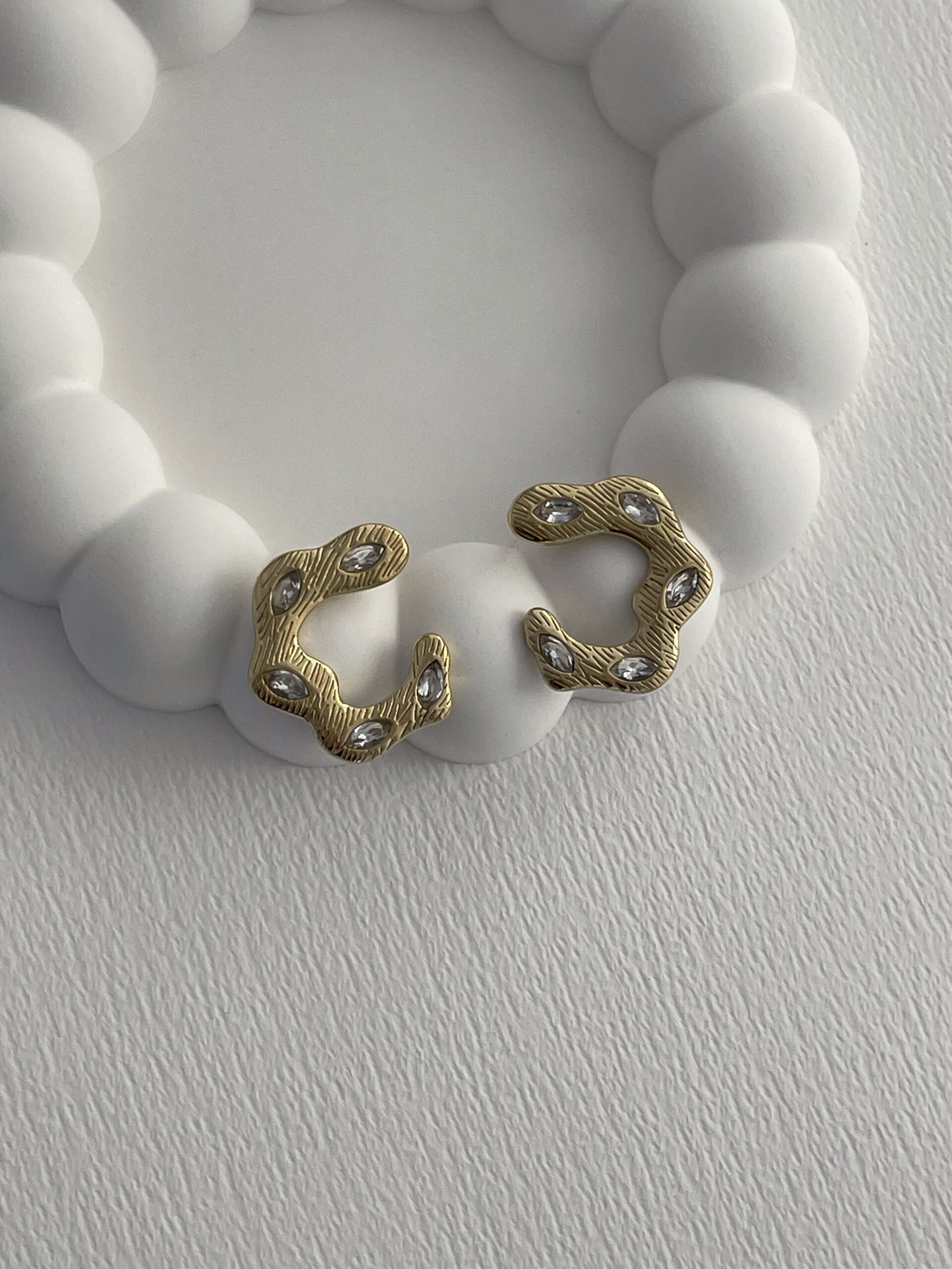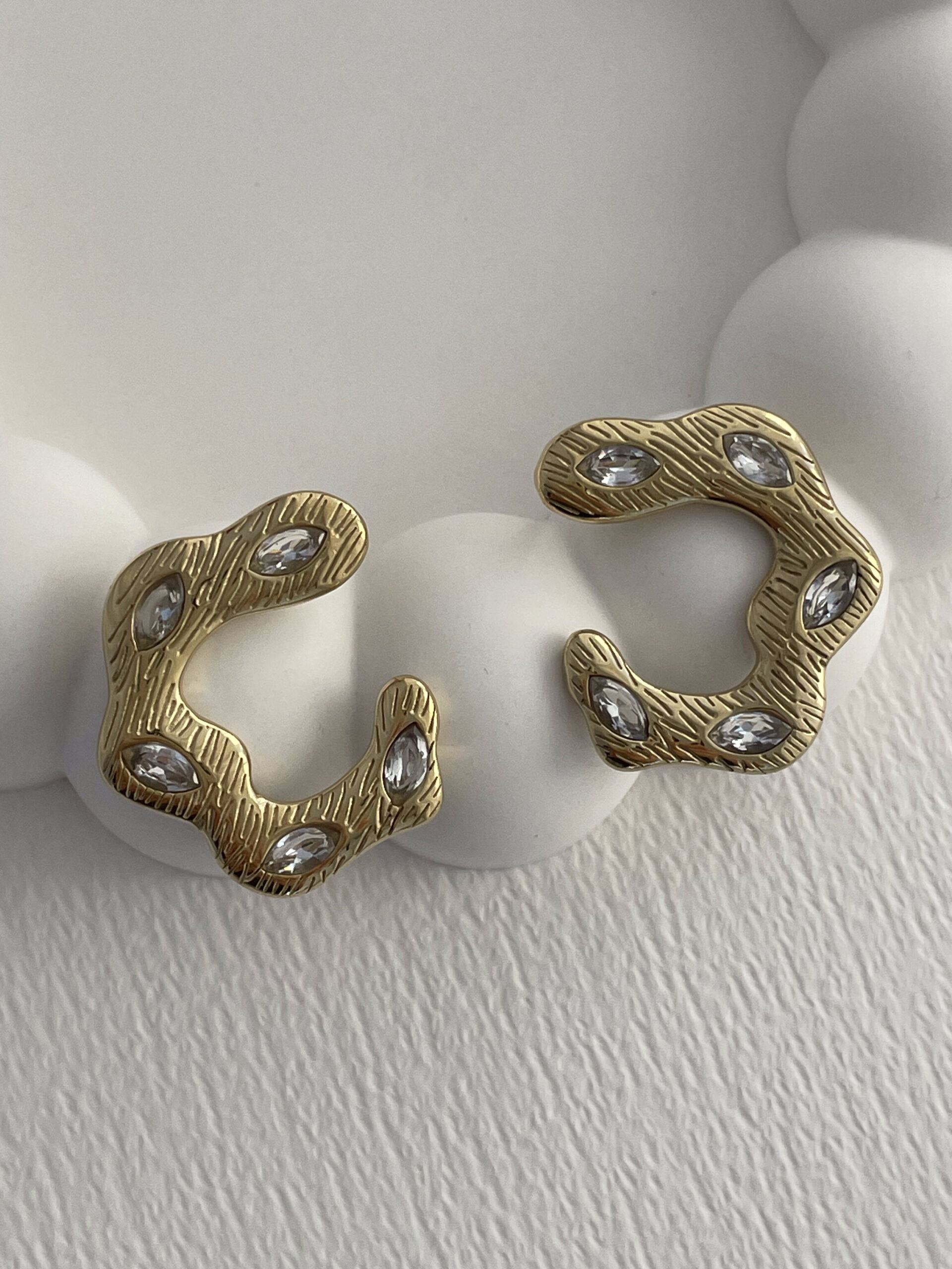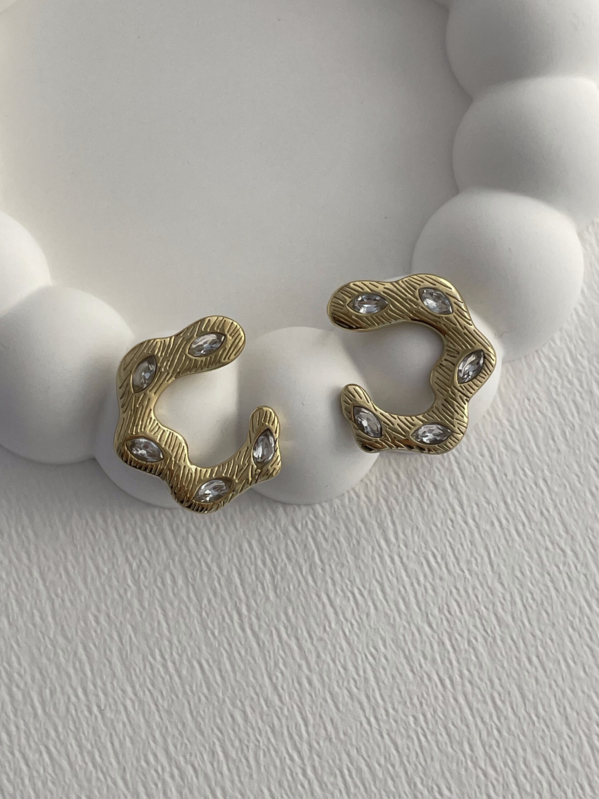 Çelik Zirkon Taşlı Kıvrım Detay Gold Küpe
