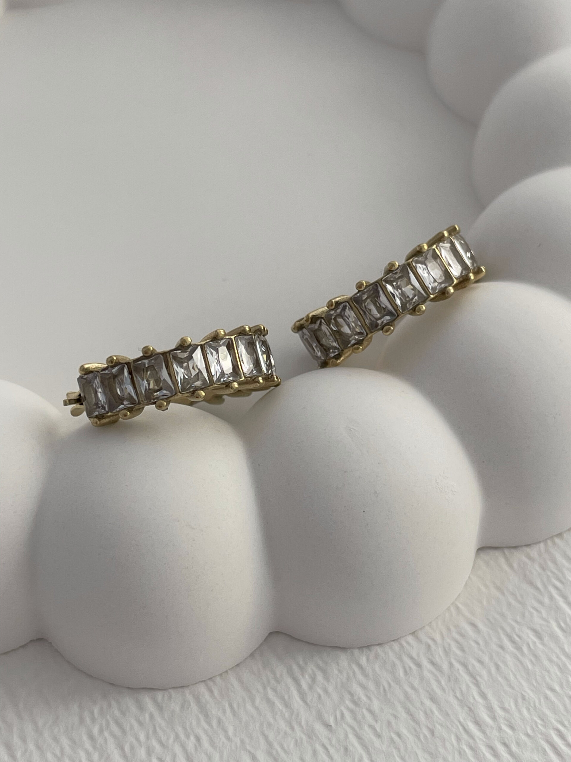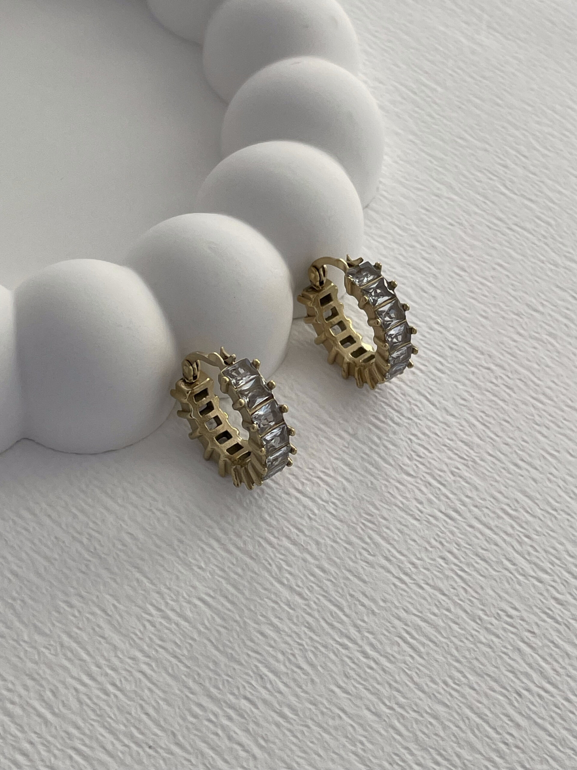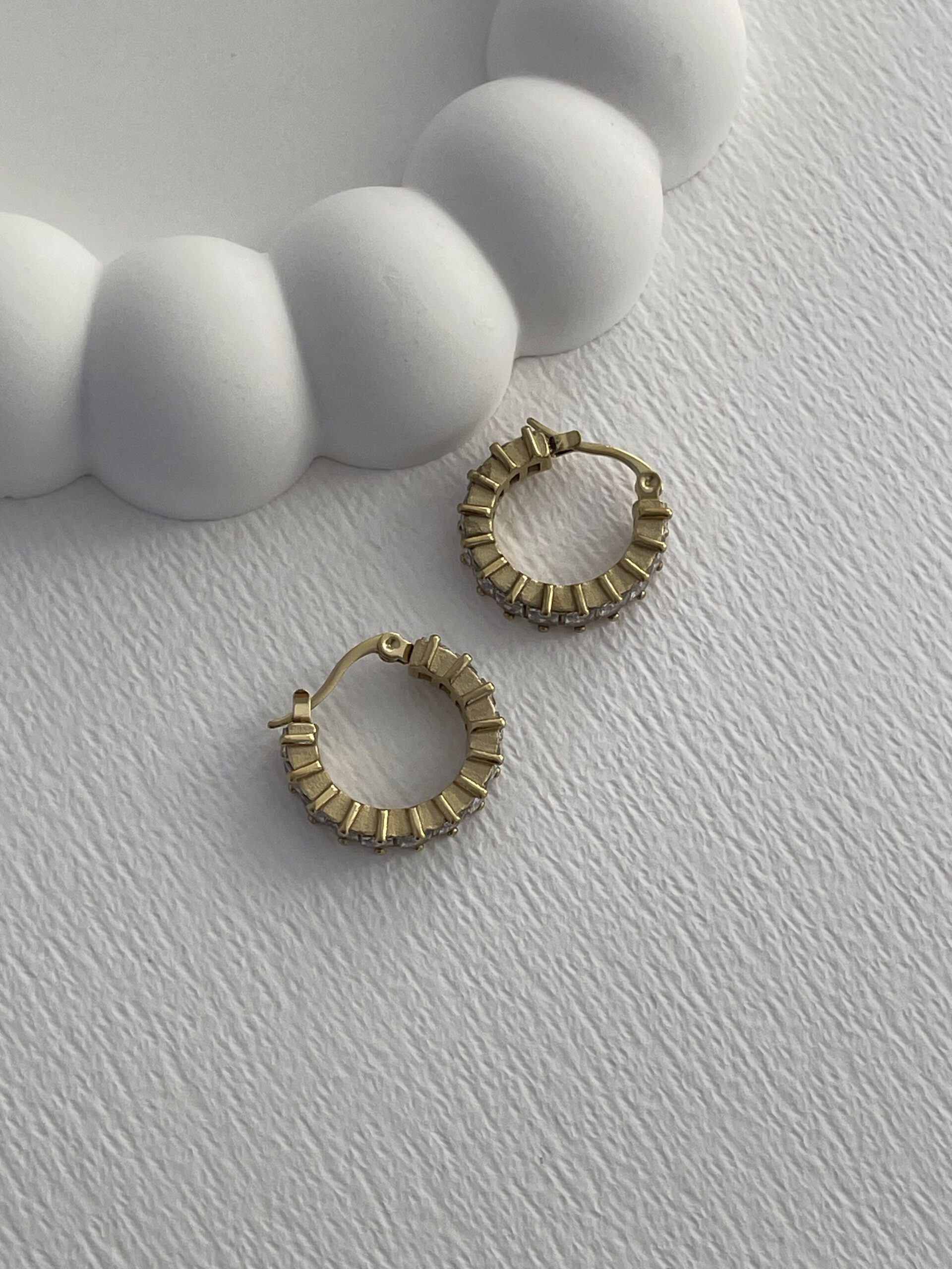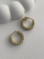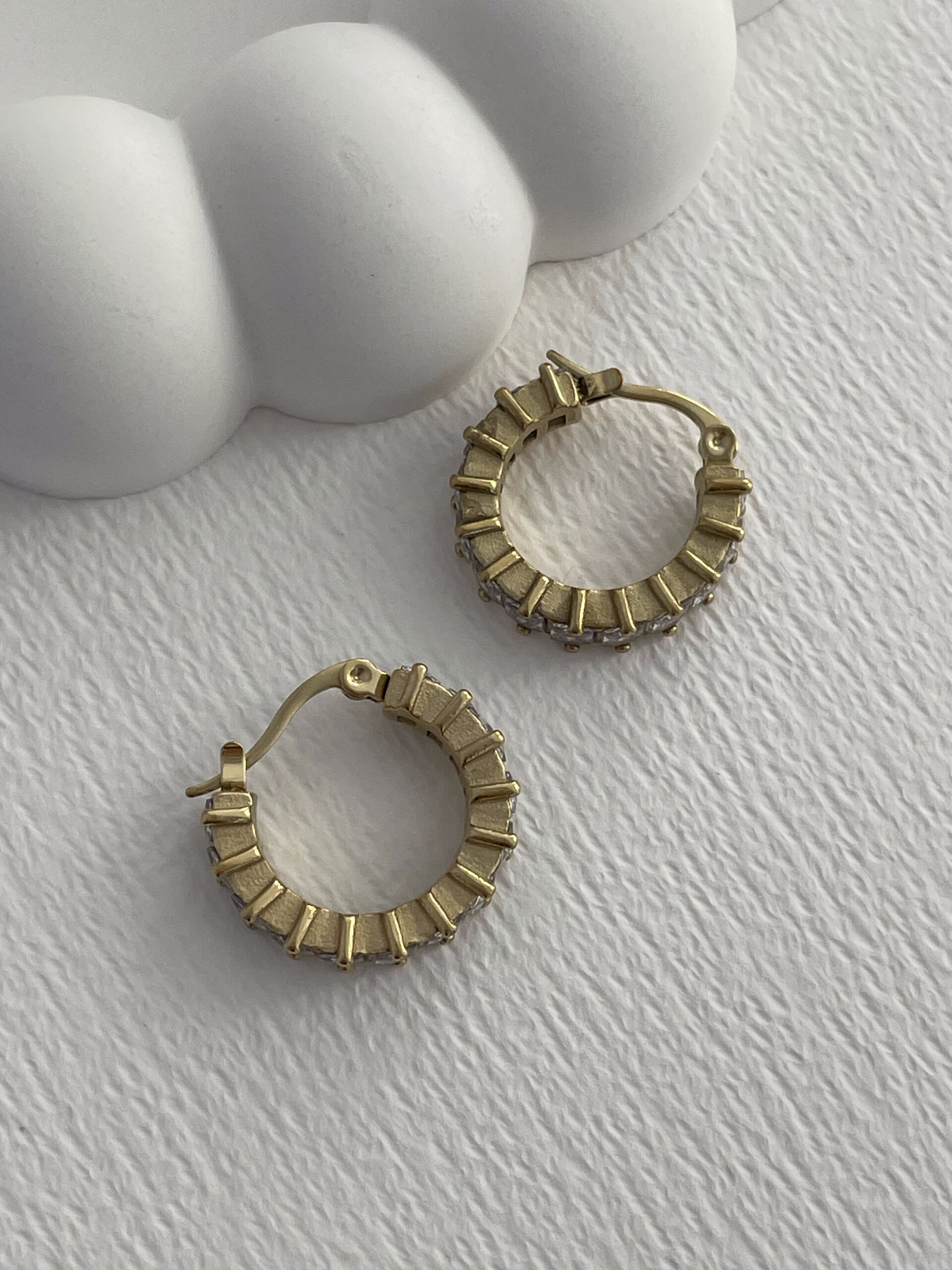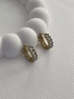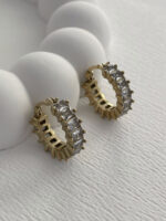 Çelik Zİrkon Taşlı Tırtıklı Halka Gold Küpe