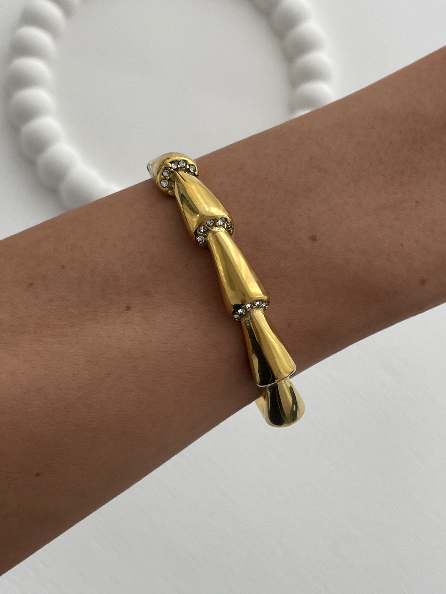 Çelik Zirkon Taşlı Üçgen Model Gold Bileklik