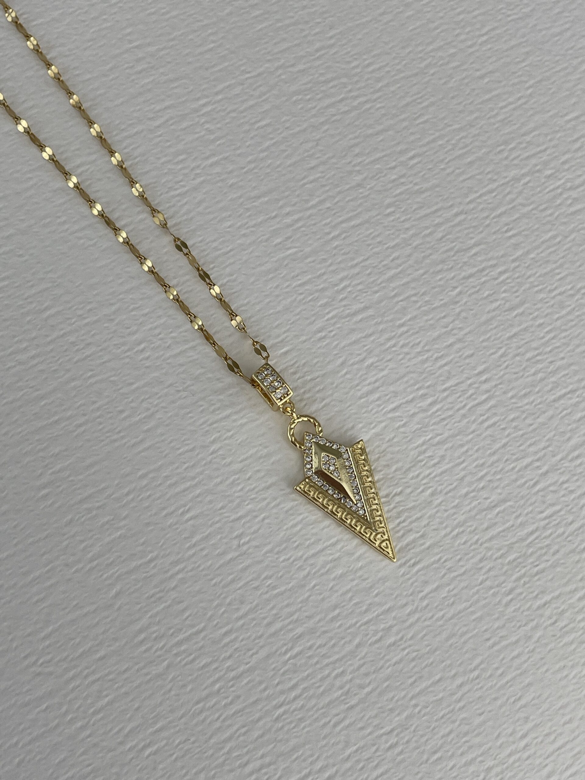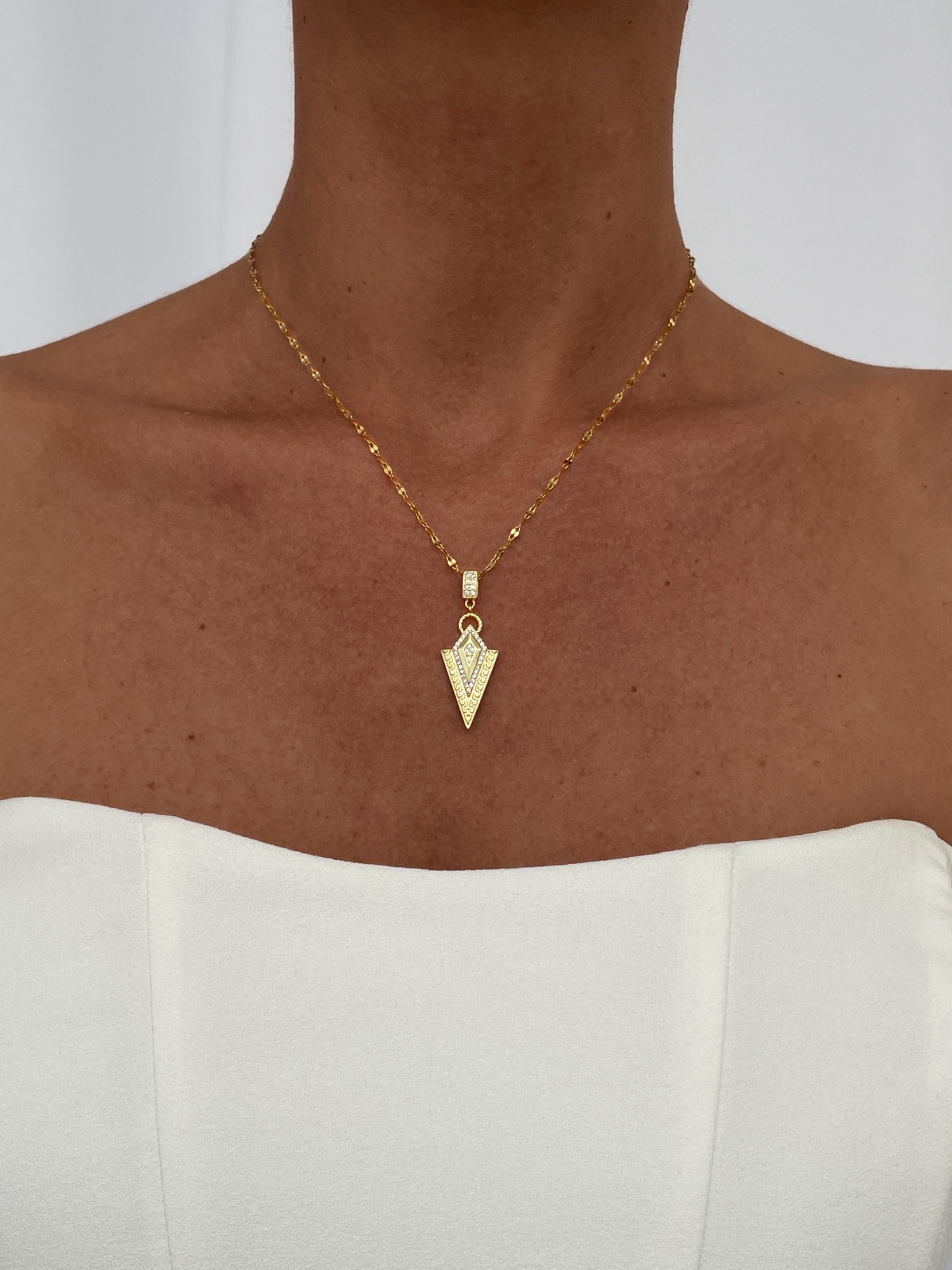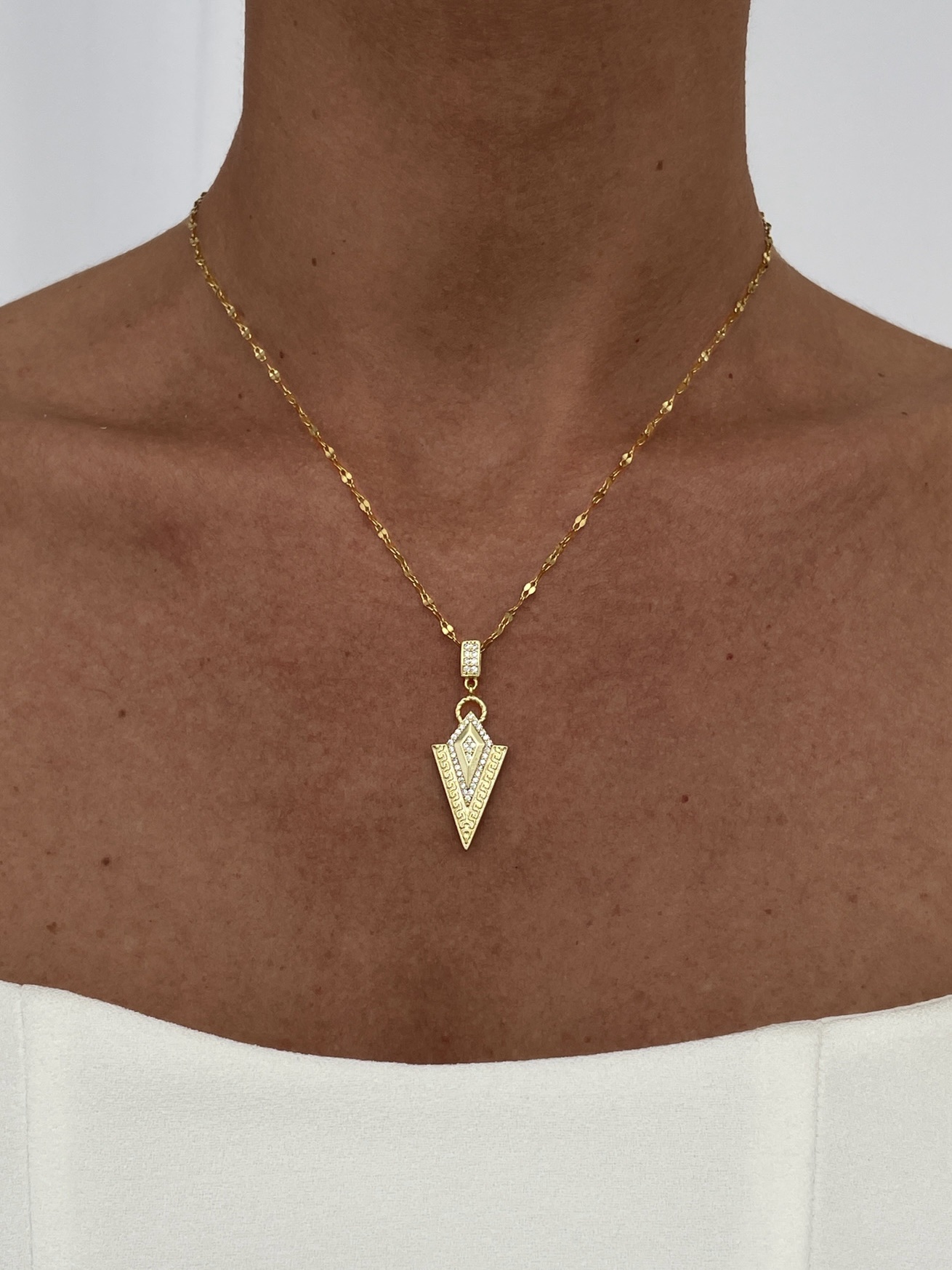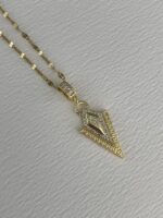 Çelik Zirkon Taşlı Üçgen Tasarım Gold Kolye 45+5cm