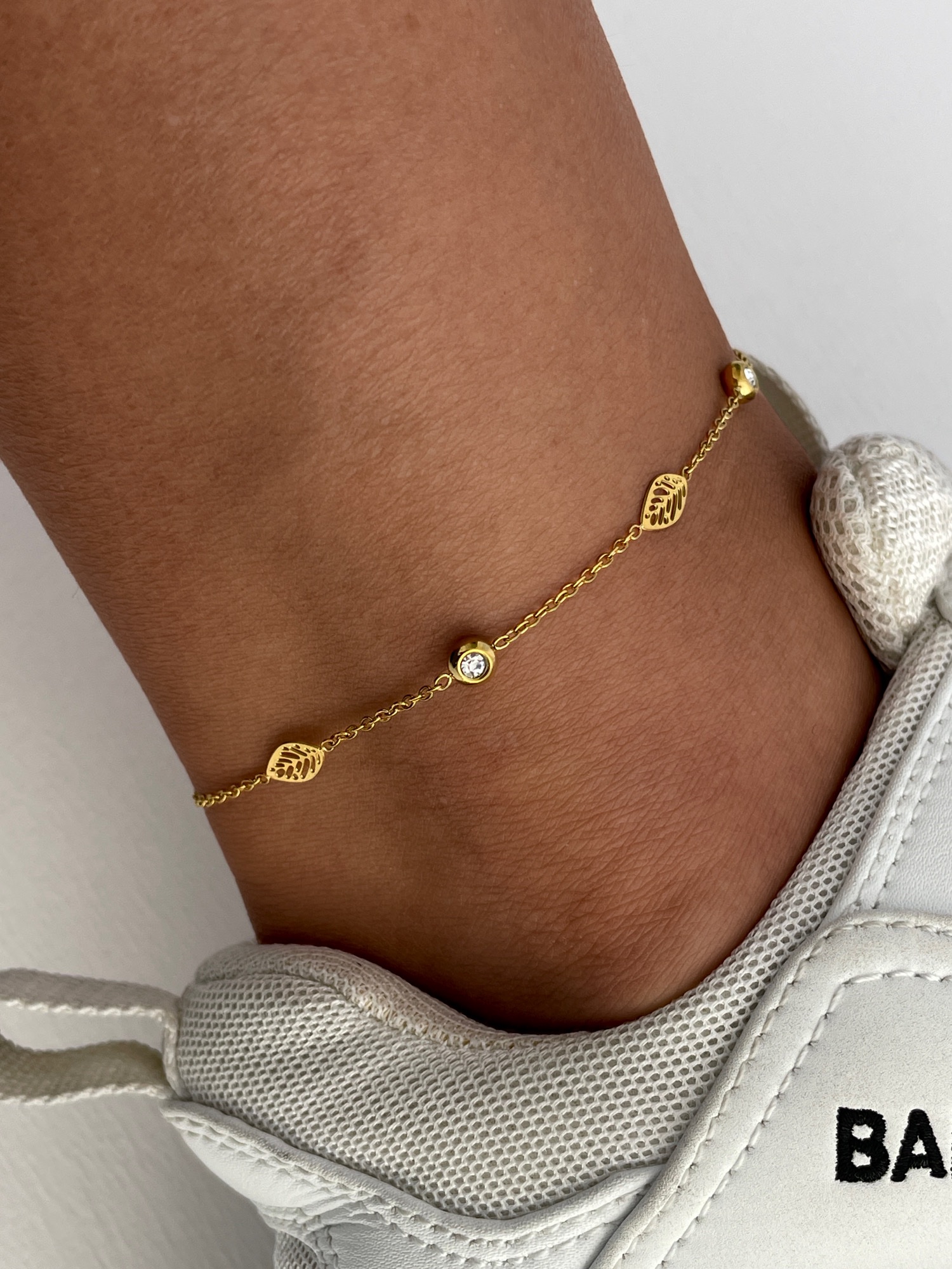 Çelik Zirkon Taşlı Yaprak Tasarım Gold Halhal