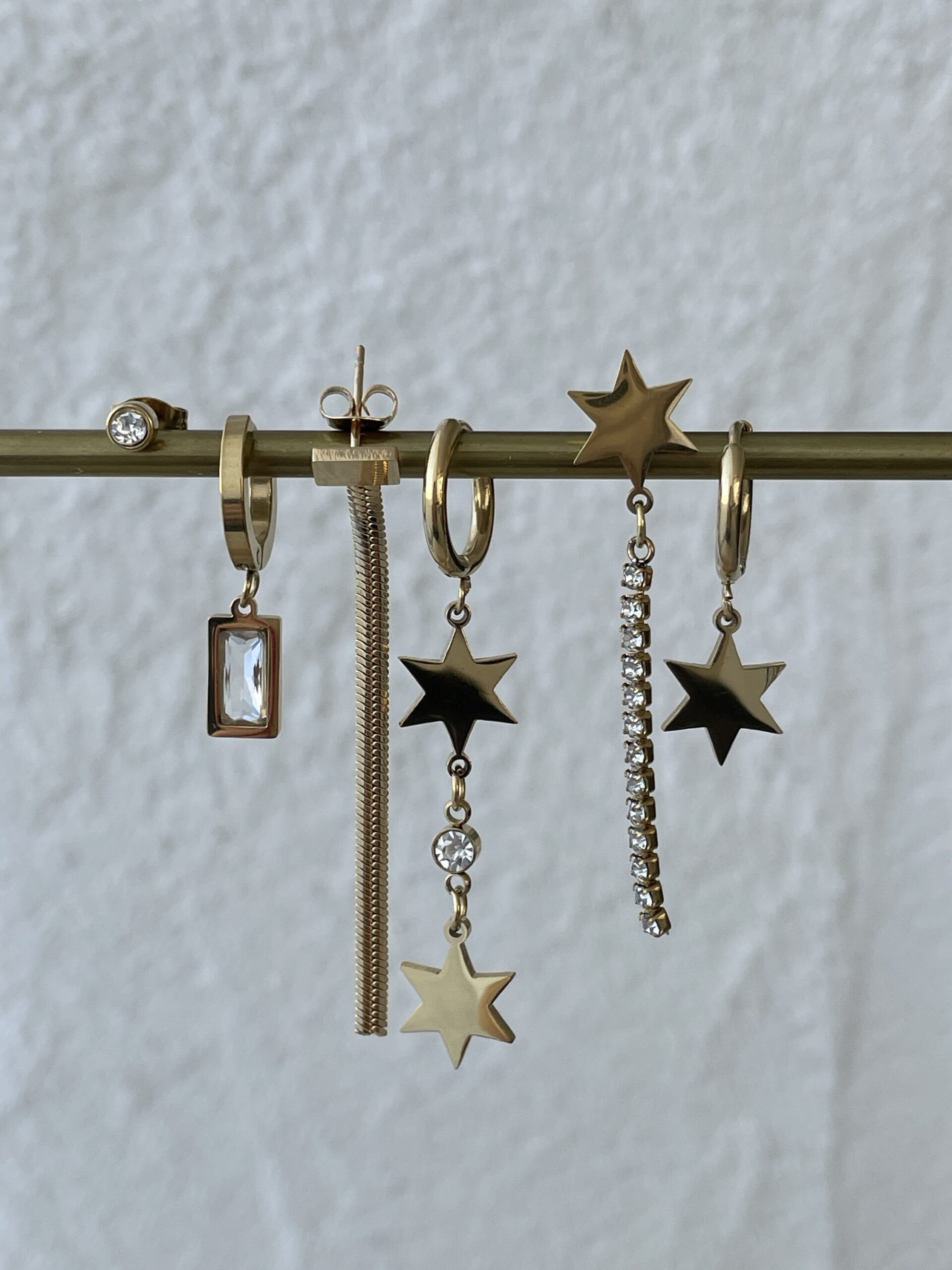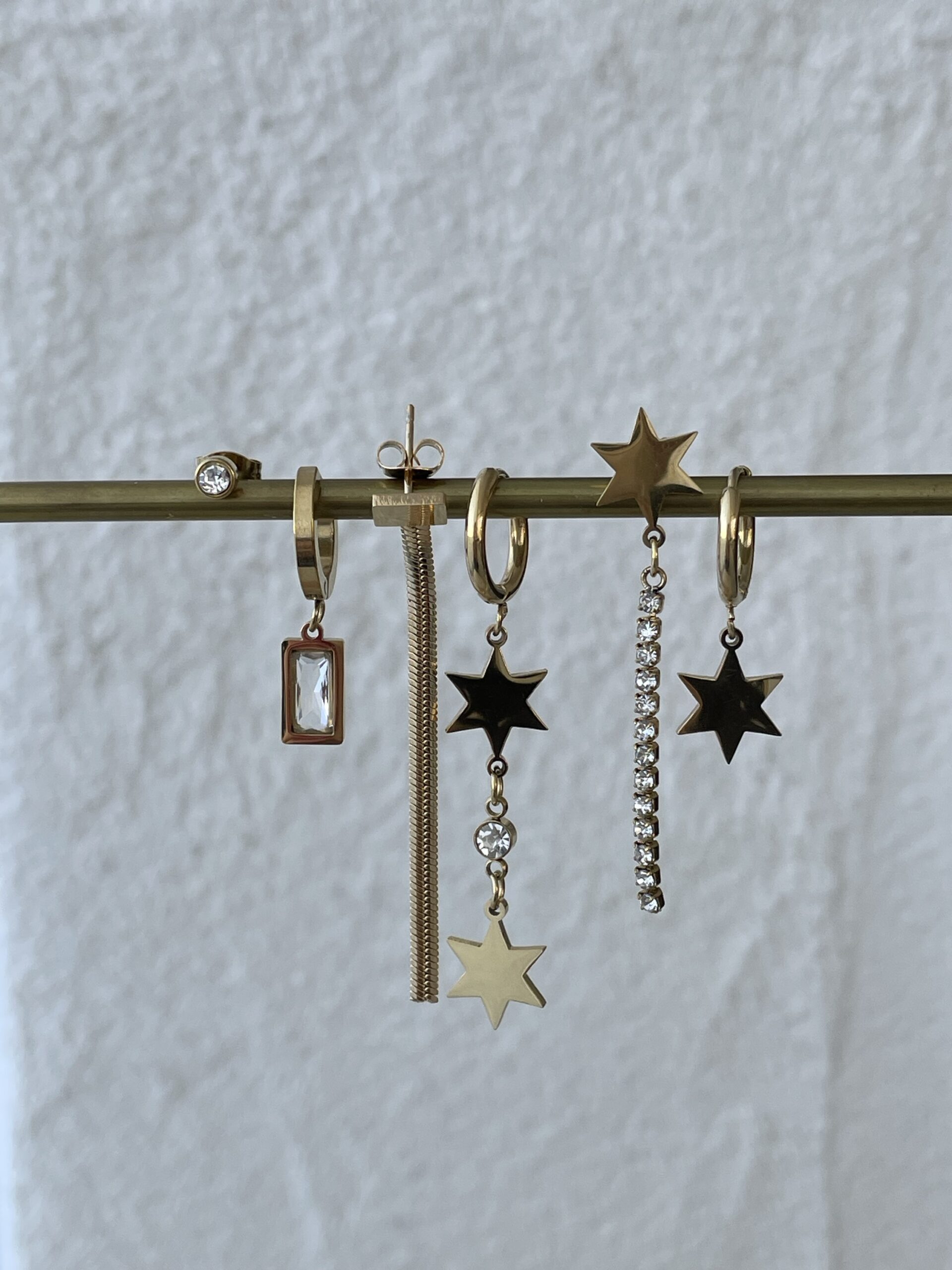 Çelik Zirkon Taşlı Yıldız Tasarım Altılı Gold Küpe Seti