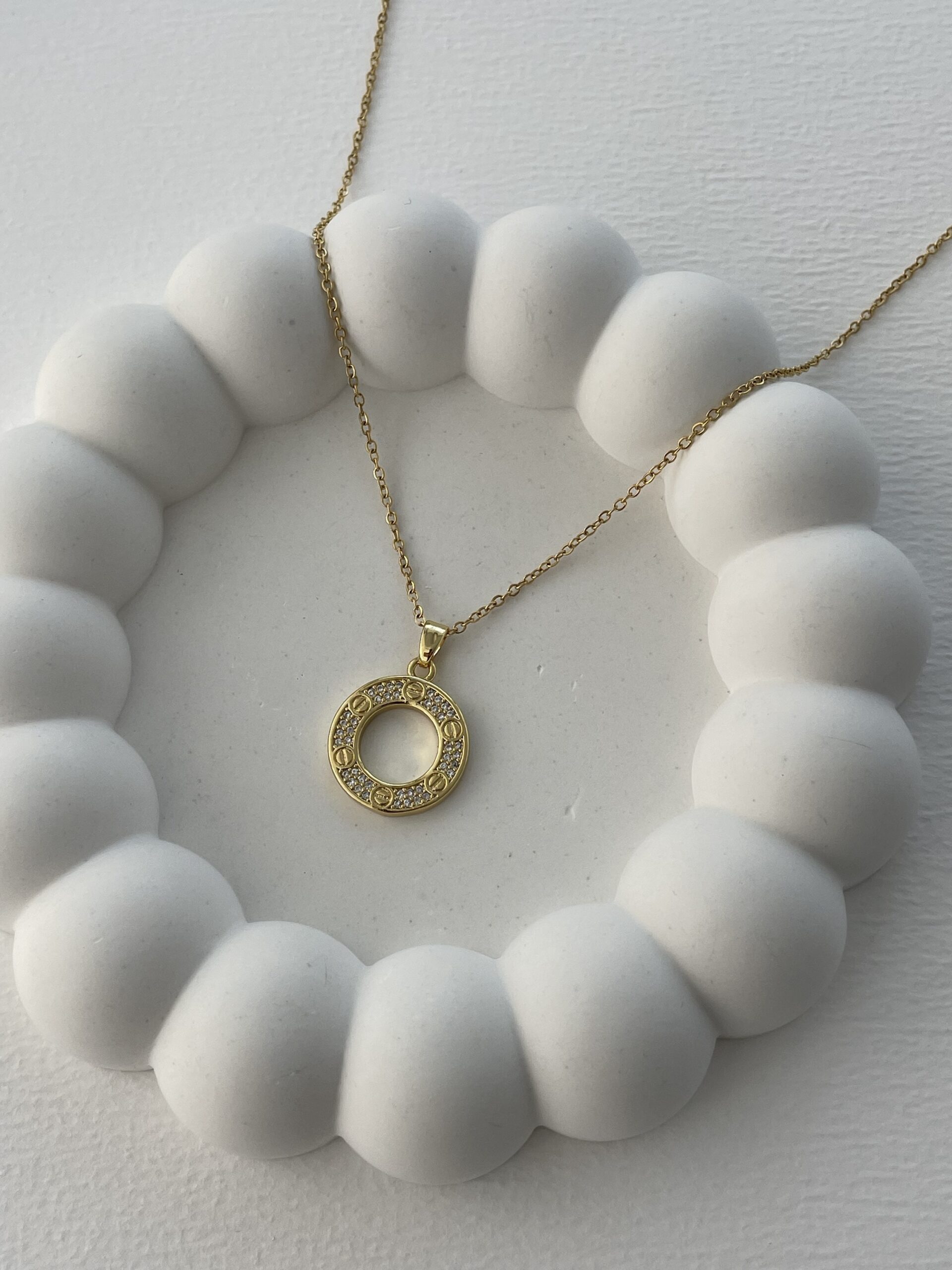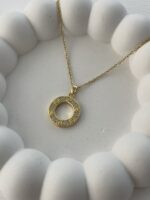 Çelik Zirkon Taşlı Yuvarlak Marka Gold Kolye
