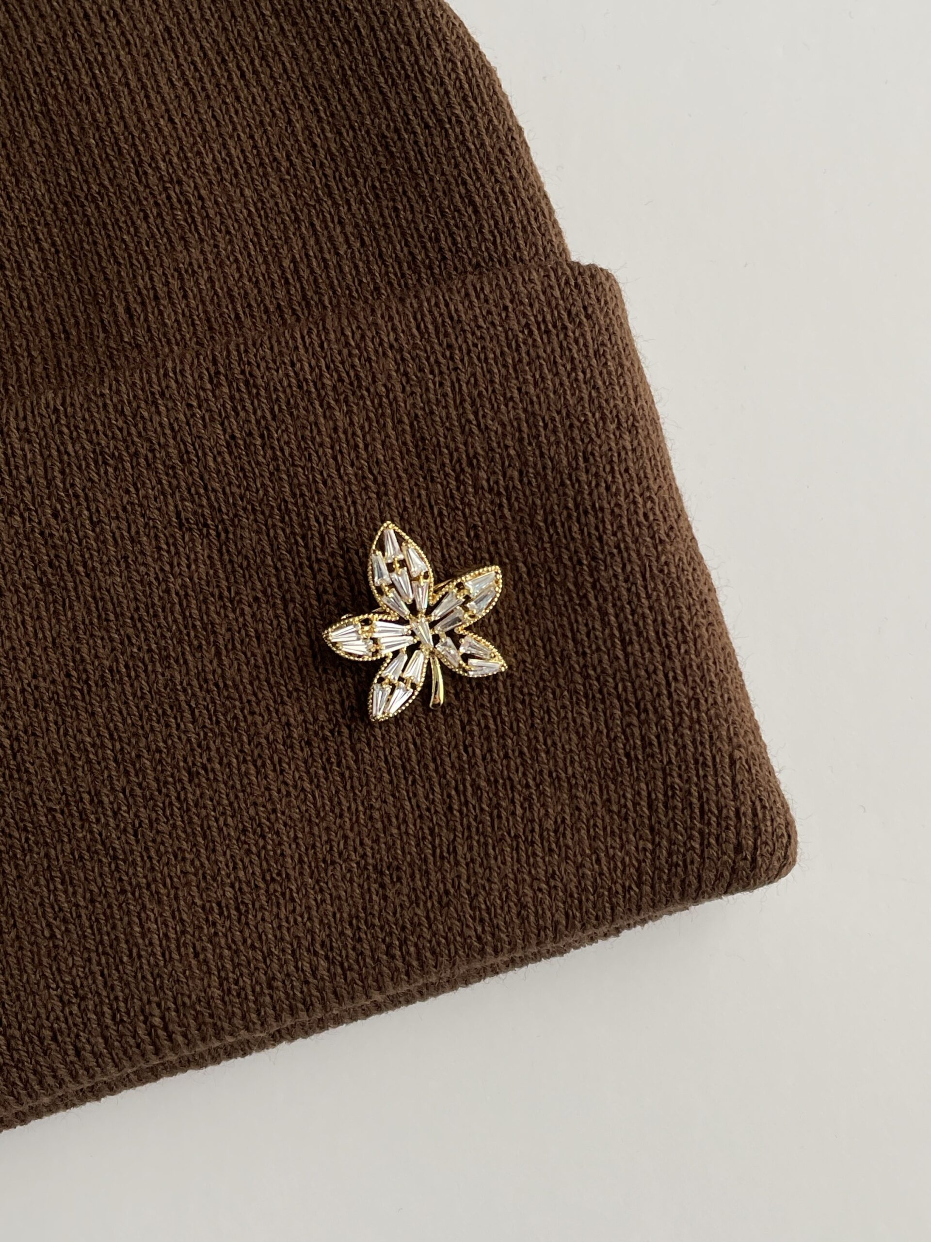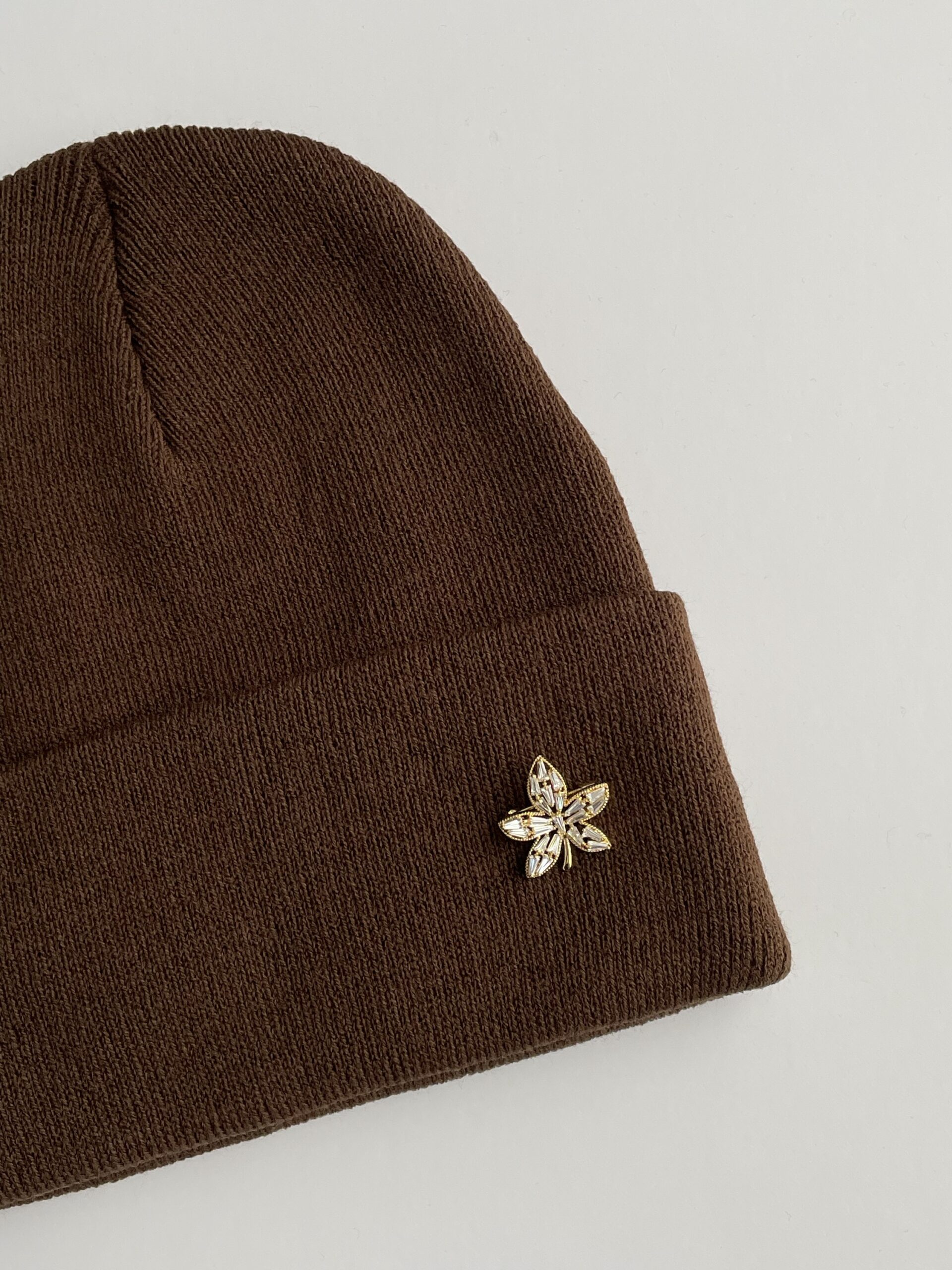 Yaprak Desen Broşlu Kahverengi Bere