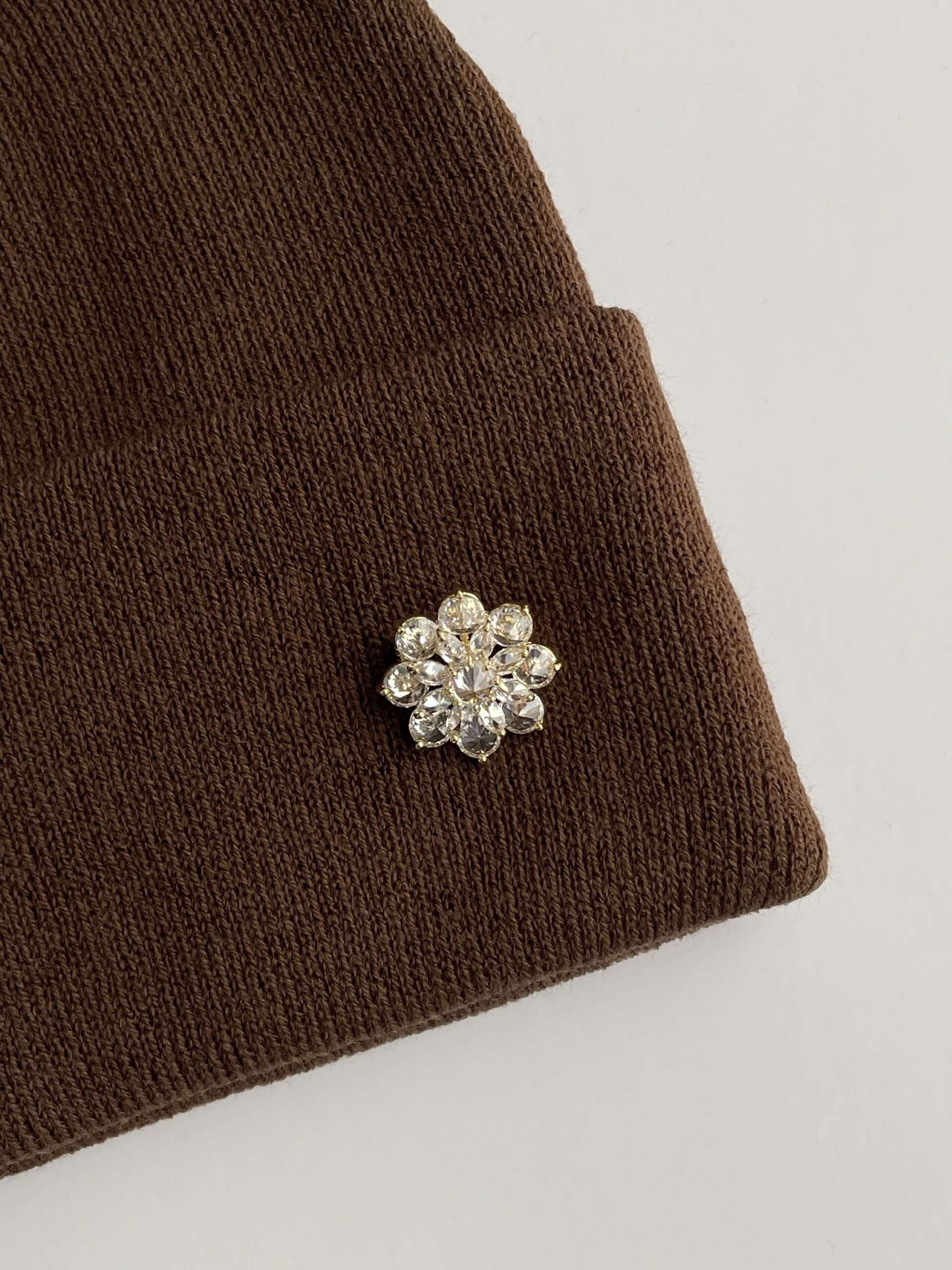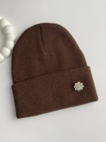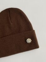 Çiçek Desen Broşlu Kahverengi Bere