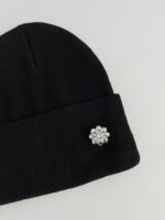 Çiçek Desen Broşlu Siyah Bere