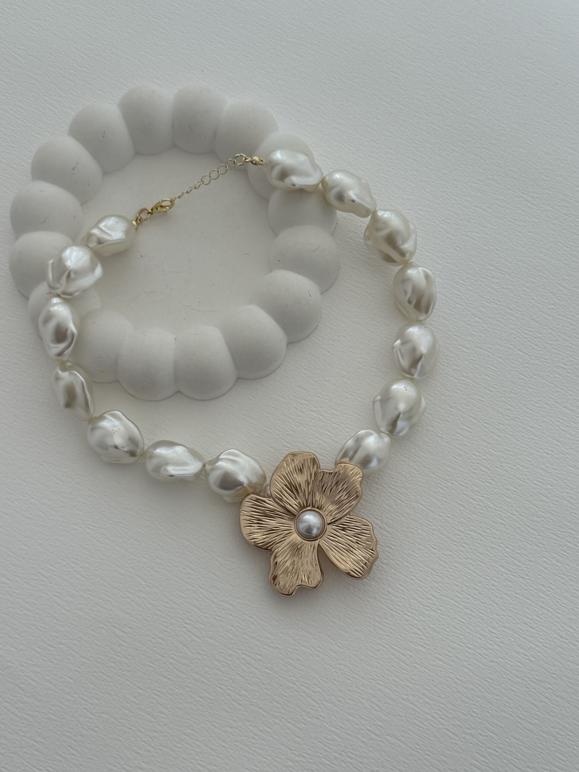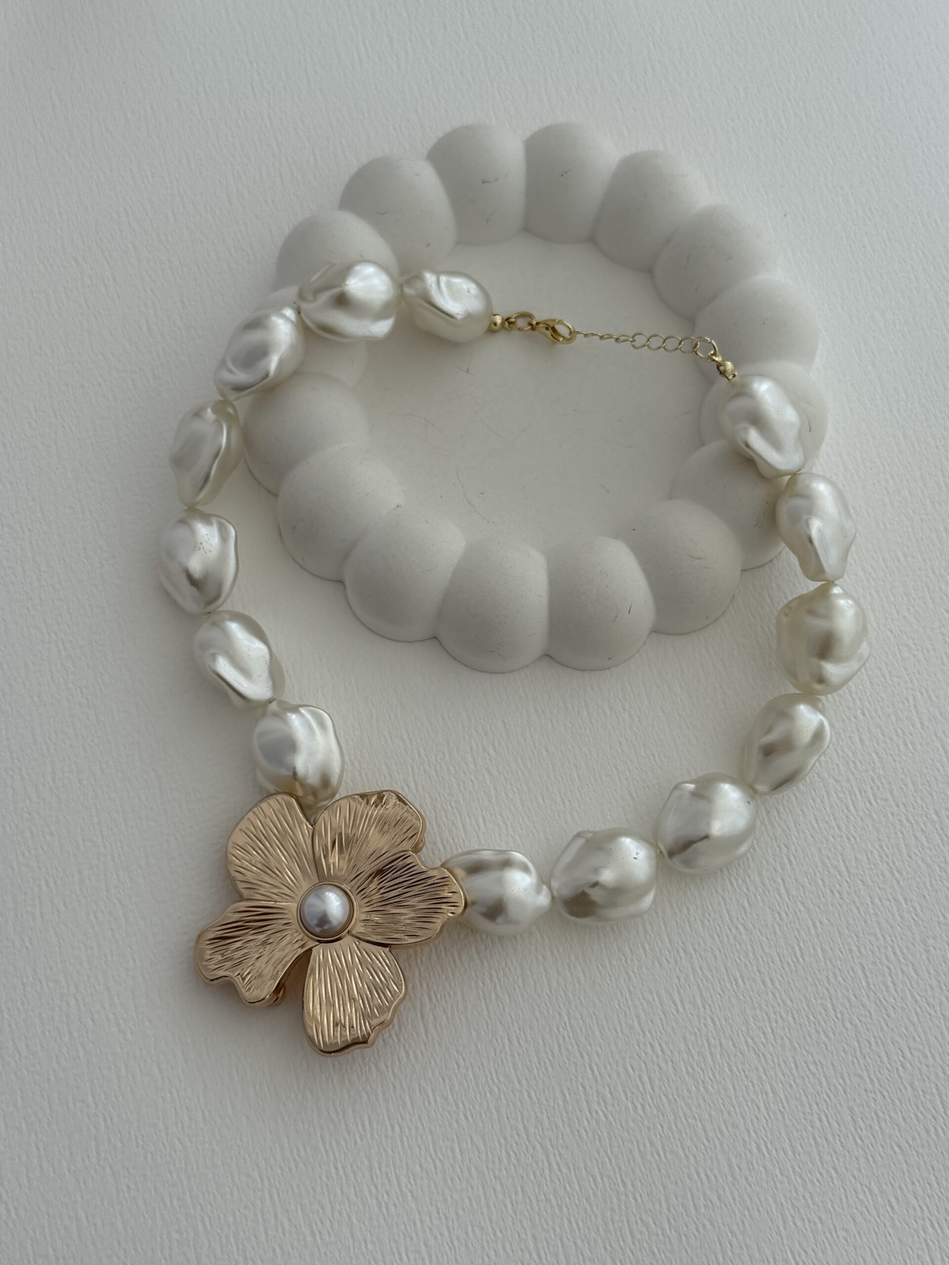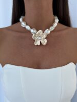 Özel Seri Gold Çiçek Büyük Barok İnci Choker Kolye