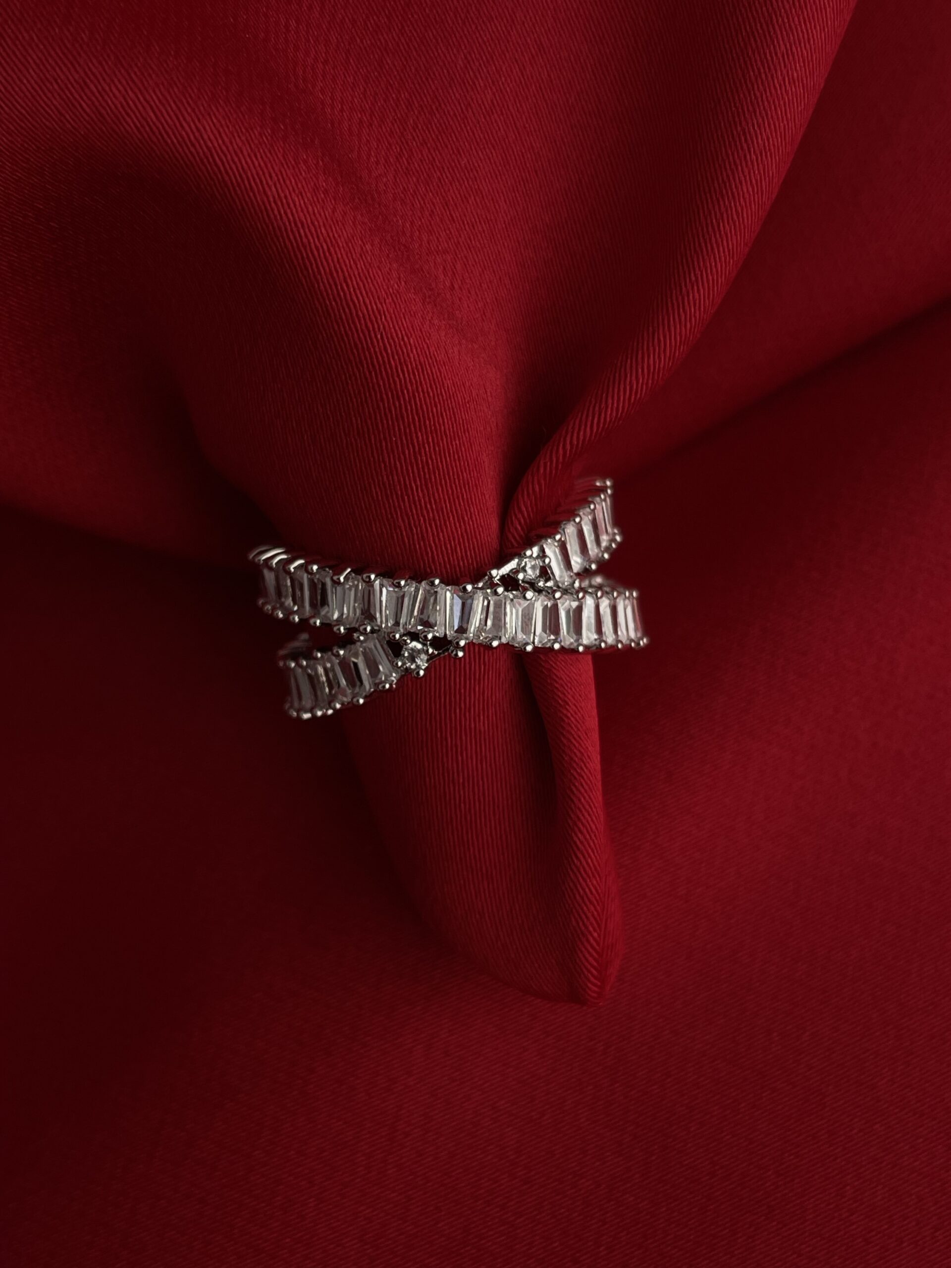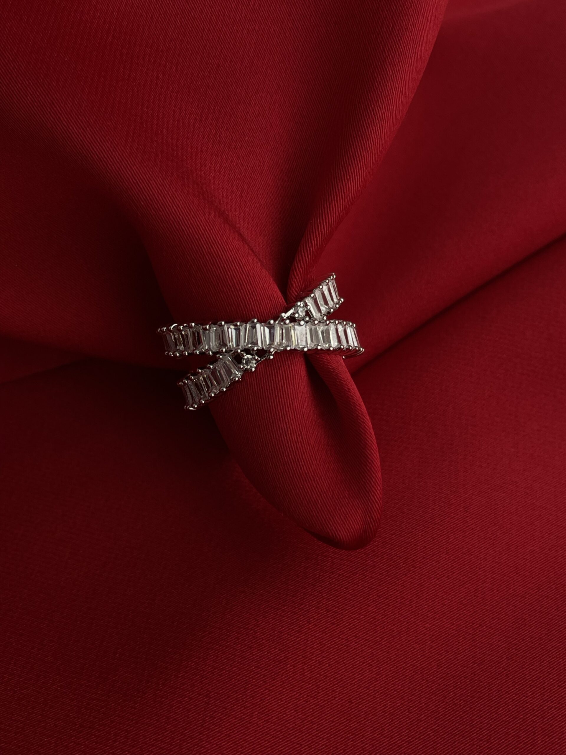 Glam Serisi – Baget Taşlı X Tasarım Gümüş Ayarlanabilir Yüzük